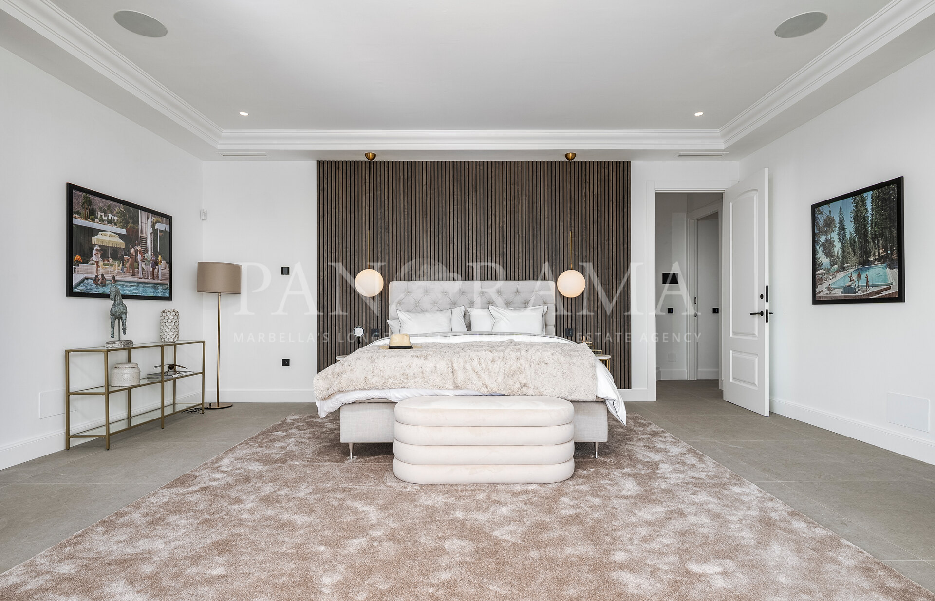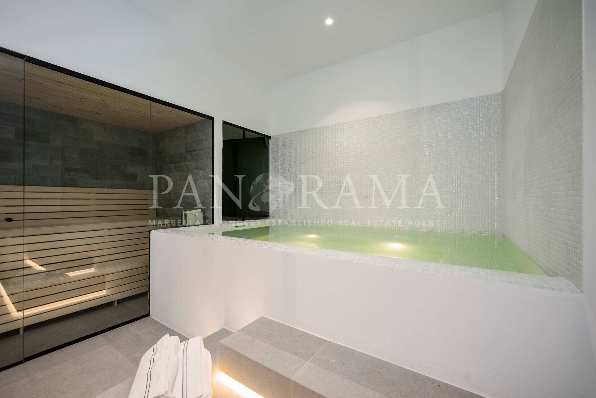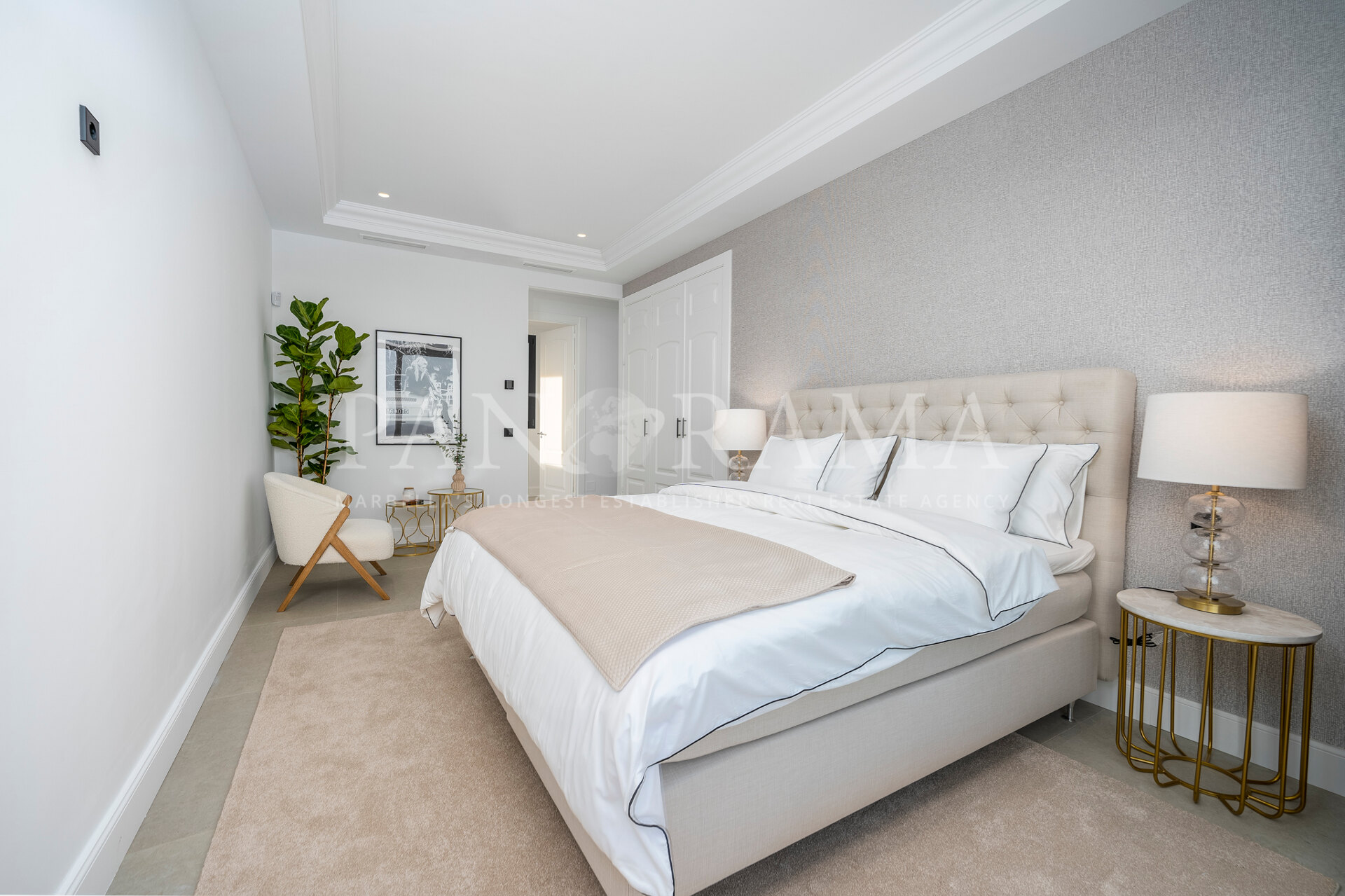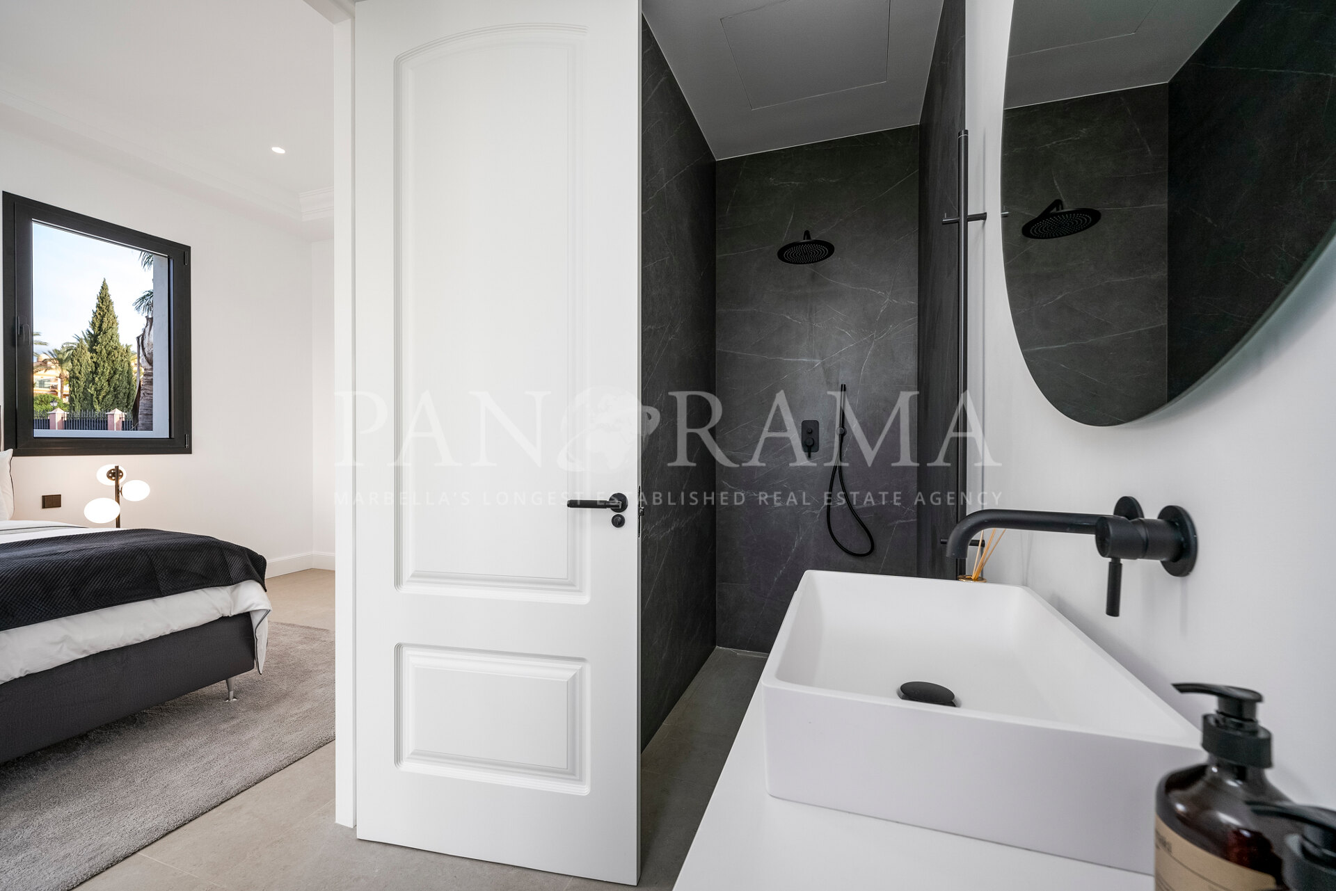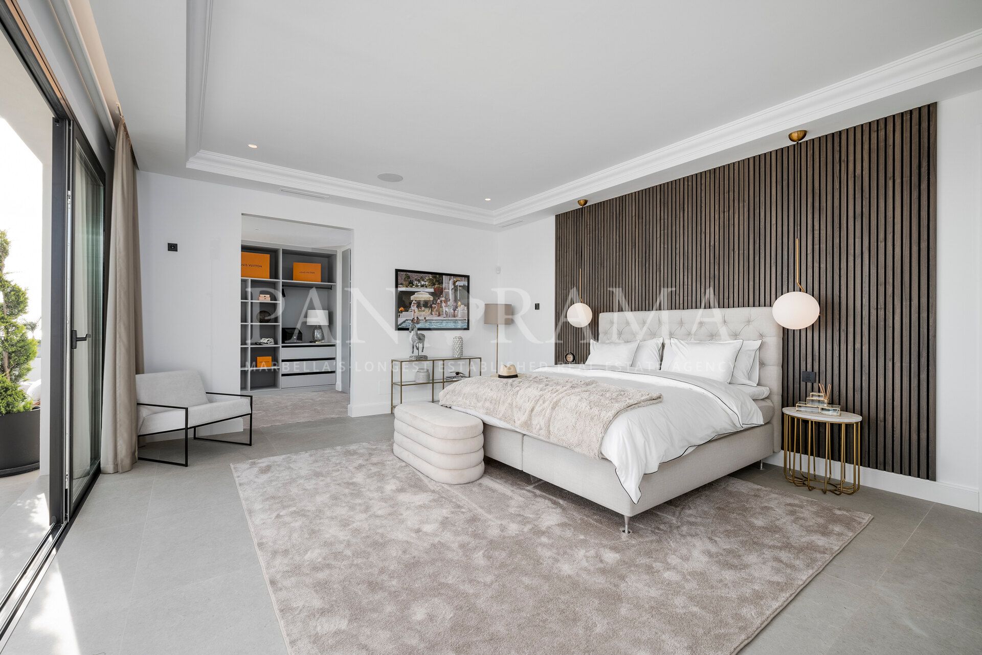 Schon beim Betreten des großen Eingangsbereichs werden Sie von einer Atmosphäre der Raffinesse und Pracht empfangen. Der Mittelpunkt der Eingangshalle ist eine imposante, elegant geschwungene Treppe, die mit einem dramatischen hängenden Lichtobjekt geschmückt ist und sofort Aufmerksamkeit erregt. Wenn Ihr Blick wandert, werden Sie von den atemberaubenden Ausblicken auf das Mittelmeer angezogen, die einen wirklich spektakulären ersten Eindruck hinterlassen und den Ton für den Rest des Hauses setzen.