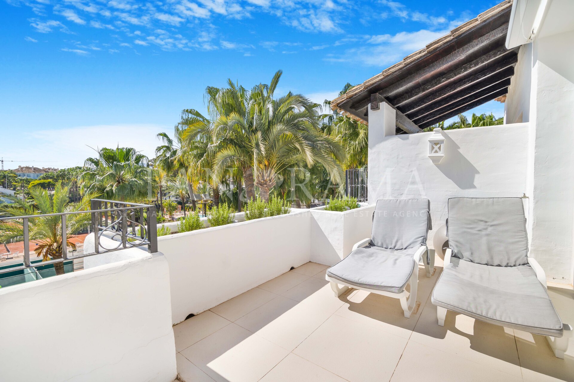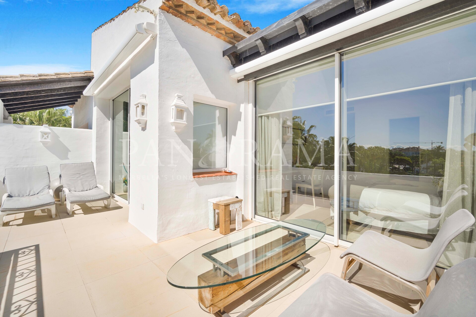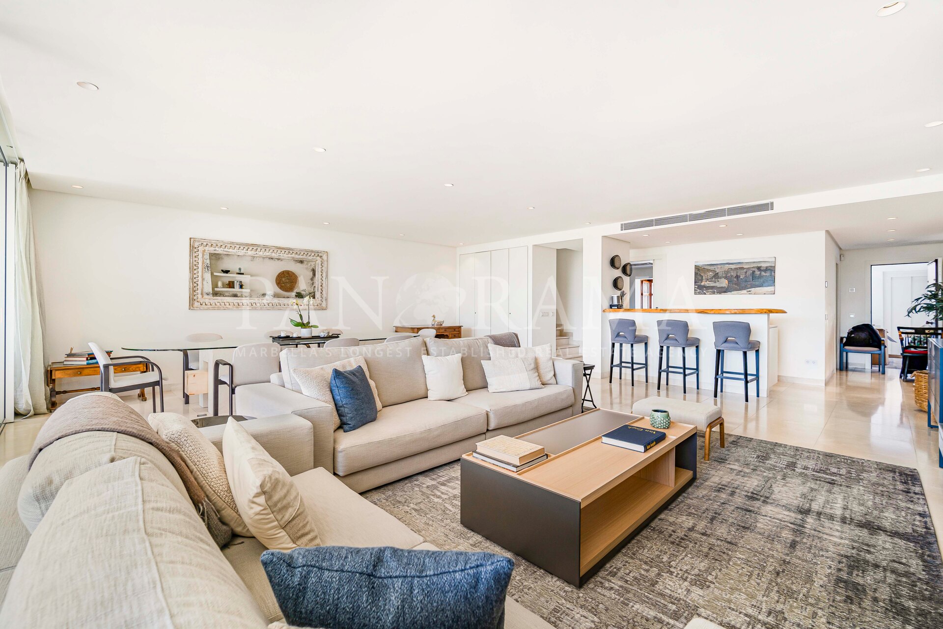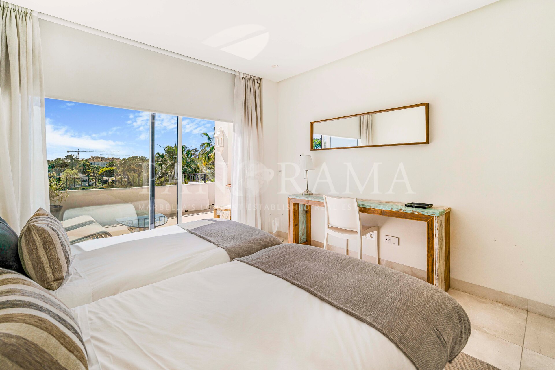 Inmitten des exklusiven Marina Puente Romano Resorts bietet dieses exquisit renovierte Duplex-Penthouse mit Westausrichtung ultimativen Luxus. Das atemberaubende Anwesen liegt inmitten der andalusischen Gärten und ist nur wenige Schritte von den unberührten Stränden des Mittelmeers entfernt. Genießen Sie das Beste aus beiden Welten mit der ruhigen Atmosphäre üppiger Gärten und dem lebendigen Lebensstil des Puente Romano Resorts, das für seine erstklassigen Restaurants, hochwertigen Boutiquen und eine Vielzahl von Freizeitaktivitäten bekannt ist.