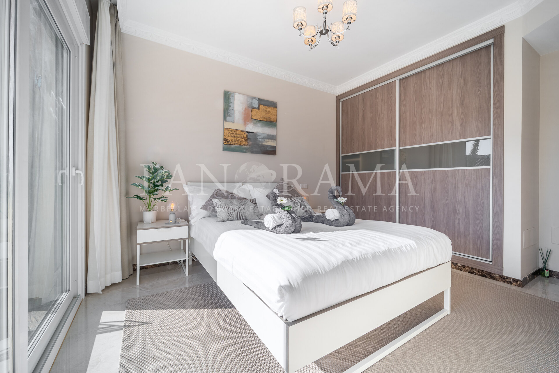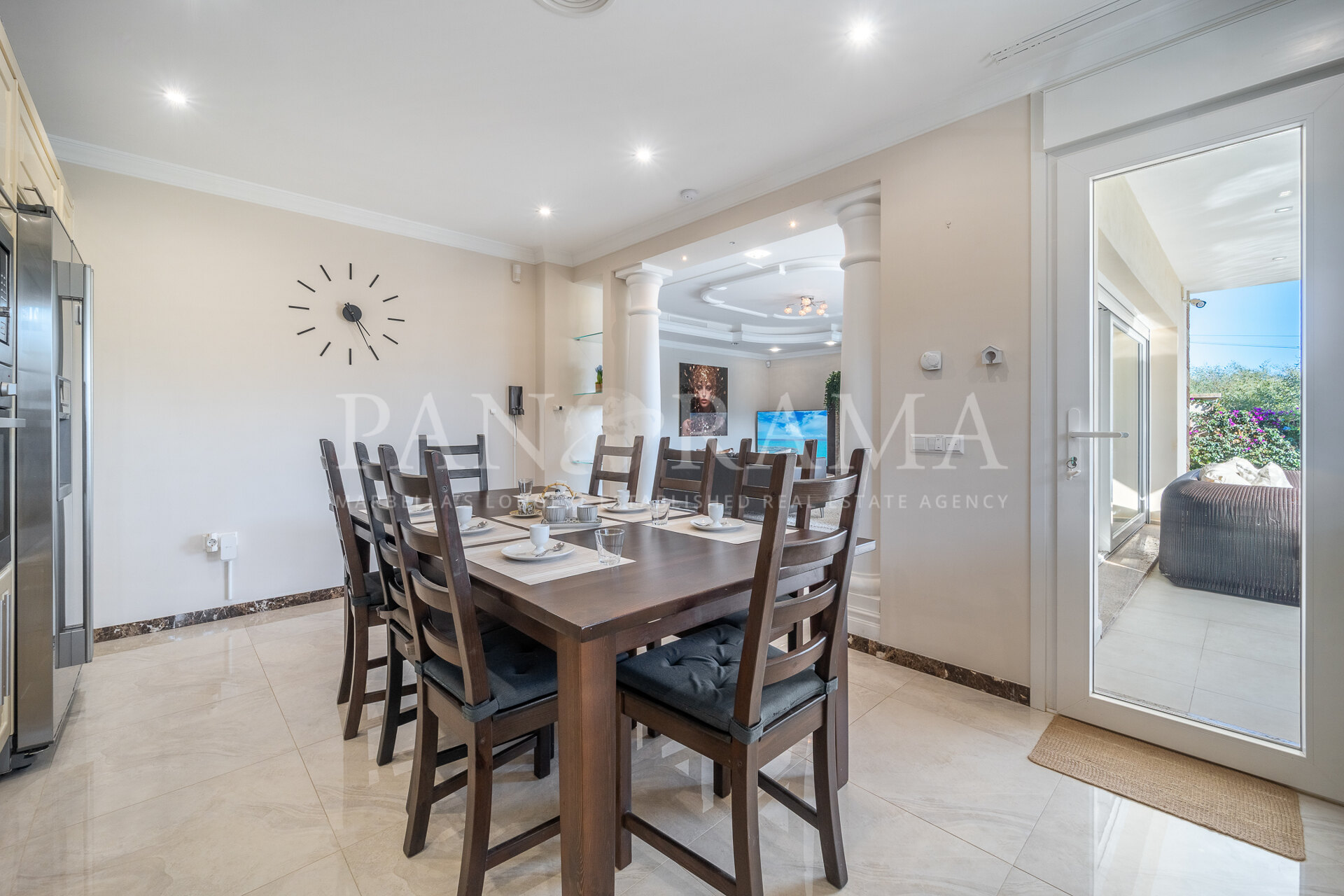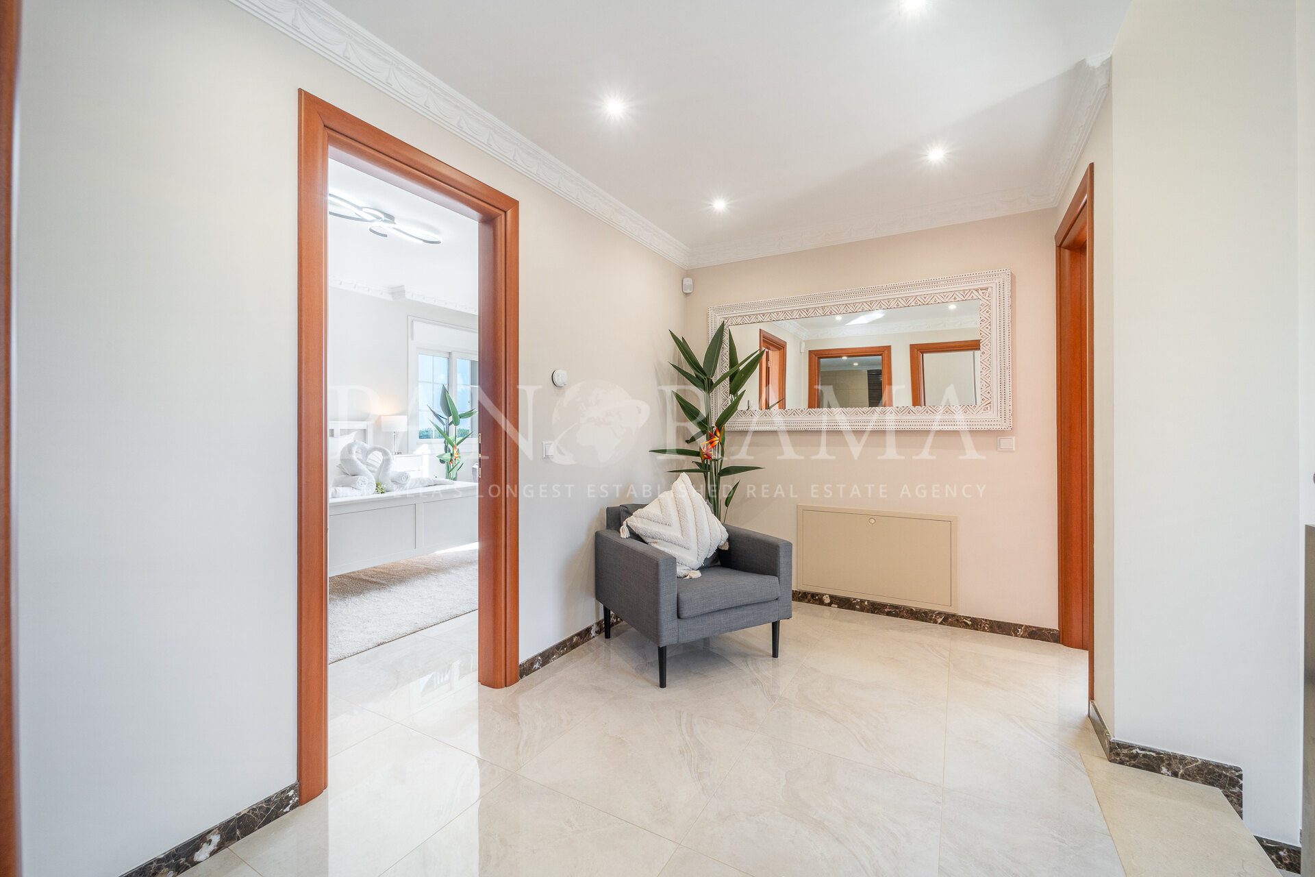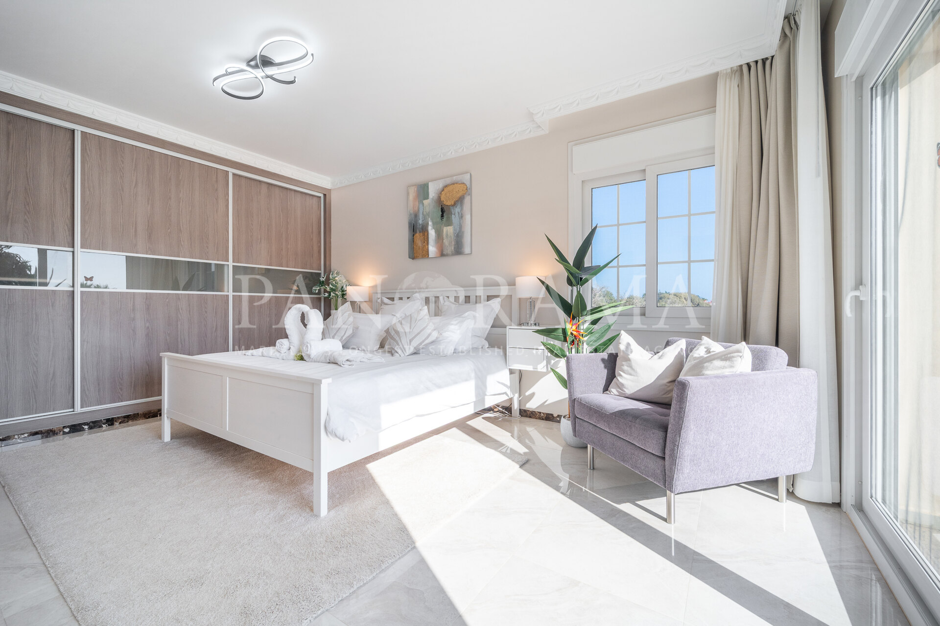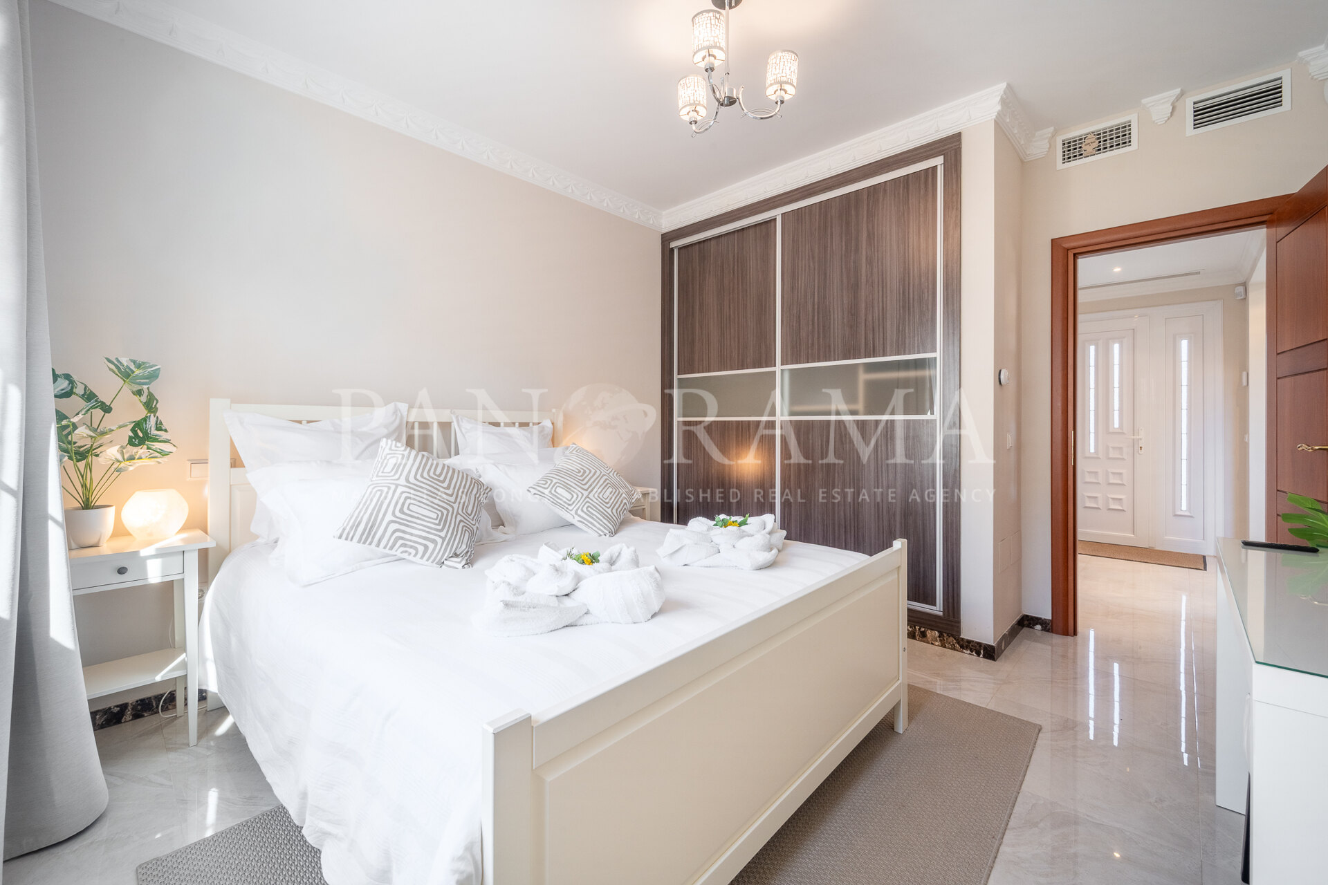 Diese wunderschön präsentierte Strandvilla befindet sich in der begehrten Gegend von Marbesa, Ost-Marbella – nur wenige Schritte von den goldenen Sandstränden Marbellas und einen kurzen Spaziergang von den bekannten Strandrestaurants Moosa Bay und Sinbad entfernt. Die Immobilie vereint Luxus, Komfort und Bequemlichkeit auf perfekte Weise und bietet eine außergewöhnliche Gelegenheit für alle, die ein Familienhaus, ein Feriendomizil oder eine Investition suchen, da sie über eine gültige Kurzzeitvermietungslizenz verfügt.