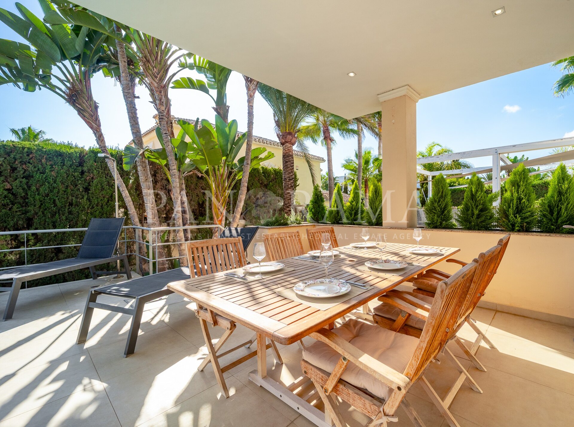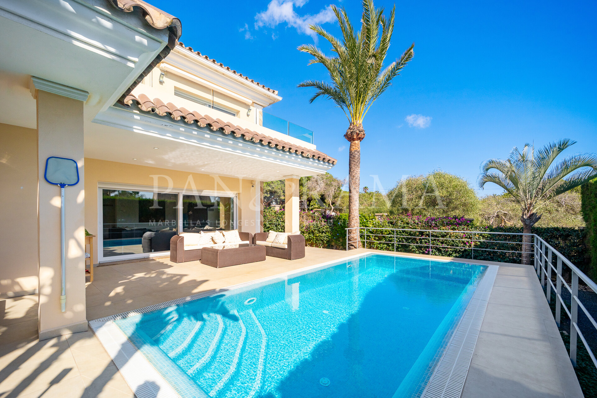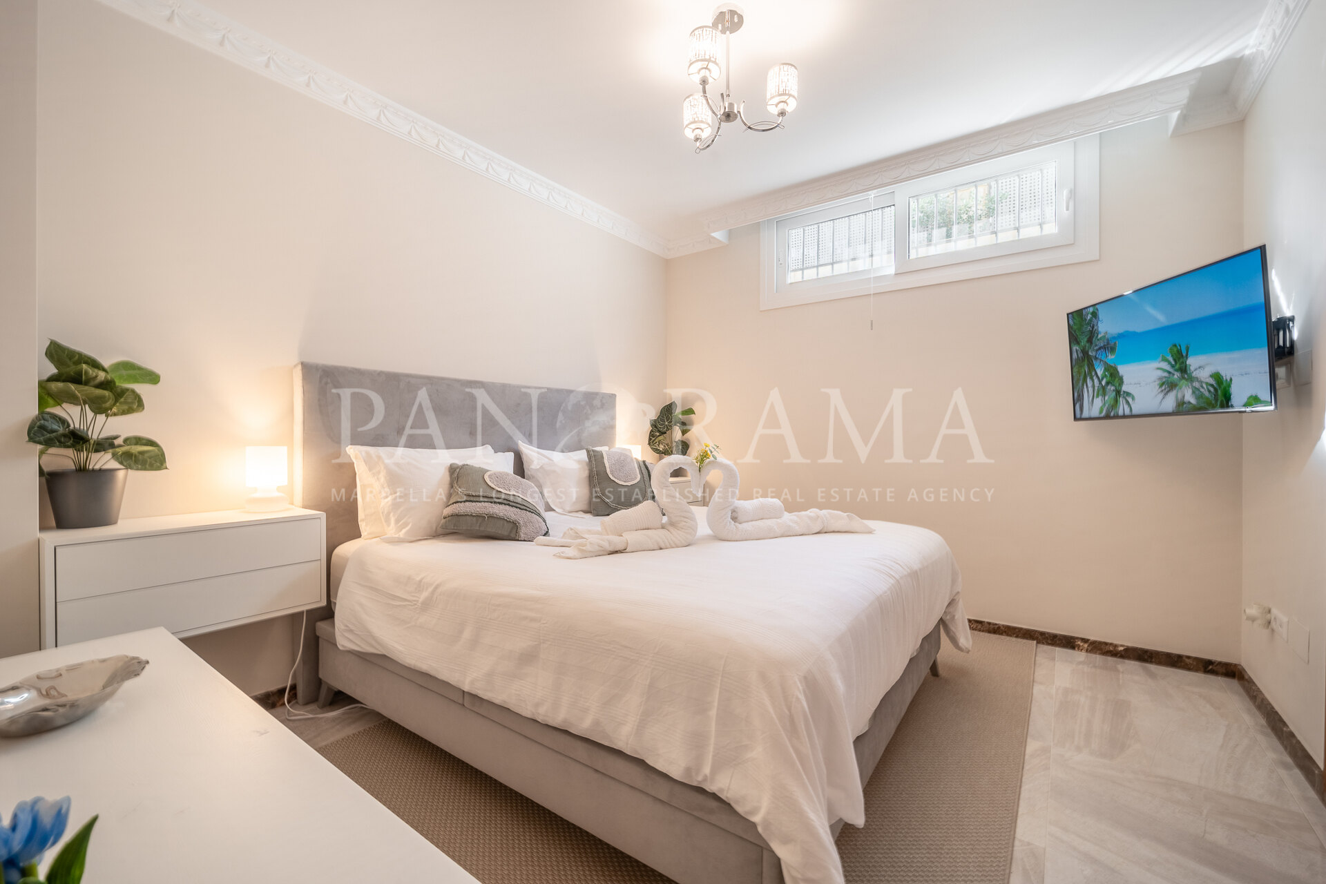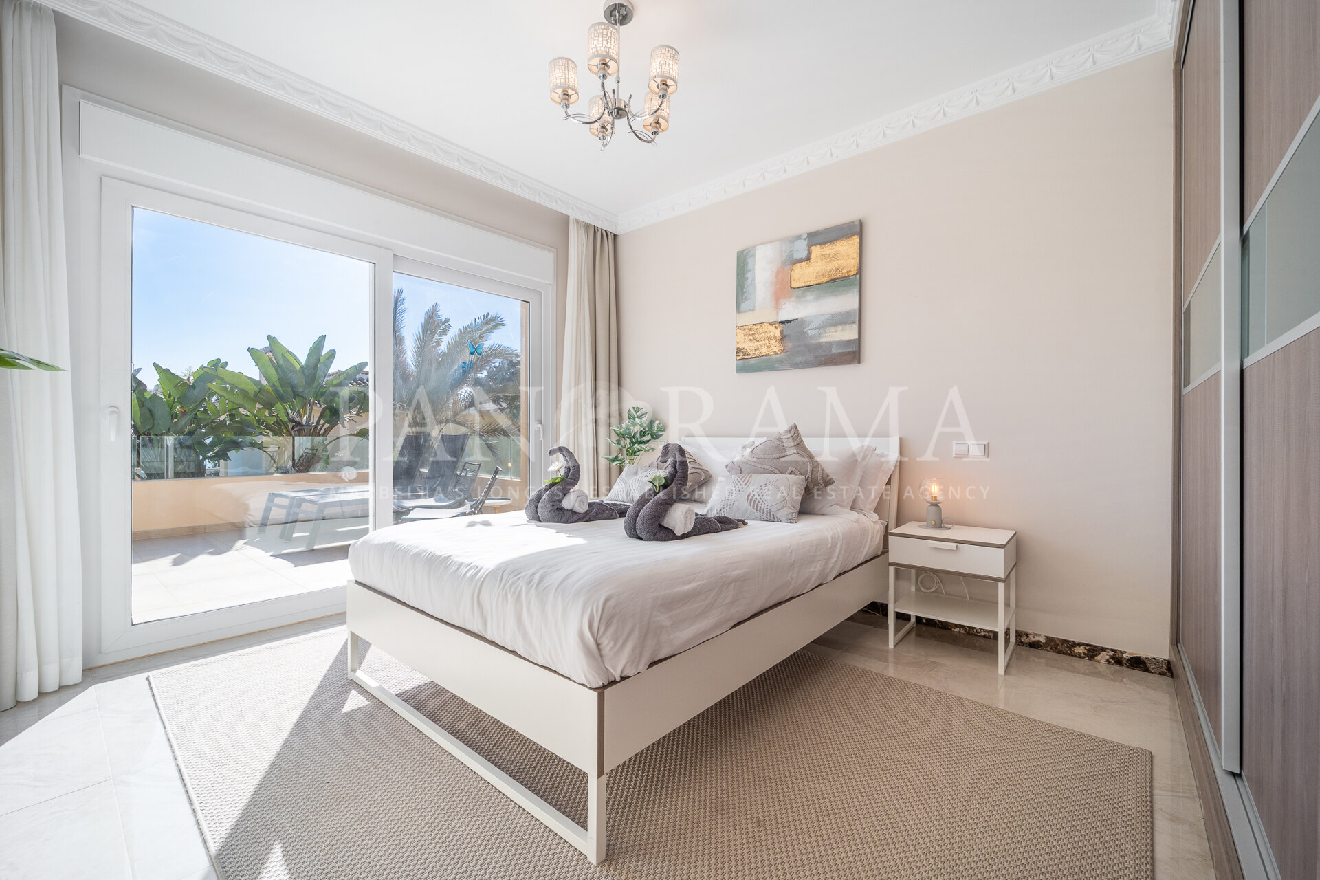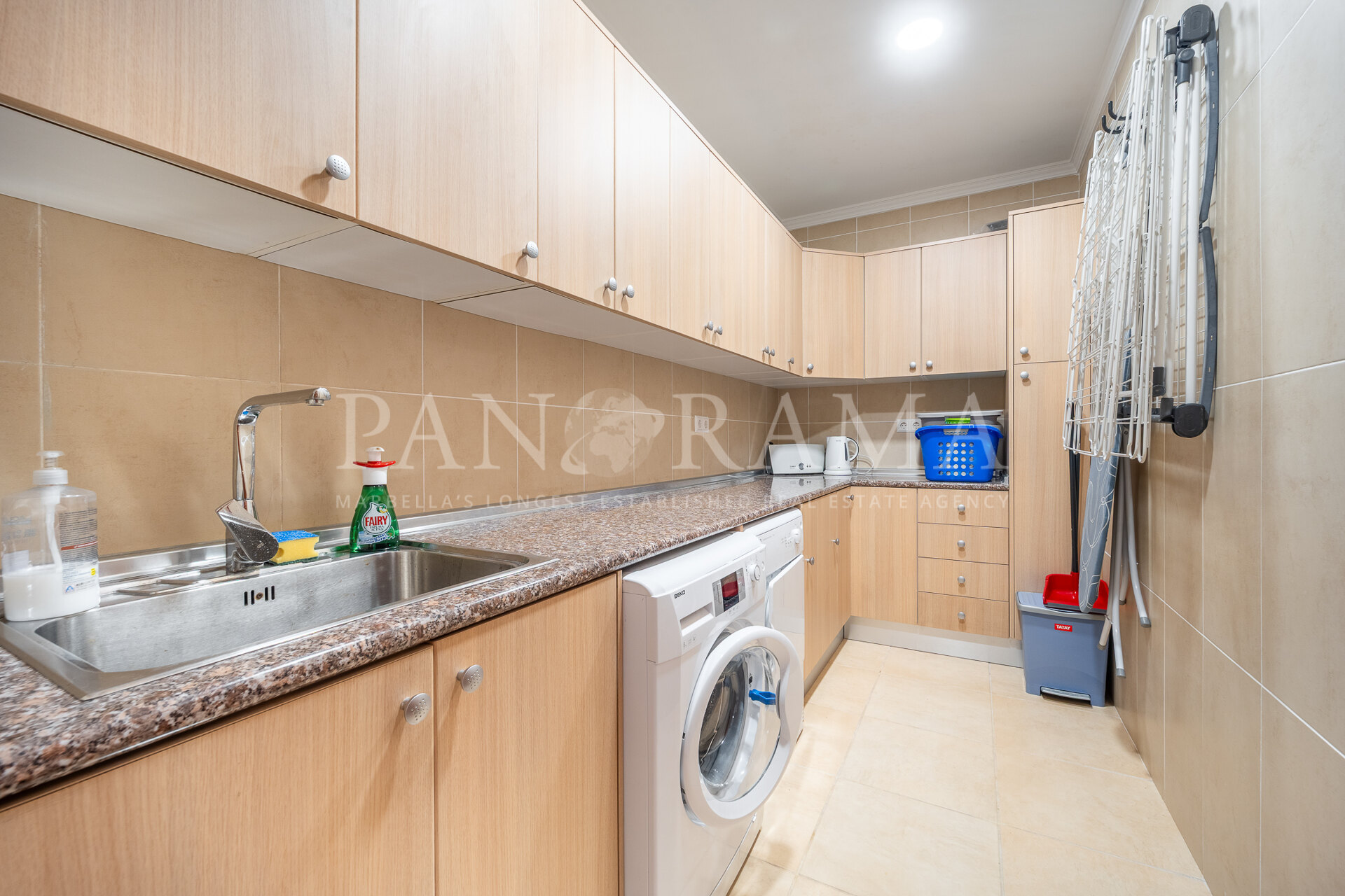 Diese wunderschön präsentierte Strandvilla befindet sich in der begehrten Gegend von Marbesa, Ost-Marbella – nur wenige Schritte von den goldenen Sandstränden Marbellas und einen kurzen Spaziergang von den bekannten Strandrestaurants Moosa Bay und Sinbad entfernt. Die Immobilie vereint Luxus, Komfort und Bequemlichkeit auf perfekte Weise und bietet eine außergewöhnliche Gelegenheit für alle, die ein Familienhaus, ein Feriendomizil oder eine Investition suchen, da sie über eine gültige Kurzzeitvermietungslizenz verfügt.