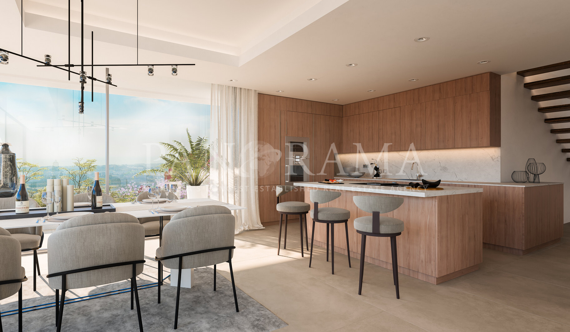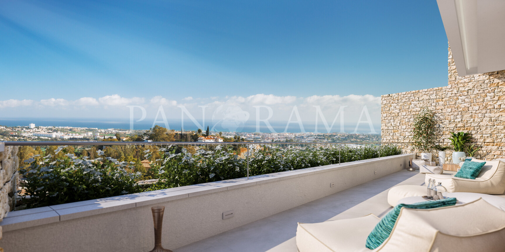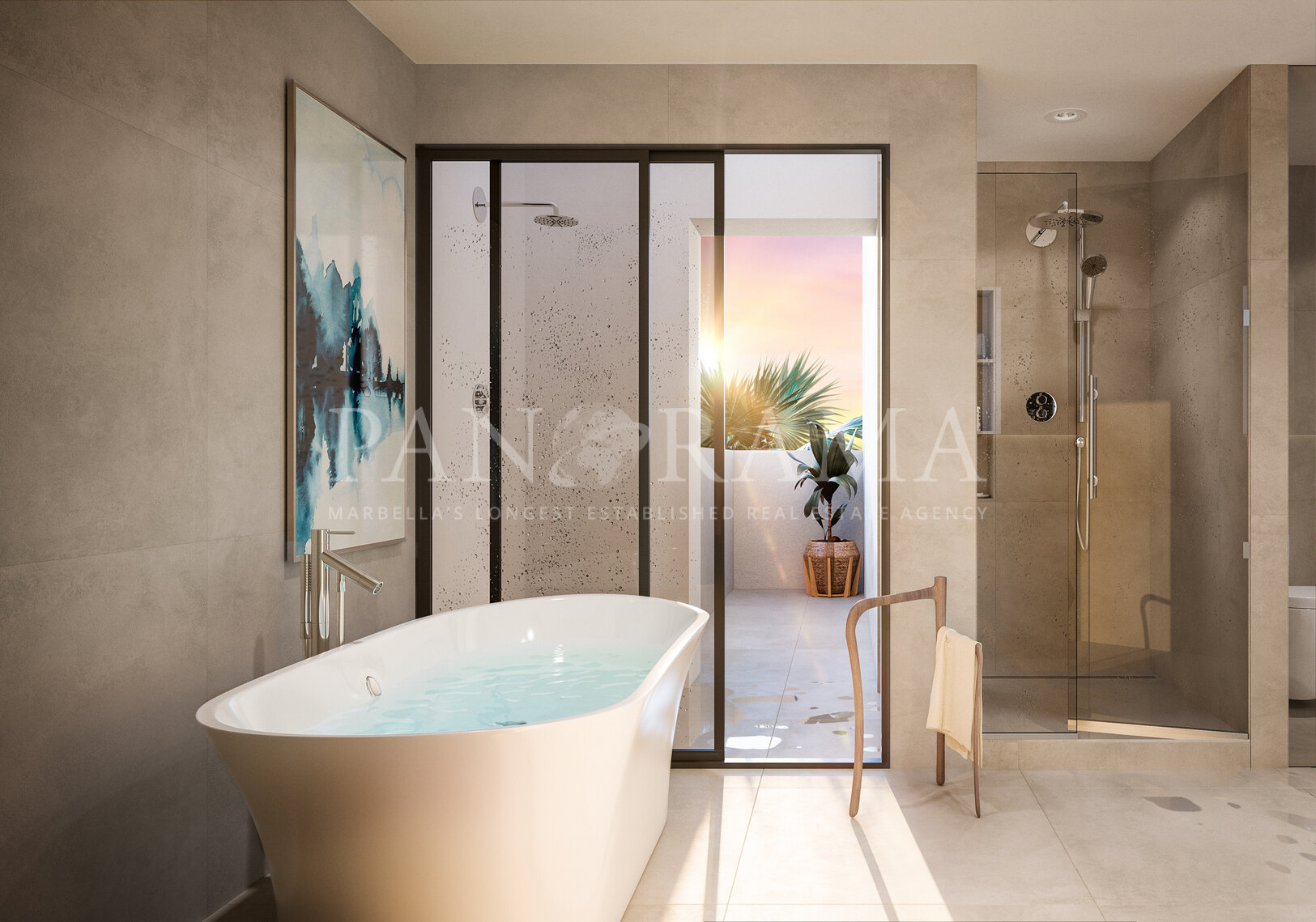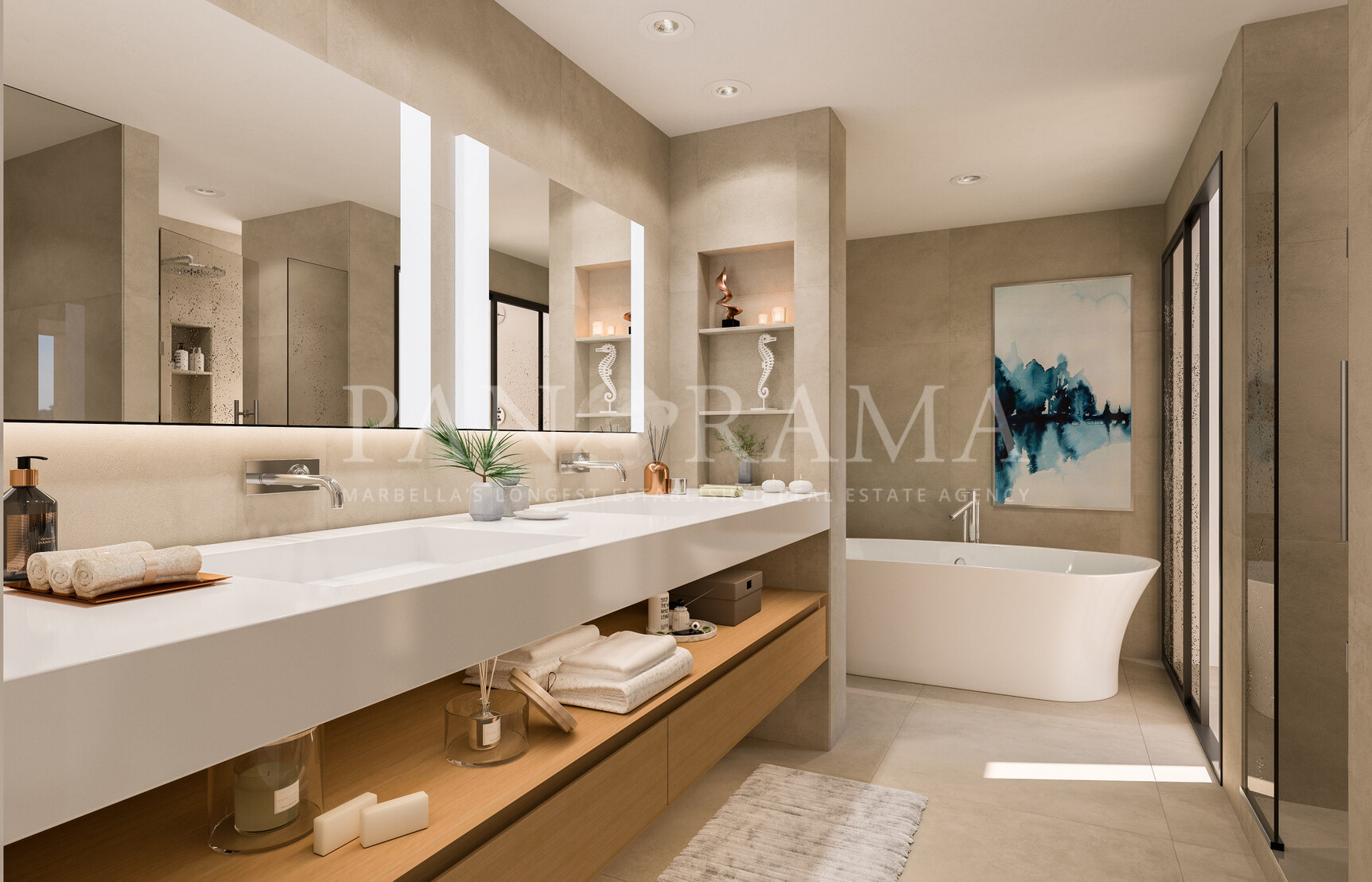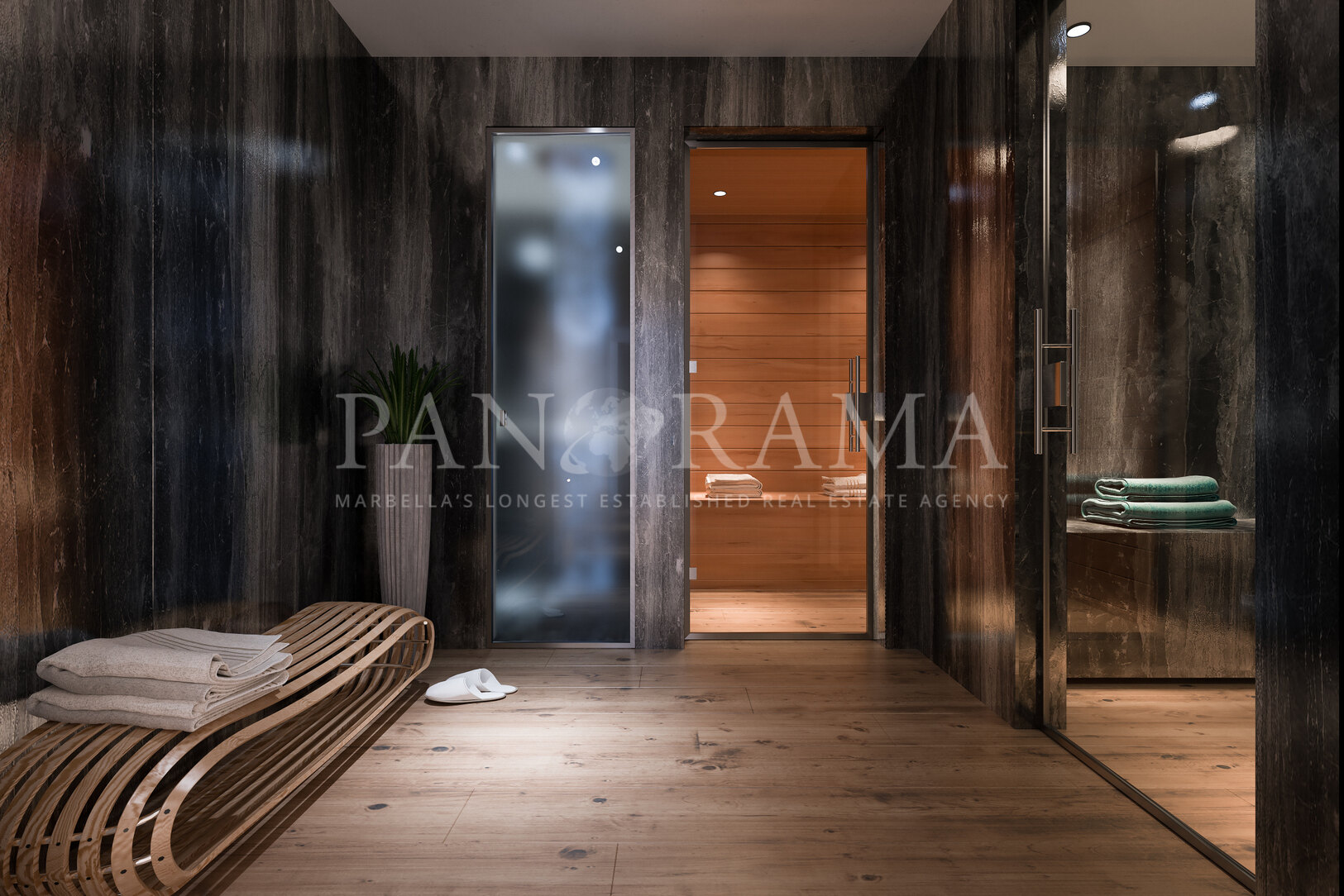 A community of only seven contemporary apartments with spectacular views over the coast. The properties are designed to the highest specifications and located next to La Quinta golf course and within a 10-minute drive to Puerto Banús. The apartments are bright and spacious, with large terraces to enjoy outdoor living space. Some special features include underfloor heating, golf buggy parking space, top-of-the-range appliances for kitchens, home automation for lighting, temperature control, shutters, awnings and sounds system. The community has a pool and spa and relaxation area with gym and sauna.