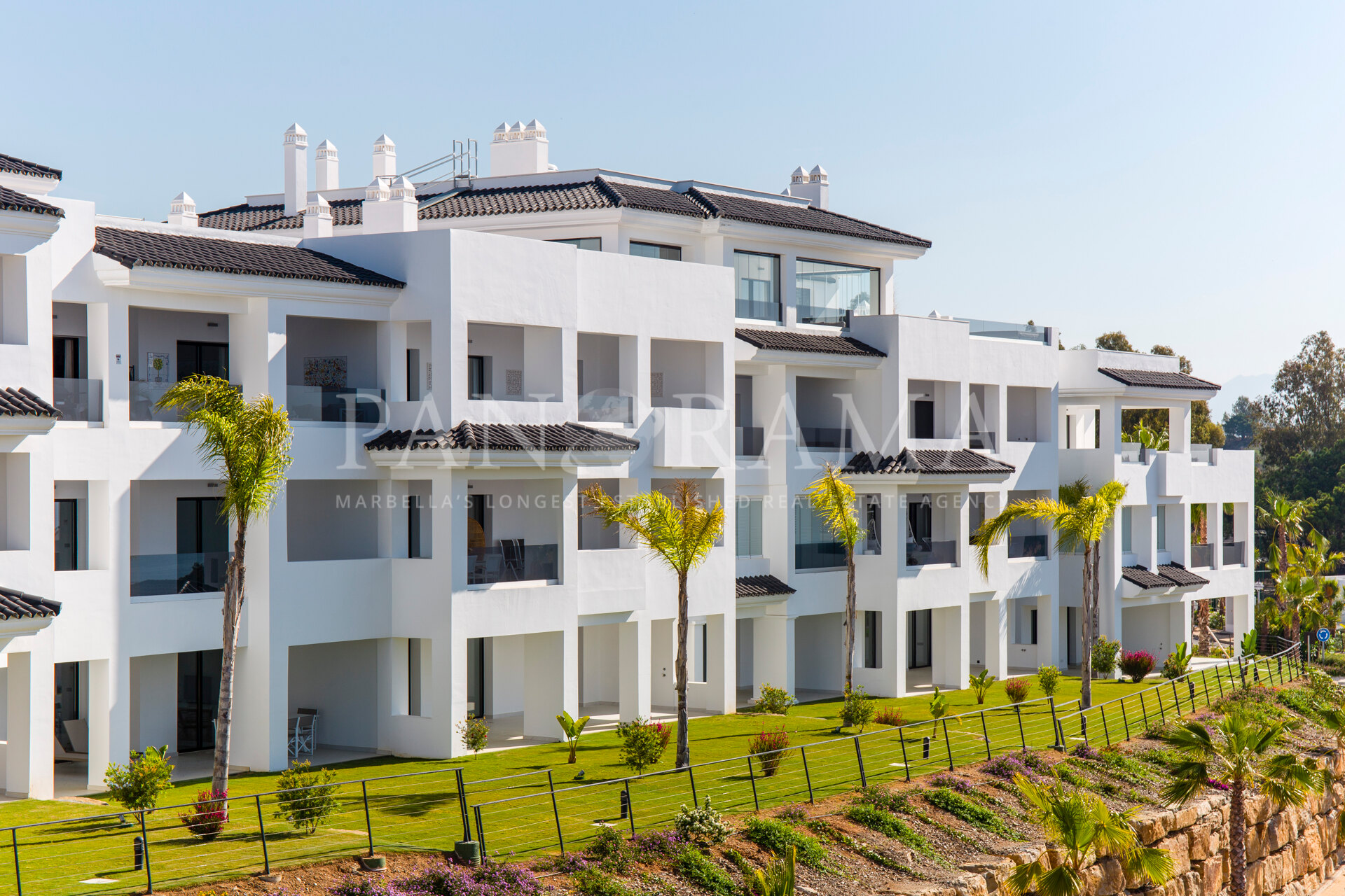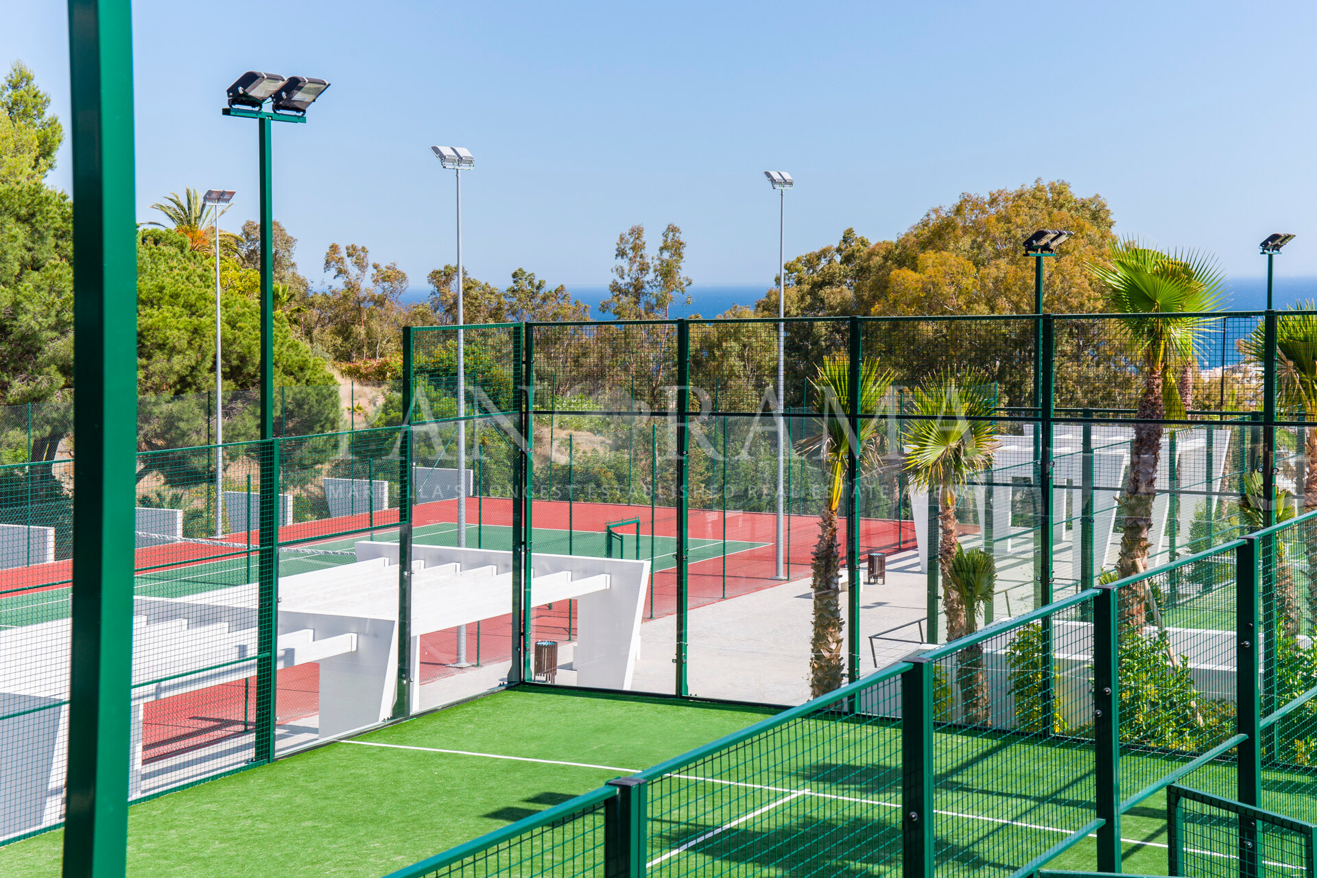 42 luxurious apartments with magnificent sea views are built. The exclusive complex has two swimming pool areas with more than 1650m2 of water, a sports center with a gym, yoga, pilates, paddle and tennis courts. The restaurant by the pool has wonderful sea views and is open all year. These magnificent apartments looking across the town of Estepona to the sea, are organized over one, two and three-storey buildings and offer the option of two, three or four-bedroom homes. Areas are available between 115m2 and 311m2 with terrace or garden and with parking. Choose between a private garden with excellent panoramic views or being at different vantage points, with the best views towards the sea and/or the mountain.