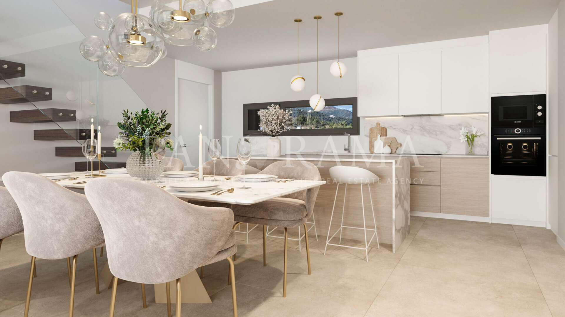 Nuevo proyecto de apartamentos en Benahavís con 56 unidades de viviendas exclusivas de 3 y 4 dormitorios con vistas panorámicas al mar, que se distribuyen en 7 bloques con solo 2 viviendas en cada nivel para hacerlo aún más exclusivo. Cada propiedad está perfectamente diseñada y pensada para el bienestar y comodidad en todo momento. Todos los dormitorios de las propiedades tienen baños en-suite, además de tener un aseo adicional para invitados. Cada dormitorio tiene acceso directo a la terraza, con vistas a la costa. Las cocinas de todas las viviendas están completamente equipadas con muebles de diseño y electrodomésticos de bajo consumo. Solo necesitarás decorarlas a tu estilo y tu vivienda estará lista para entrar a vivir. Diseño con atención a los más mínimos detalles en una ubicación privilegiada sobre el valle del golf, un lugar ideal en la Costa del Sol a tan solo 10 minutos de Marbella y de Puerto Banús.