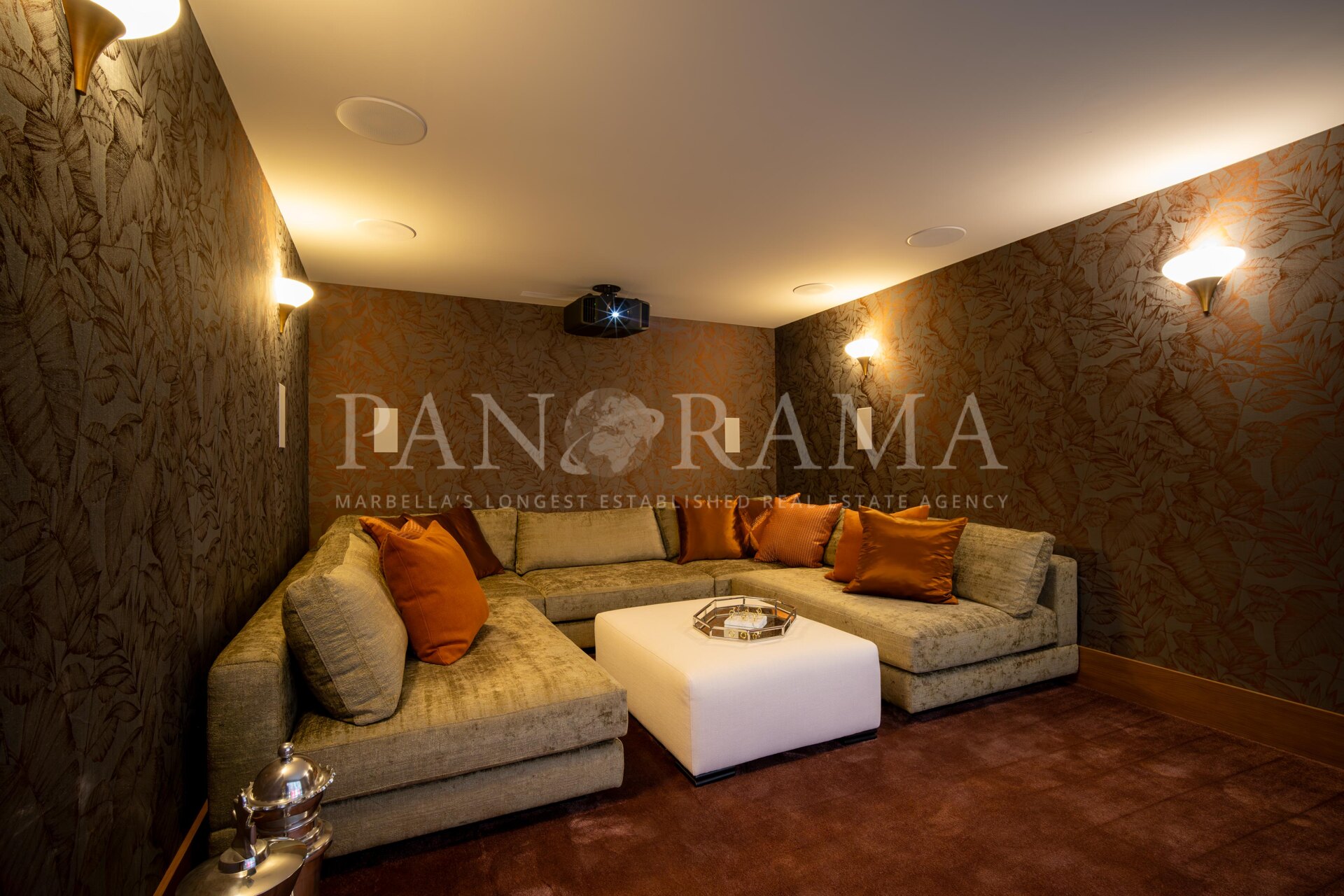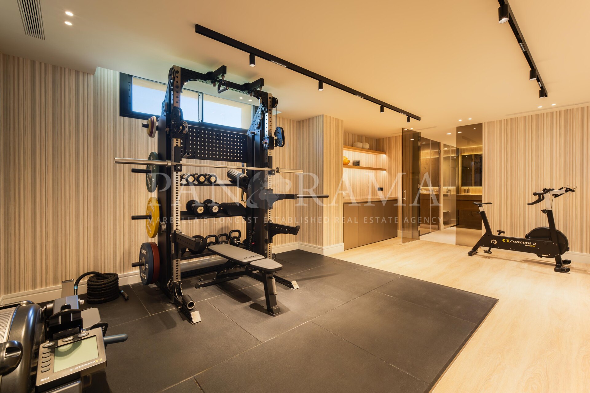 Las comodidades de la villa son excepcionales e incluyen un gimnasio para los entusiastas del fitness, una sala de cine para el entretenimiento, y un SPA completo con sauna y piscina cubierta. Esta propiedad no es solo una casa, sino un verdadero estilo de vida con su diseño excepcional, elegancia, lujosas comodidades y vistas impresionantes que ofrecen una experiencia residencial única y exclusiva.