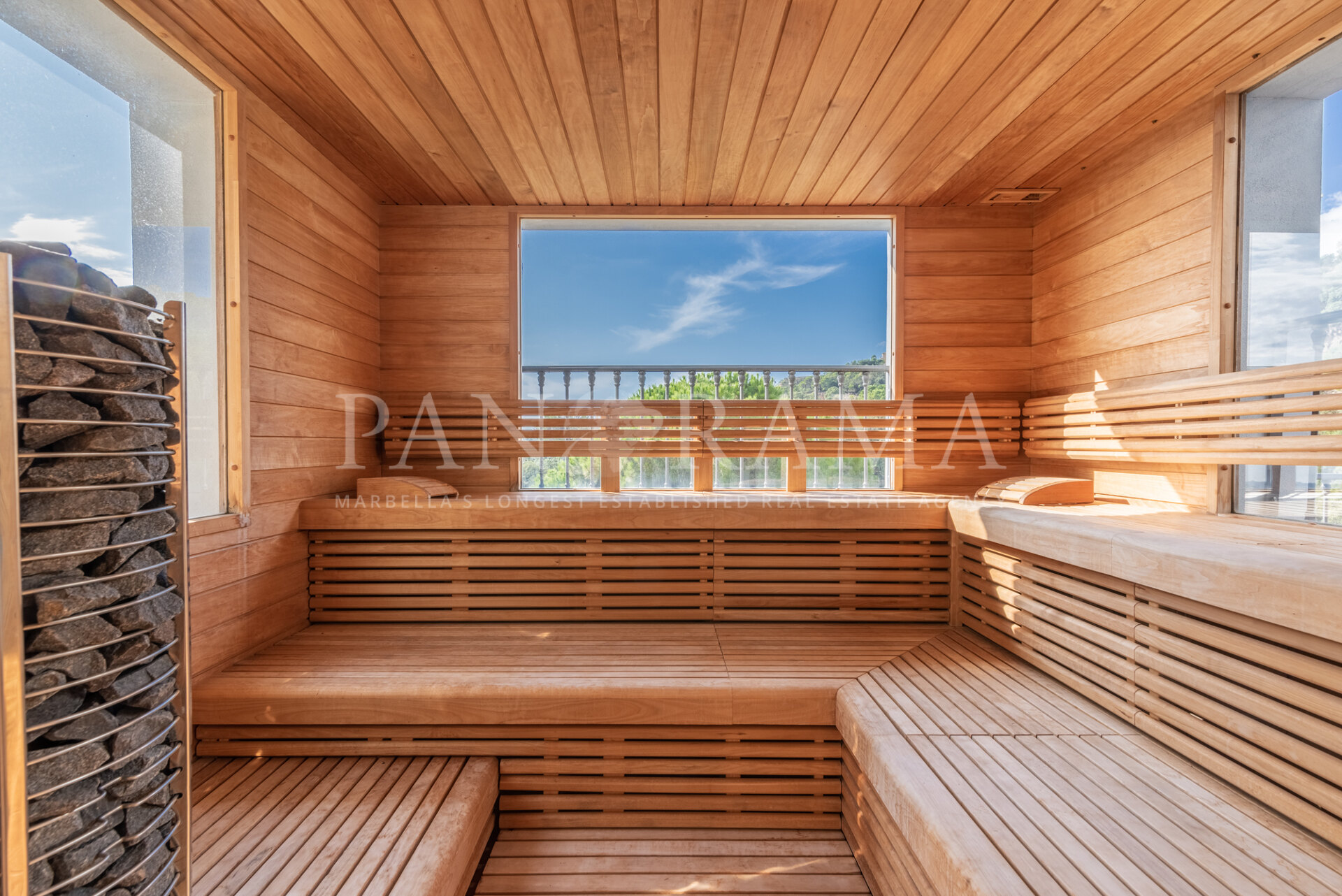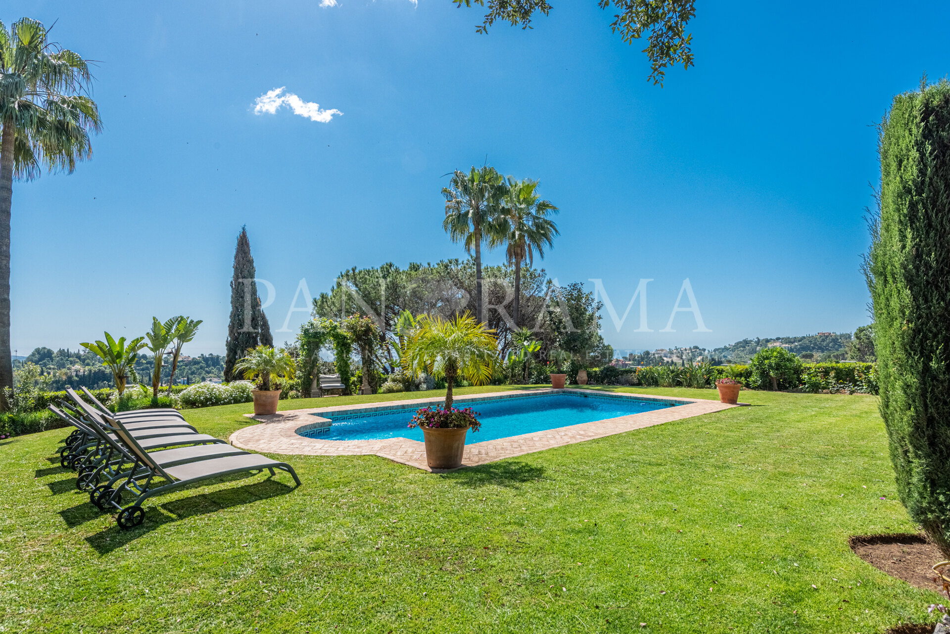 Villa Goya, una espectacular propiedad mediterránea con vistas panorámicas al mar y pista de tenis privada en El Madroñal.