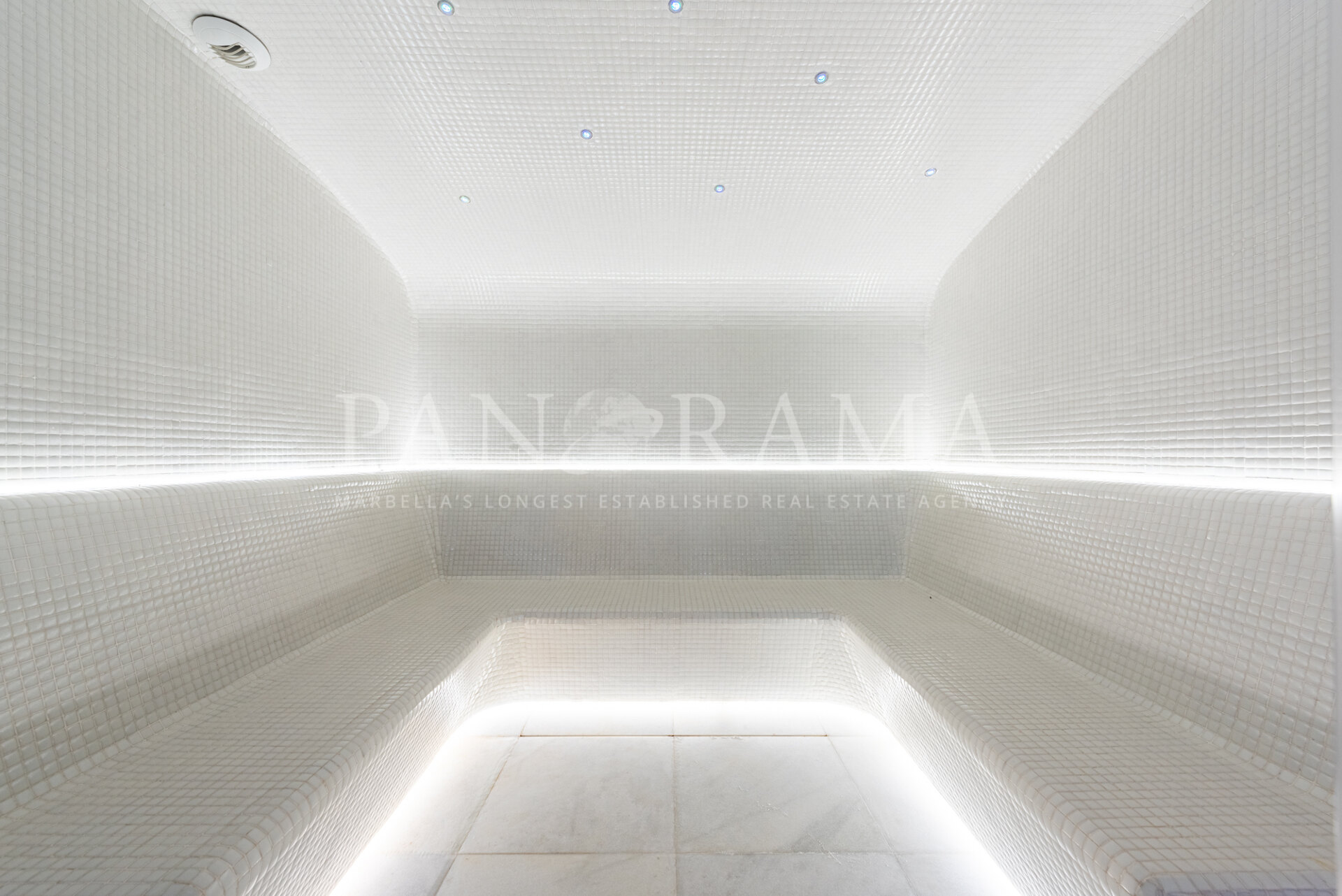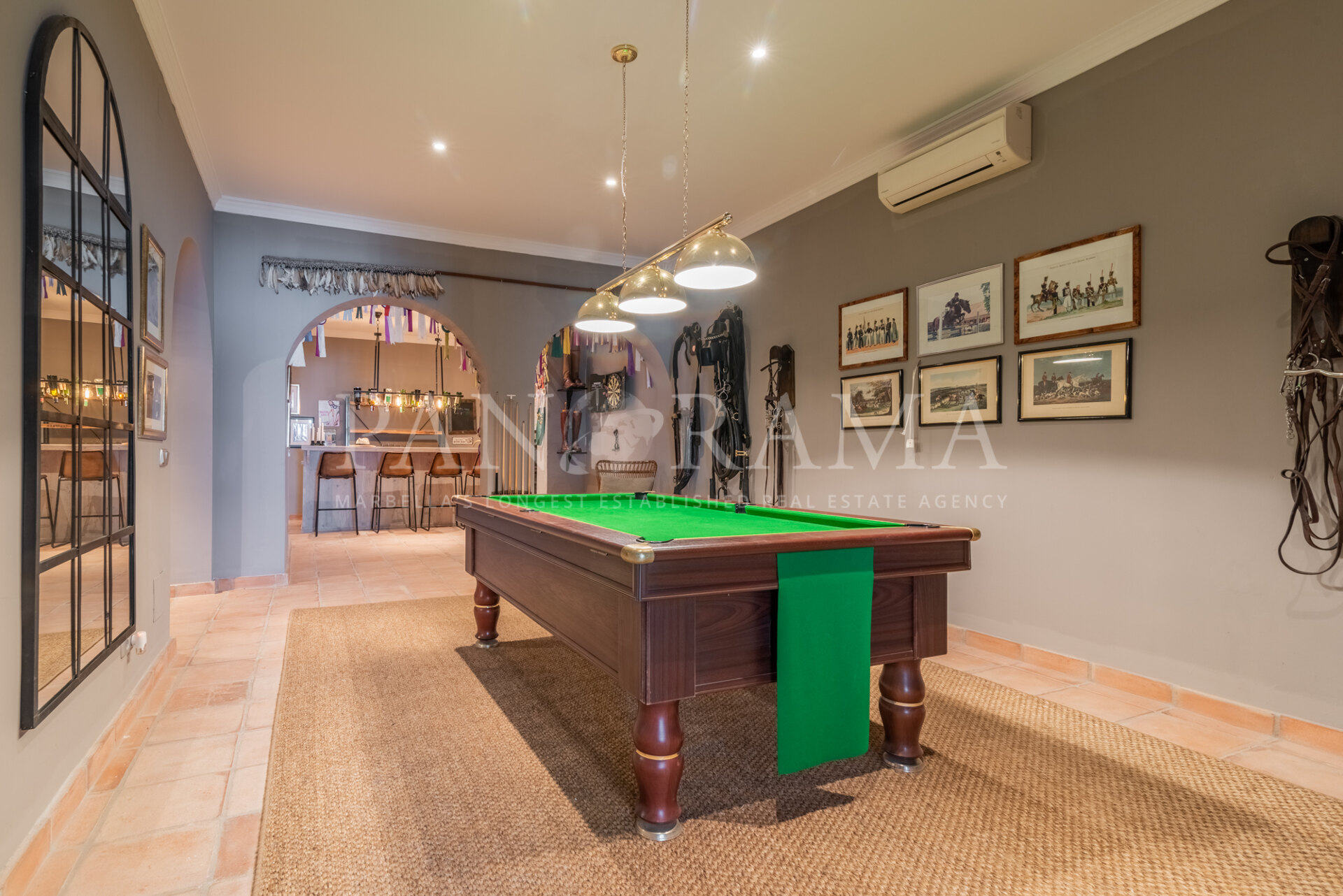 Esta finca es una verdadera fusión de elegancia clásica y conveniencia moderna. El diseño arquitectónico se inclina hacia la sofisticación clásica, pero la propiedad está equipada con todas las comodidades contemporáneas para una vida de lujo. Uno de los aspectos más impresionantes es la moderna piscina cubierta y el spa, que incluyen una gama completa de servicios comparables a los de un resort de cinco estrellas. Esta exclusiva área de spa interior brinda lo último en relajación y bienestar, convirtiéndose en una característica destacada y rara incluso en las propiedades más exclusivas.