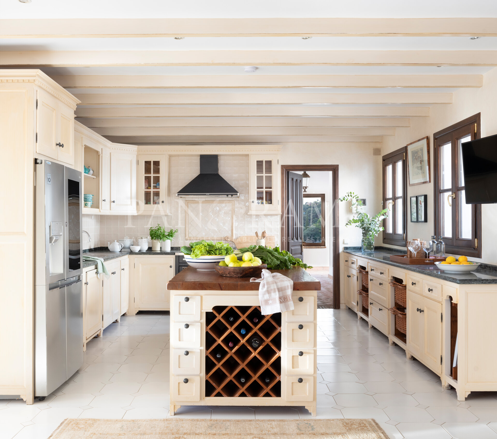 El exterior es igualmente impresionante, con jardines bellamente diseñados y una piscina al aire libre que disfruta de una orientación ideal para capturar vistas mágicas de las montañas y el mar. La finca se encuentra en una amplia parcela, sostenida por un sistema de agua subterráneo privado que nutre los exuberantes jardines y una gran variedad de plantas y árboles frutales, creando un oasis vibrante de color y belleza natural. Esta característica única no solo realza el encanto de la propiedad, sino que también asegura que los jardines se mantengan verdes todo el año, brindando una sensación de tranquilidad y armonía con la naturaleza.