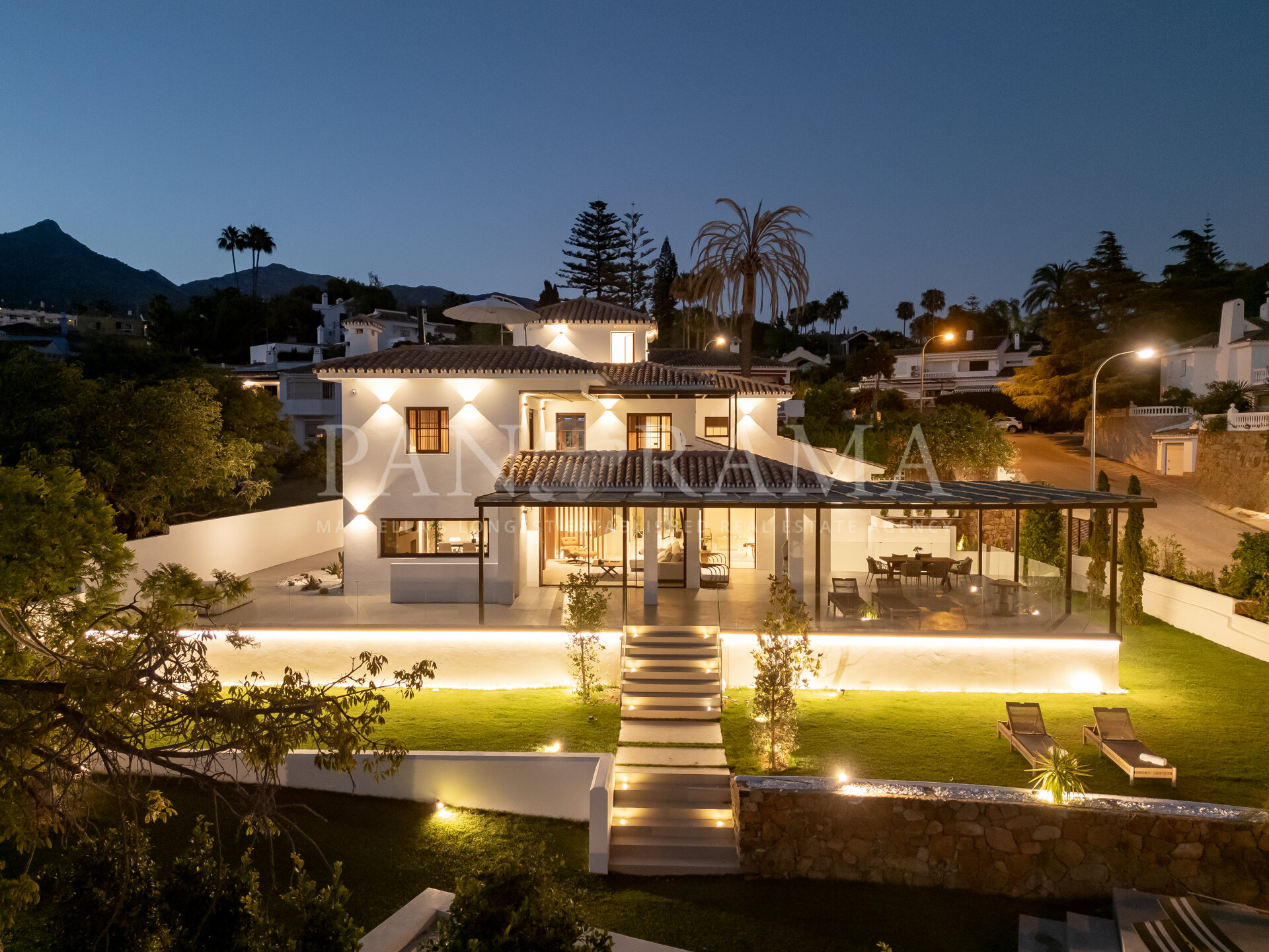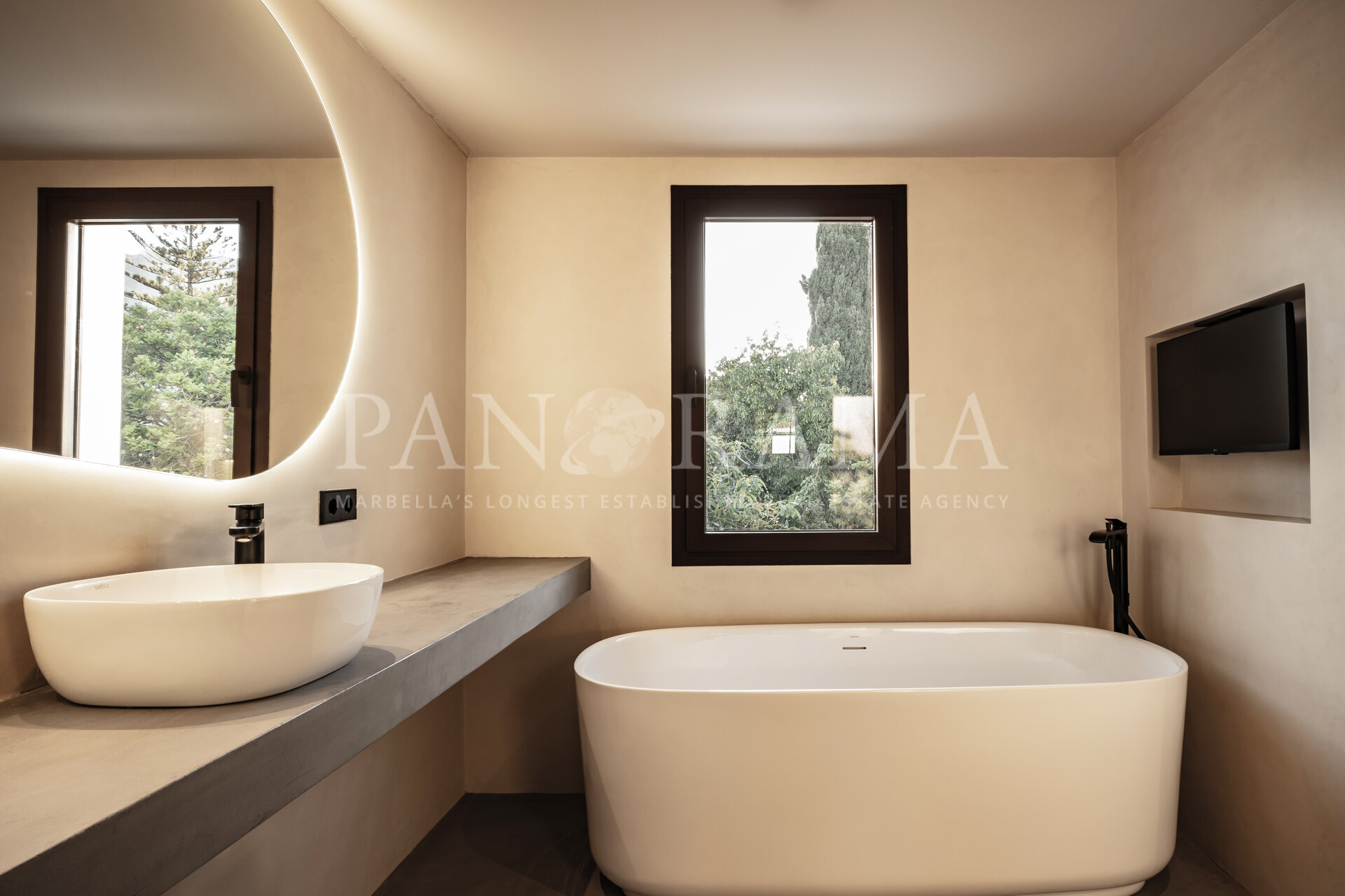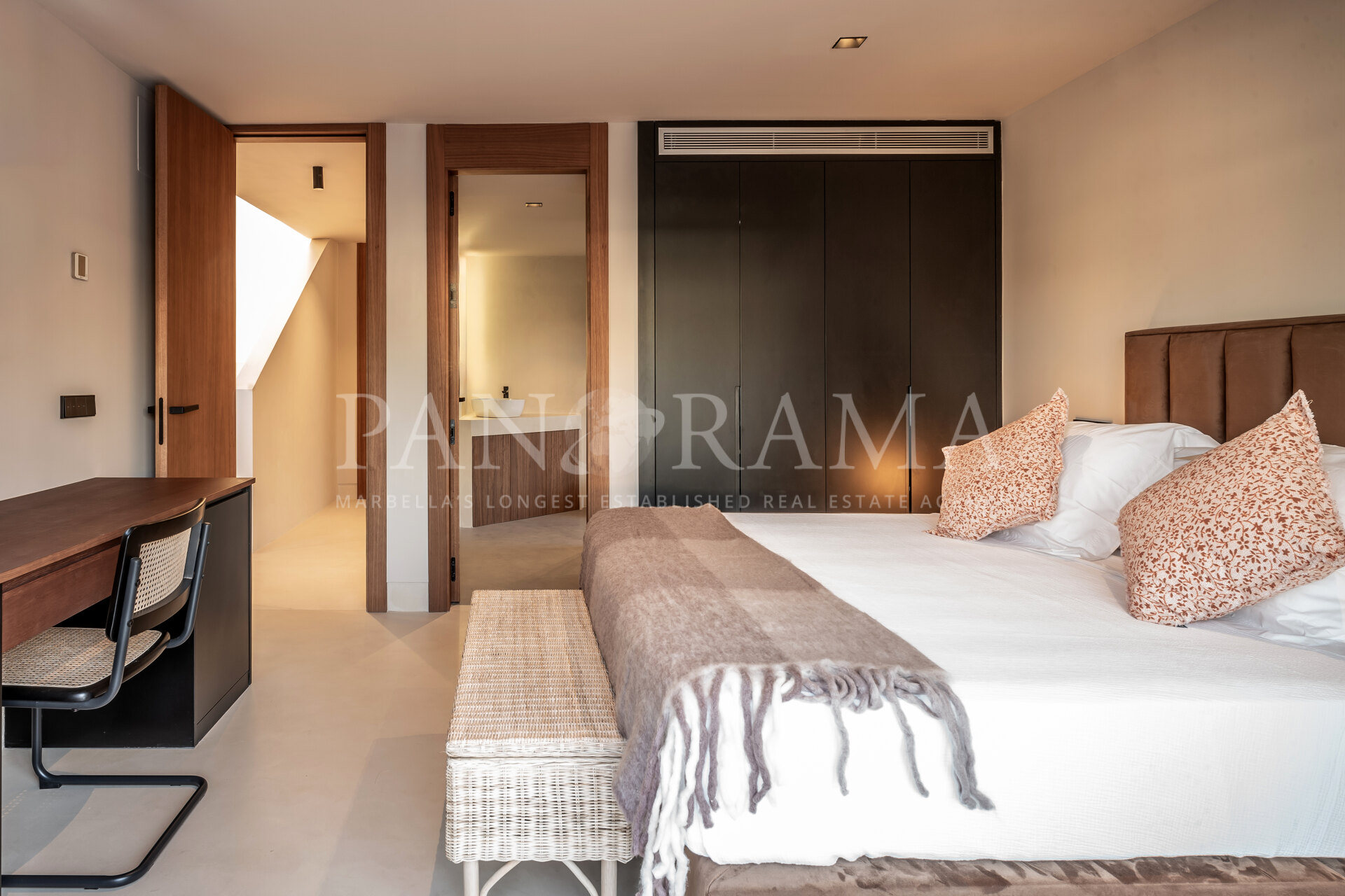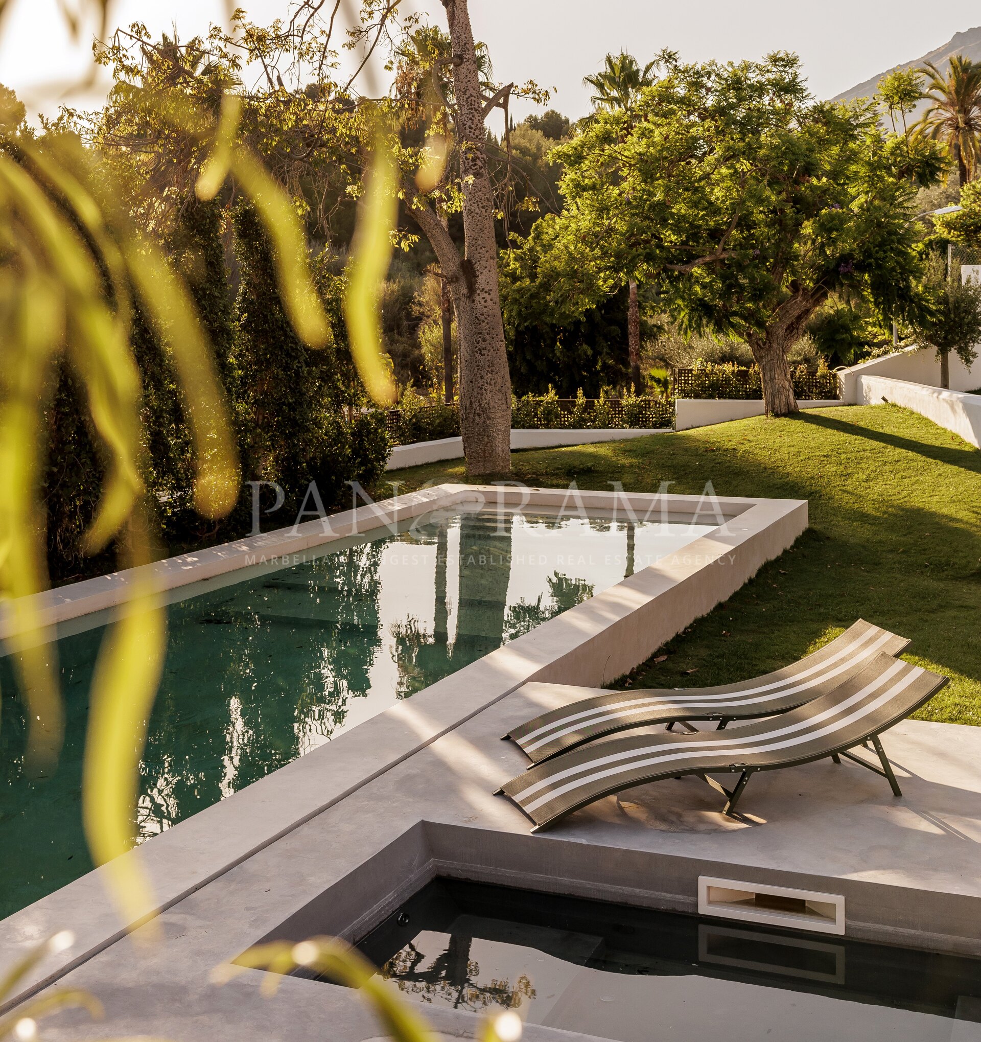 Esta exclusiva villa, completamente renovada, se encuentra en la prestigiosa zona de La Merced, en un entorno residencial tranquilo, a solo 10 minutos a pie de la playa y a solo 5 minutos a pie tanto del centro de Marbella como de la reconocida Milla de Oro. La propiedad, que se extiende sobre una parcela de 1,251 metros cuadrados con orientación suroeste, ofrece una generosa área construida distribuida en varios niveles, combinando diseño, confort y lujo.