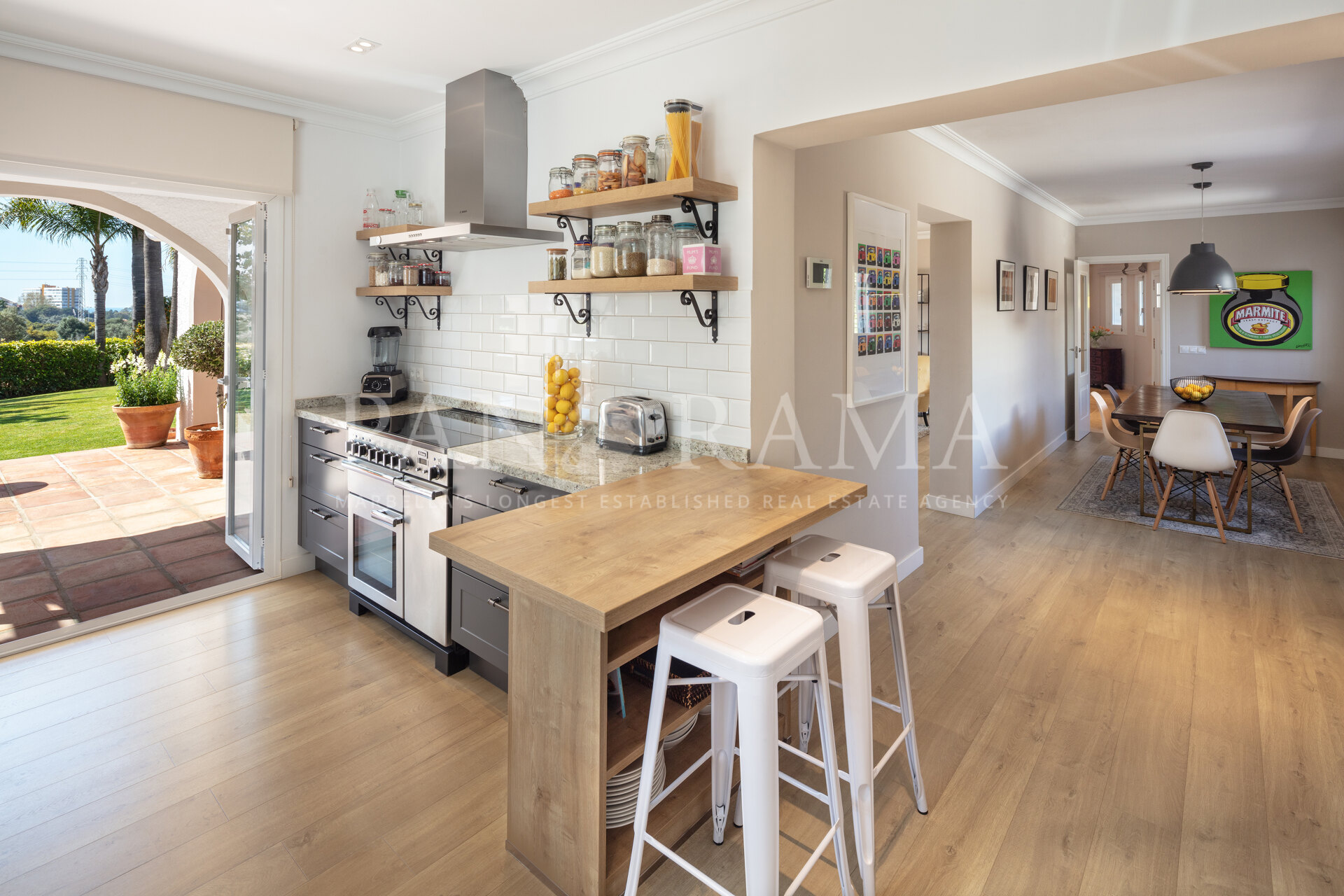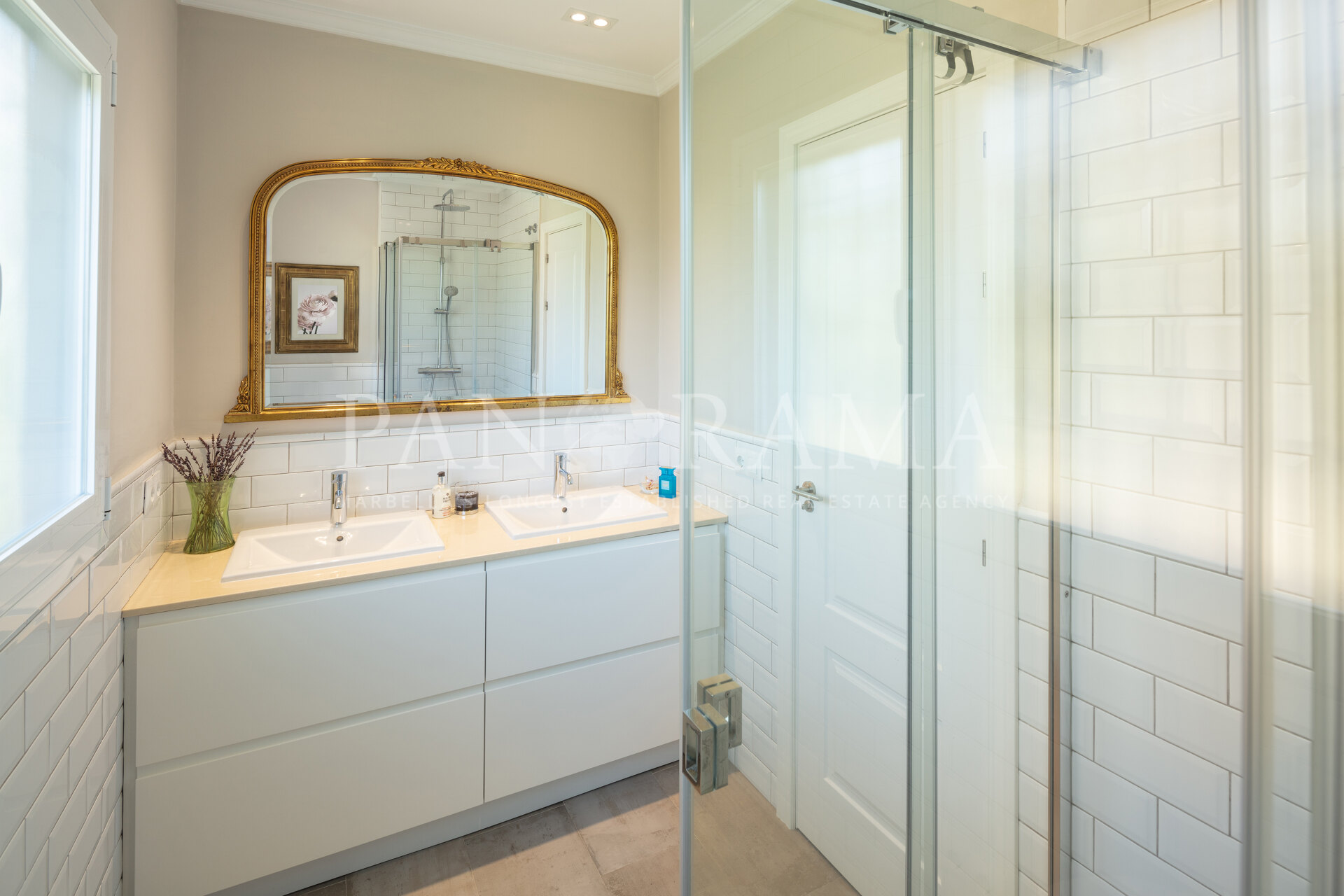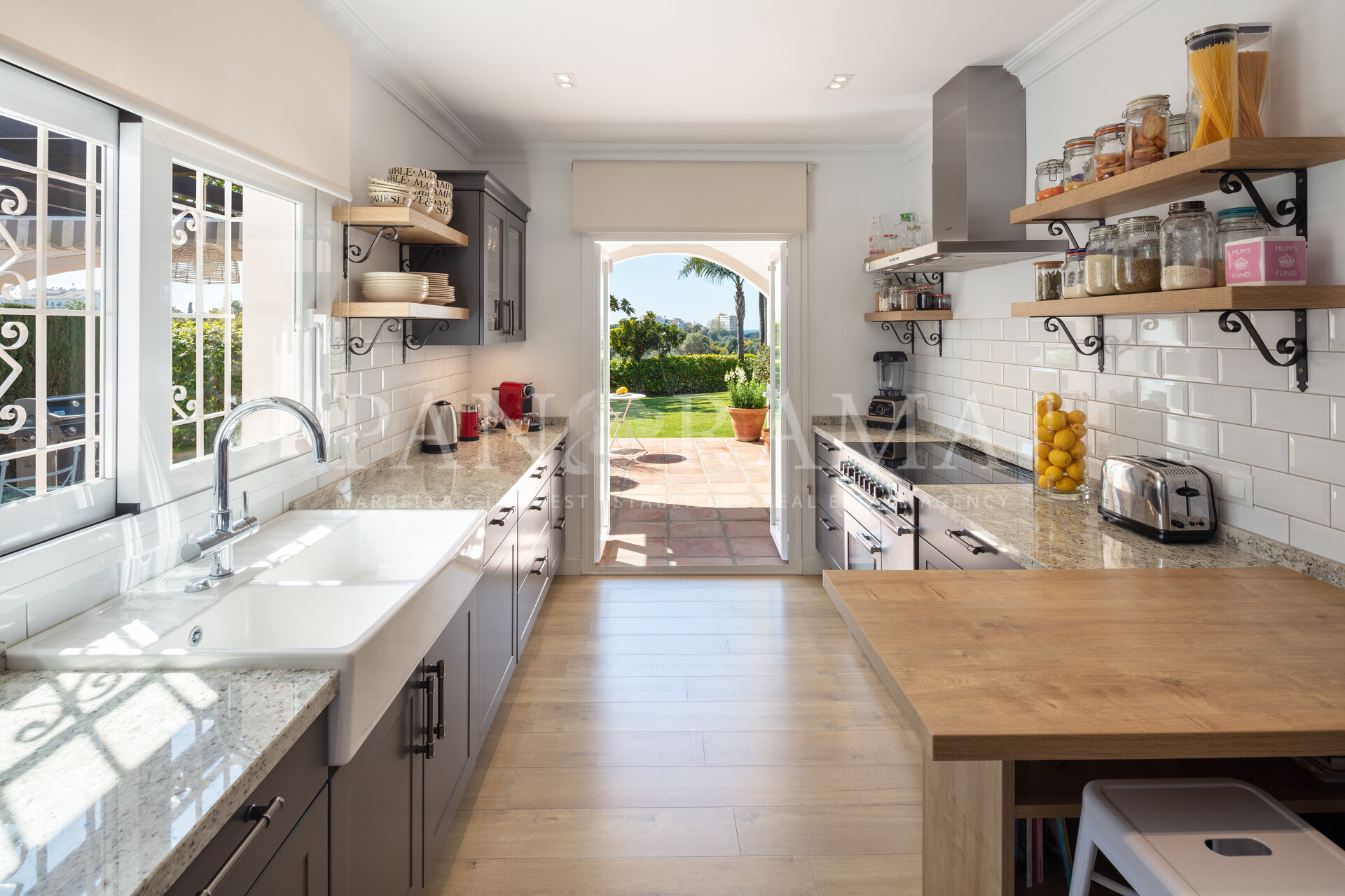 Esta encantadora villa familiar, ubicada en la codiciada zona residencial de El Rosario en Marbella Este, ofrece una combinación perfecta de comodidad, estilo y conveniencia. Situada en una comunidad consolidada, la propiedad está diseñada cuidadosamente y completamente renovada con los más altos estándares, proporcionando una experiencia de vida excepcional. La villa disfruta de una posición privilegiada orientada al sur, asegurando una abundante luz natural durante todo el día, además de ofrecer impresionantes vistas del brillante mar Mediterráneo.
