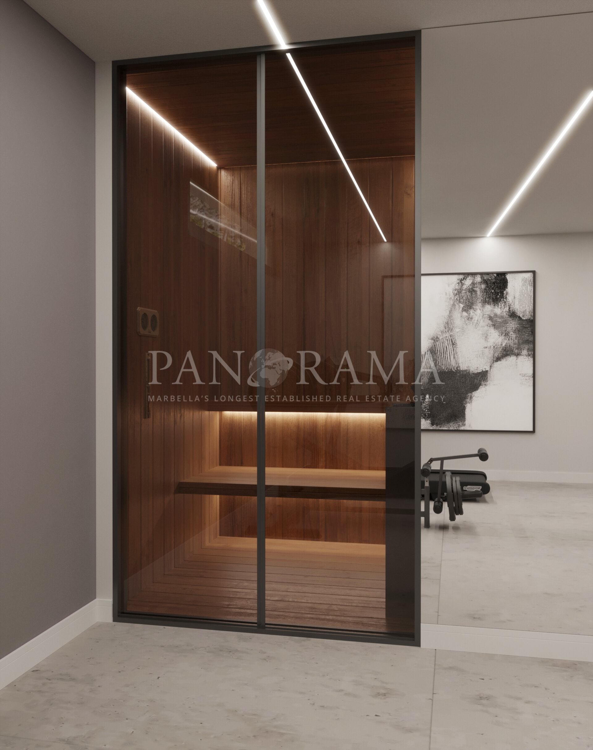 Una característica destacada de estas villas es el amplio solárium, que cubre más de 100m². Este refugio en la azotea ofrece vistas panorámicas del mar Mediterráneo y la vegetación circundante, convirtiéndolo en el lugar perfecto para tomar el sol, entretenerse o relajarse bajo las estrellas.