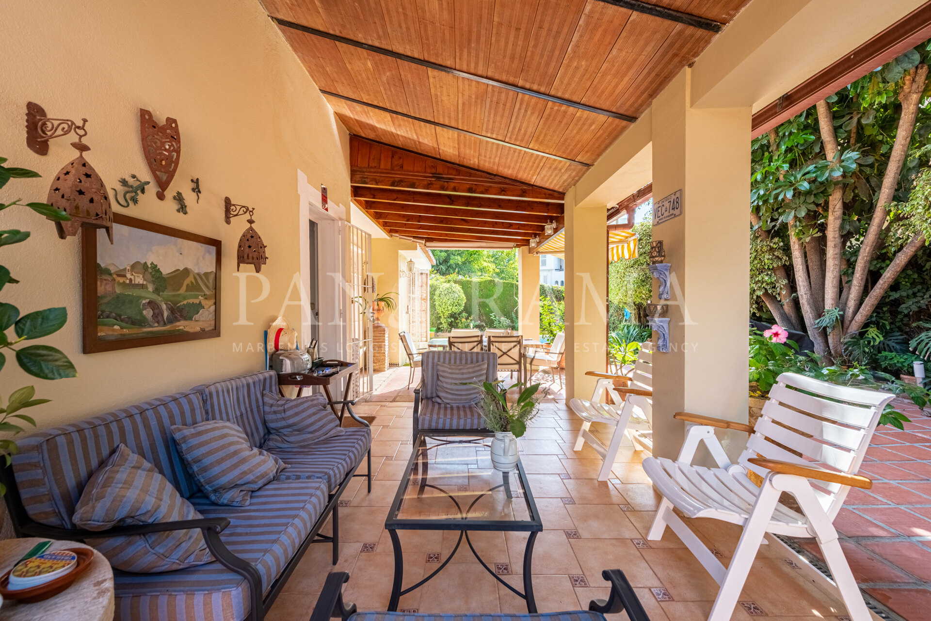 El espacio exterior es uno de los aspectos más destacados de la villa. Un gran porche completamente privado con una fuente es perfecto para cenar al aire libre o simplemente disfrutar del ambiente sereno. El jardín maduro, complementado con una zona de barbacoa, ofrece un entorno ideal para entretener a los invitados o relajarse en familia. El garaje separado, actualmente utilizado como trastero, ofrece flexibilidad y podría convertirse fácilmente nuevamente en garaje o ampliarse si se desea.
