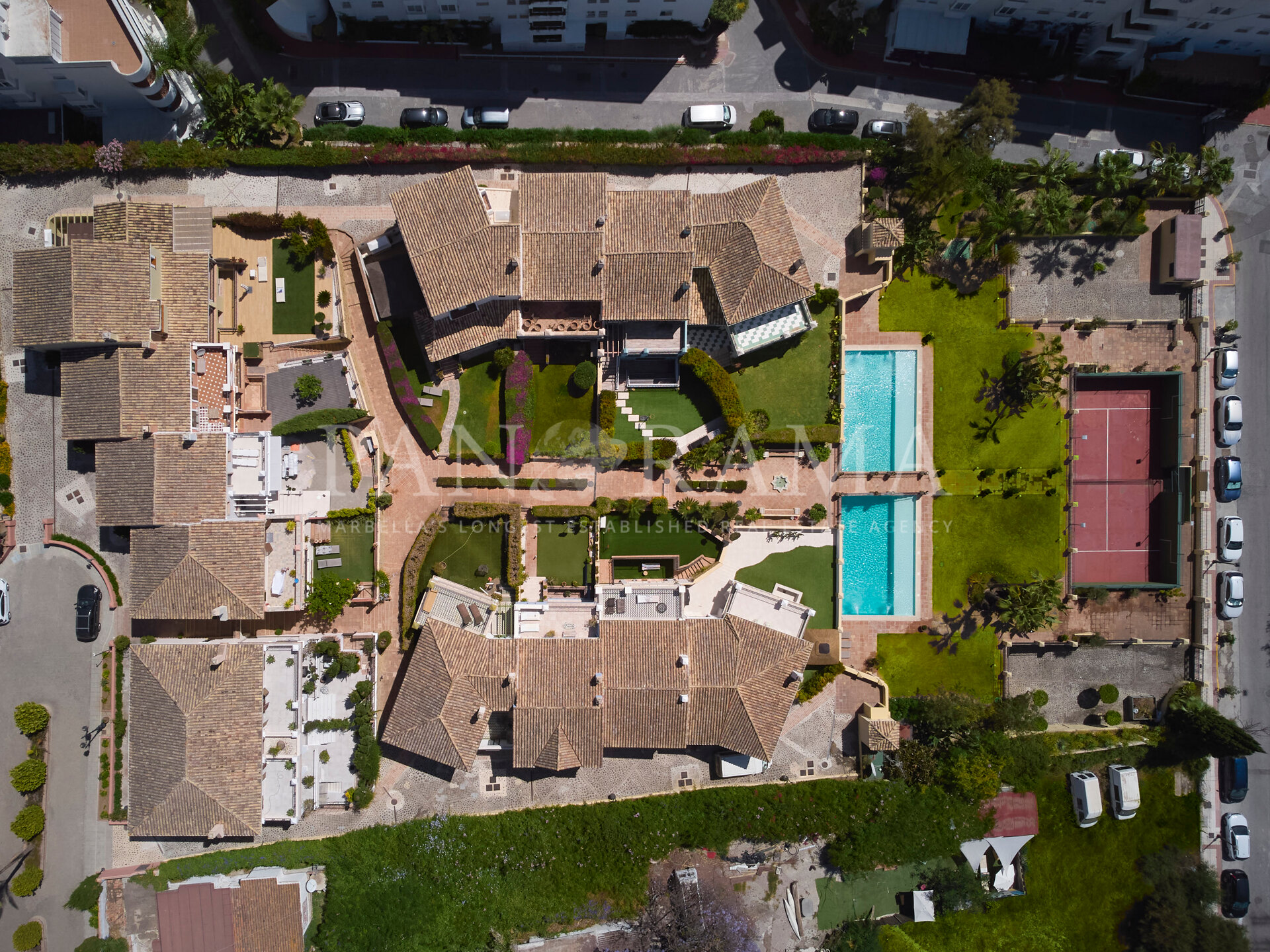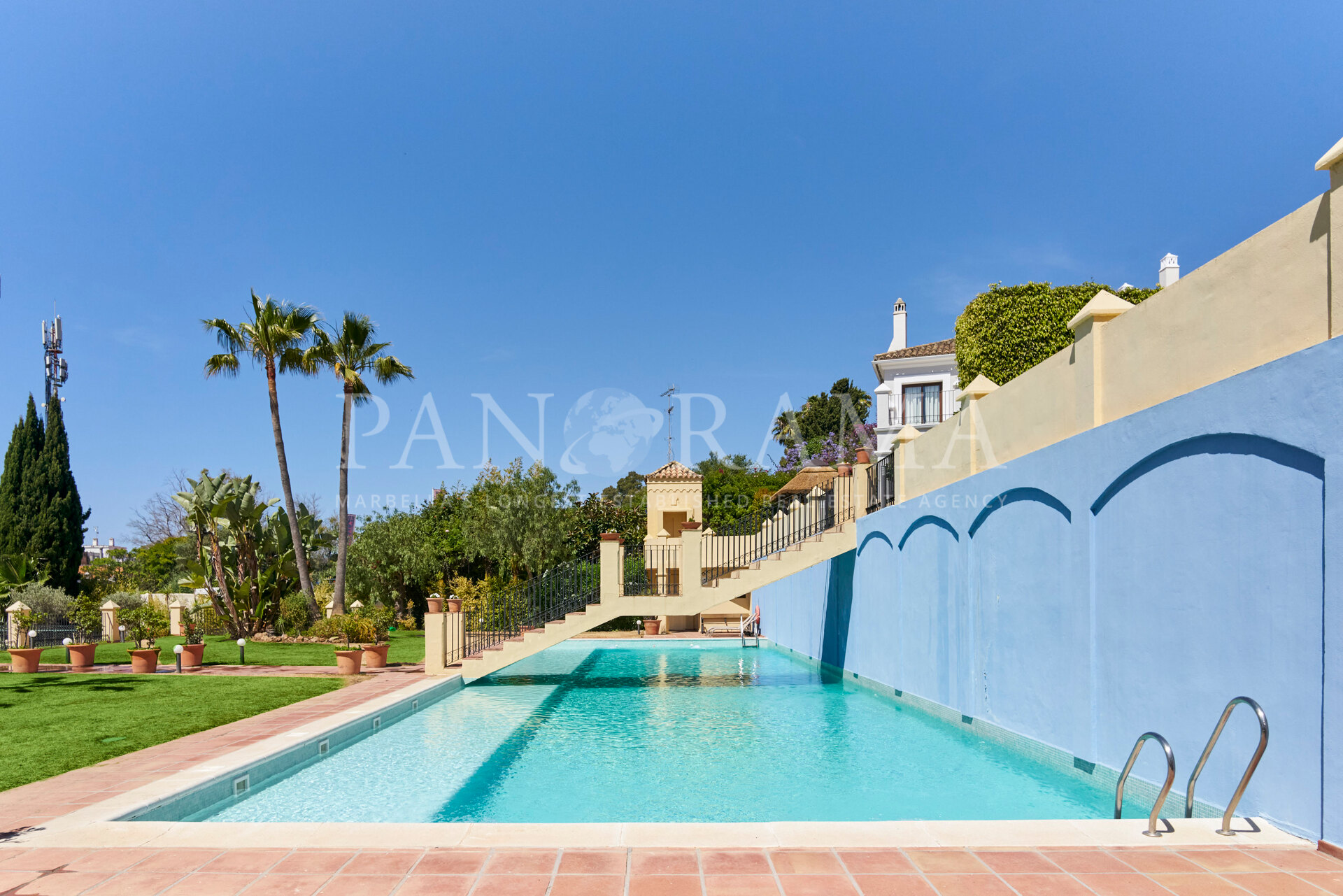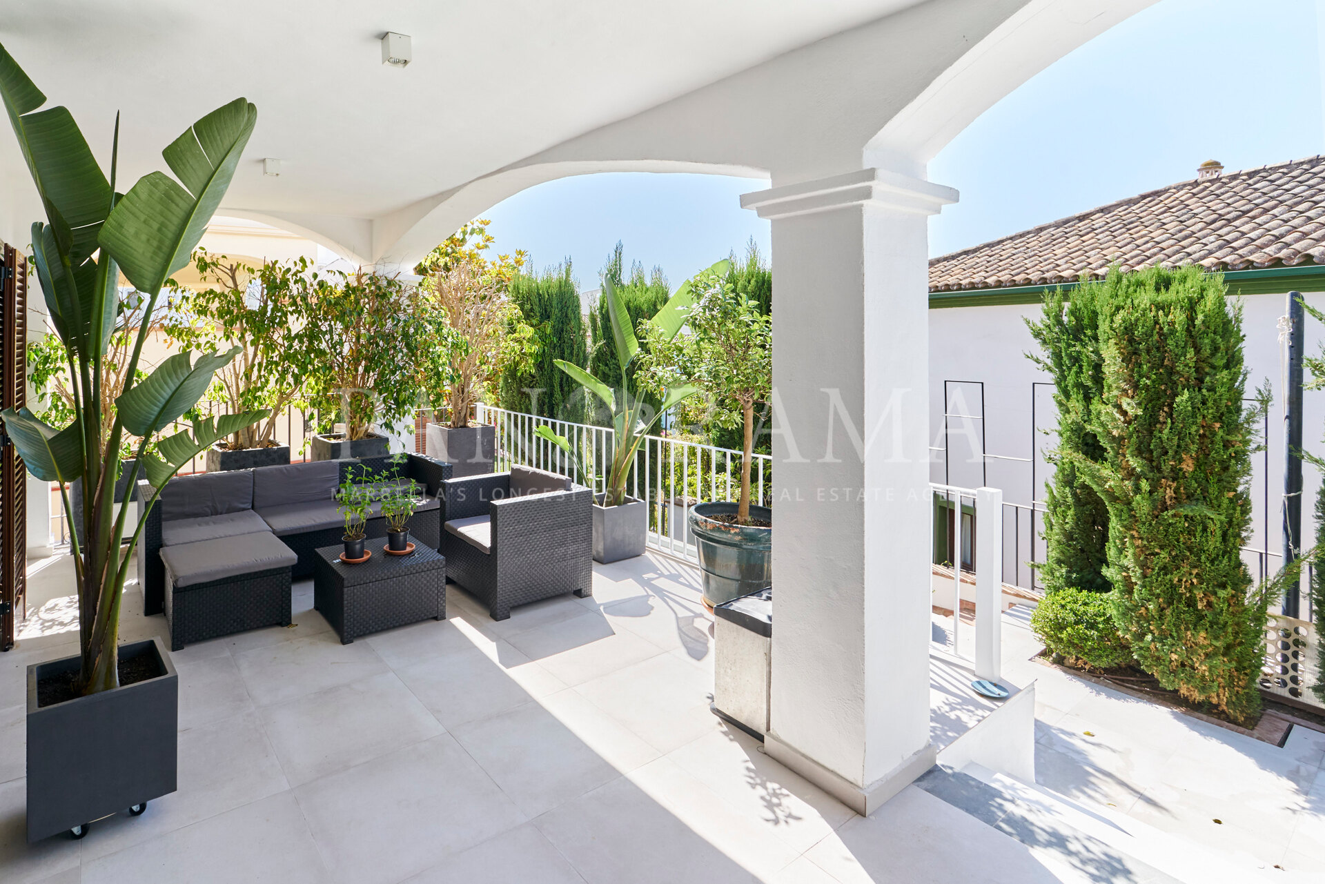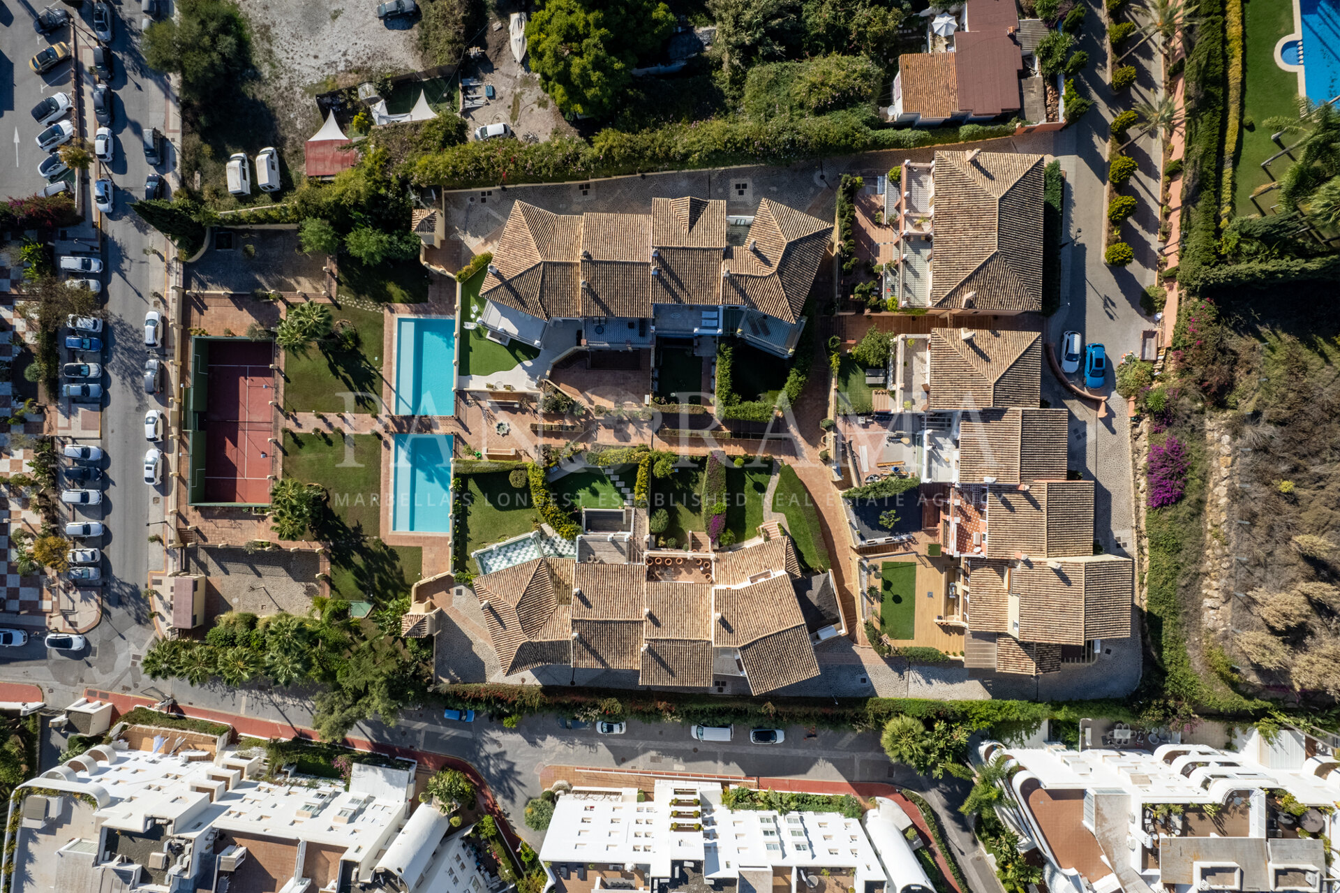 Chalet pareado de estilo andaluz ubicado en la prestigiosa zona residencial de la Milla de Oro de Marbella. Se trata de una de las propiedades de mayor tamaño dentro del exclusivo complejo en el que se encuentra, ocupando una privilegiada posición en la esquina oeste, lo que garantiza un entorno de máxima tranquilidad, privacidad y unas impresionantes vistas panorámicas al mar Mediterráneo.