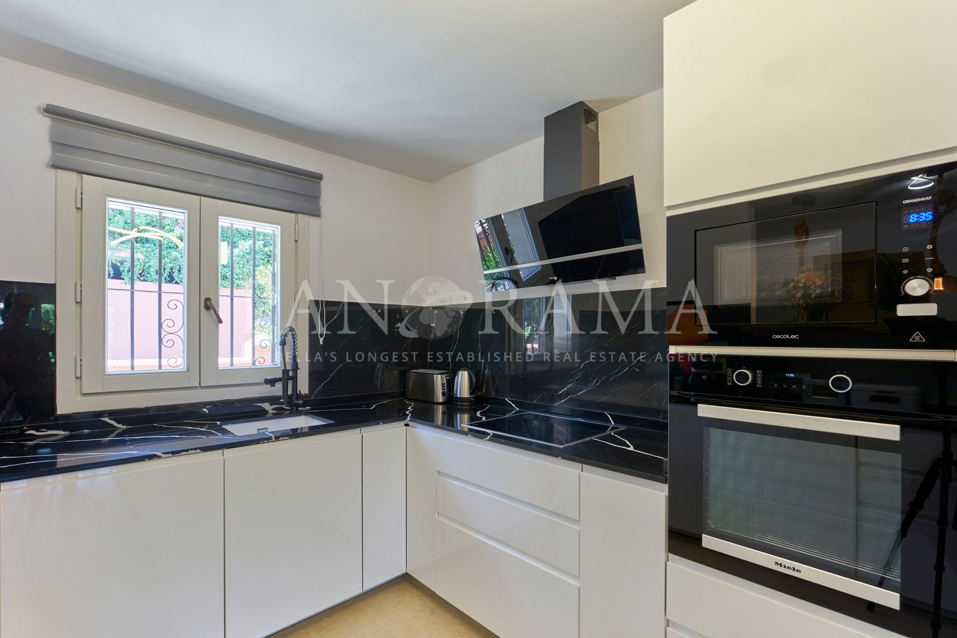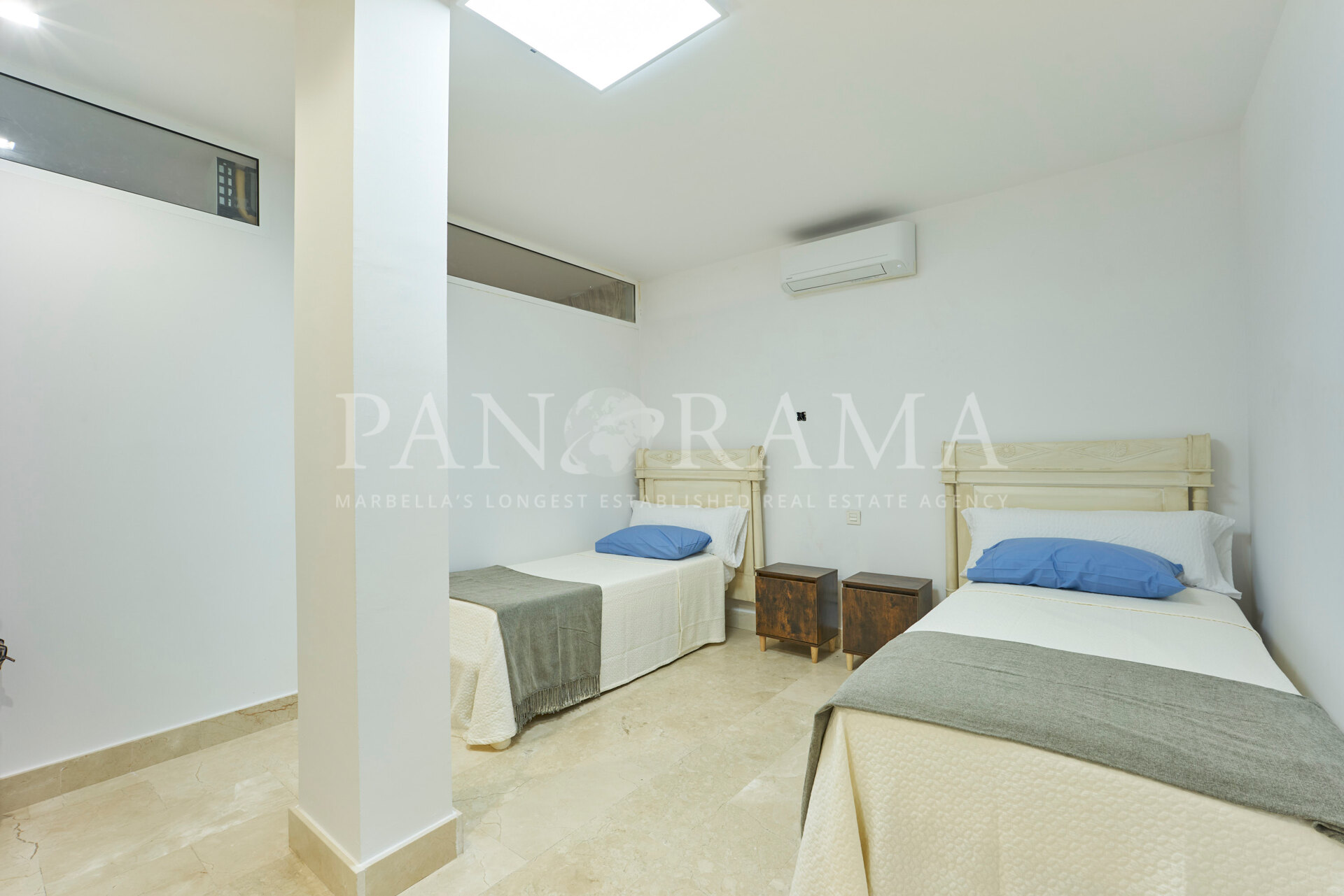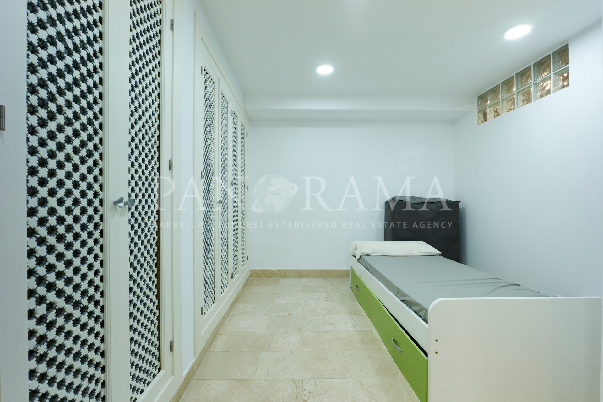 El chalet forma parte de un exclusivo complejo residencial cerrado que ofrece seguridad, privacidad y una ubicación inmejorable, a escasos minutos de la playa y del centro de Marbella. Asimismo, se encuentra a tan solo cinco minutos en coche del famoso Puerto Banús, reconocido internacionalmente por su oferta de lujo, gastronomía y ocio. La zona cuenta con una amplia variedad de servicios a su alcance, incluyendo reconocidos restaurantes, supermercados, farmacias, colegios internacionales y el emblemático Hotel Marbella Club, lo que garantiza un estilo de vida cómodo y sofisticado.