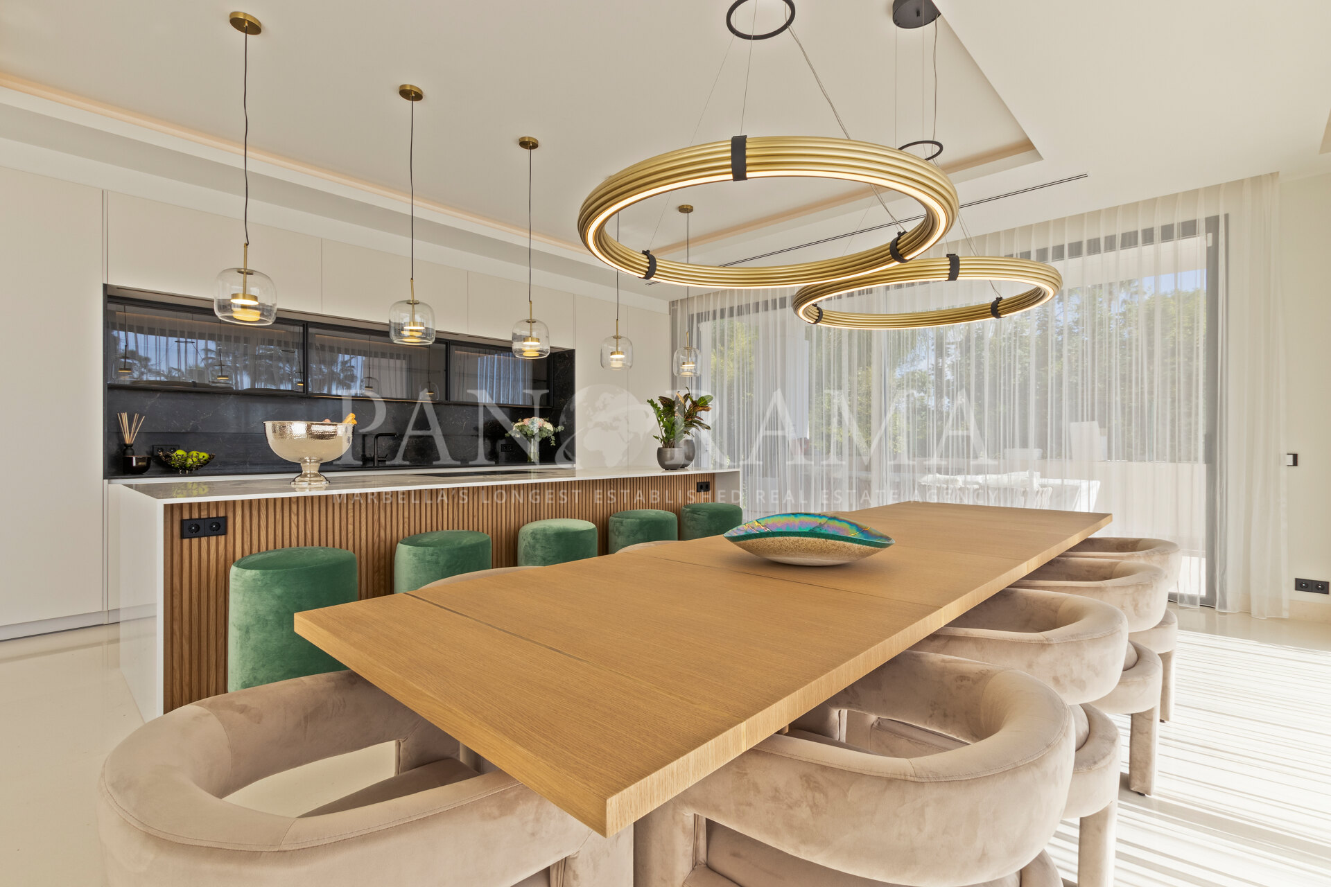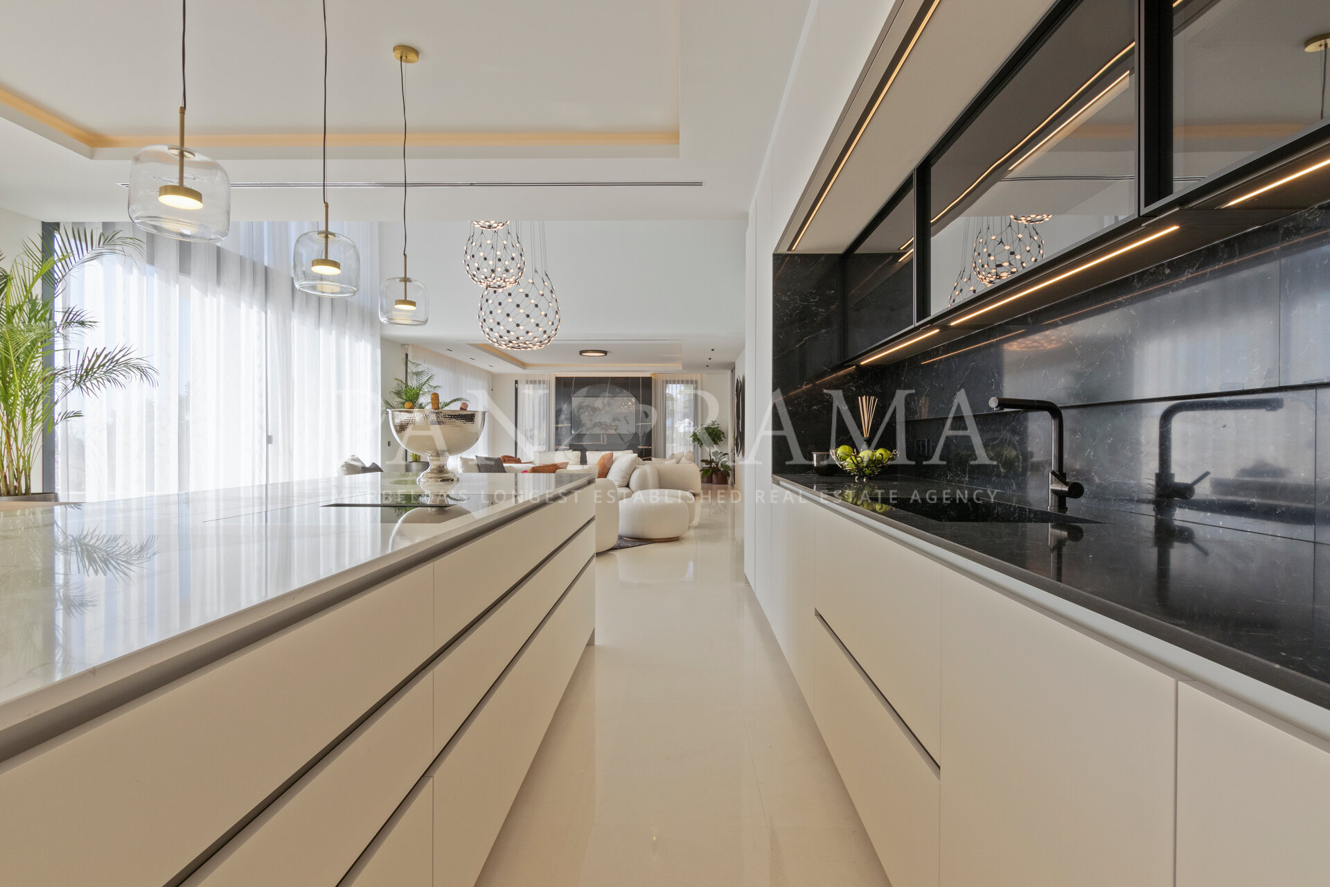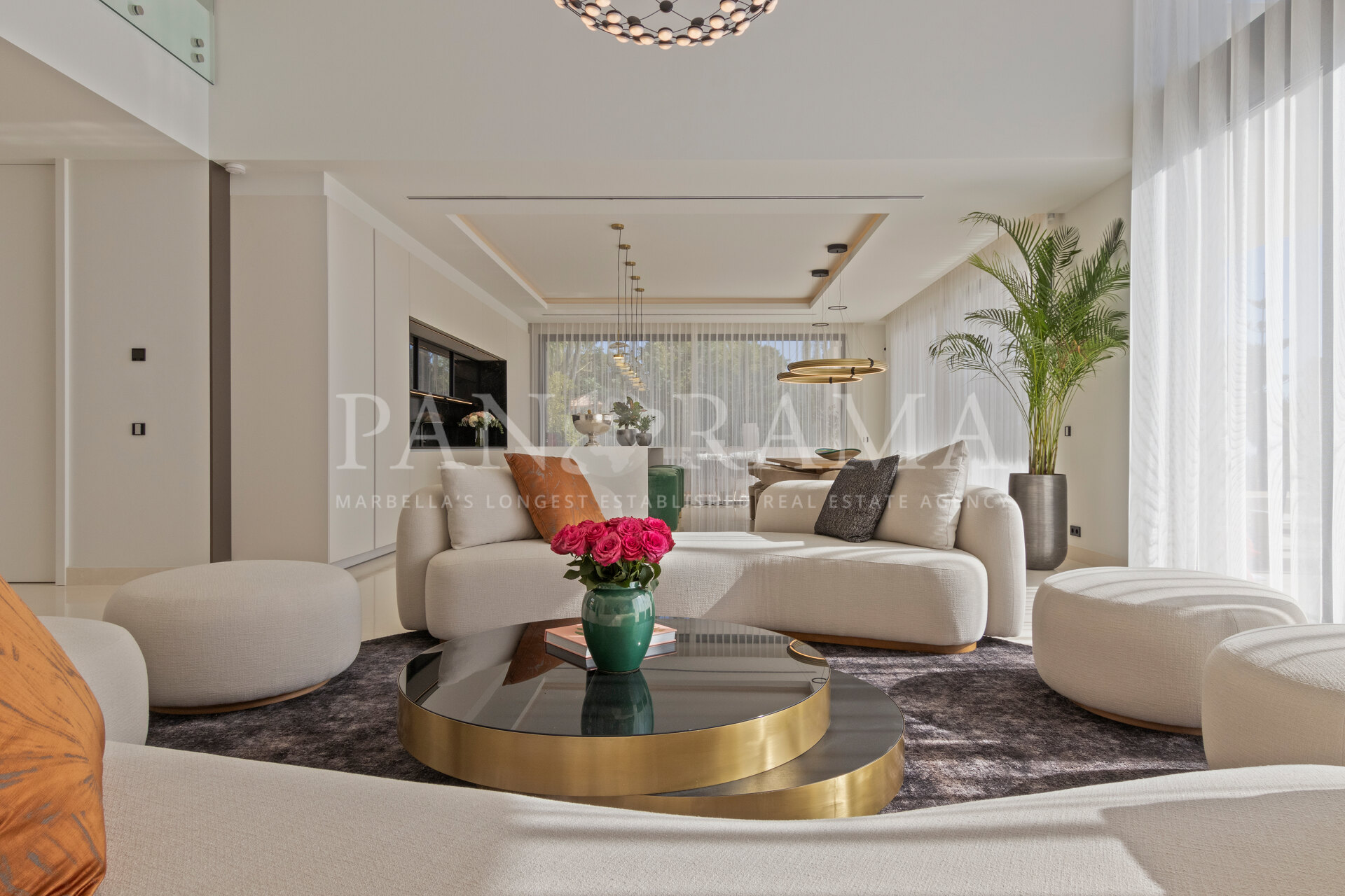 Esta villa contemporánea única, situada en la prestigiosa y segura comunidad de Sierra Blanca, representa el epítome del lujo en Marbella. Diseñada para los compradores más exigentes, la propiedad se asienta sobre una amplia parcela de 2.633 m² y se distribuye en cuatro niveles meticulosamente planificados, combinando una arquitectura impactante, acabados de primera calidad y comodidades de última generación.