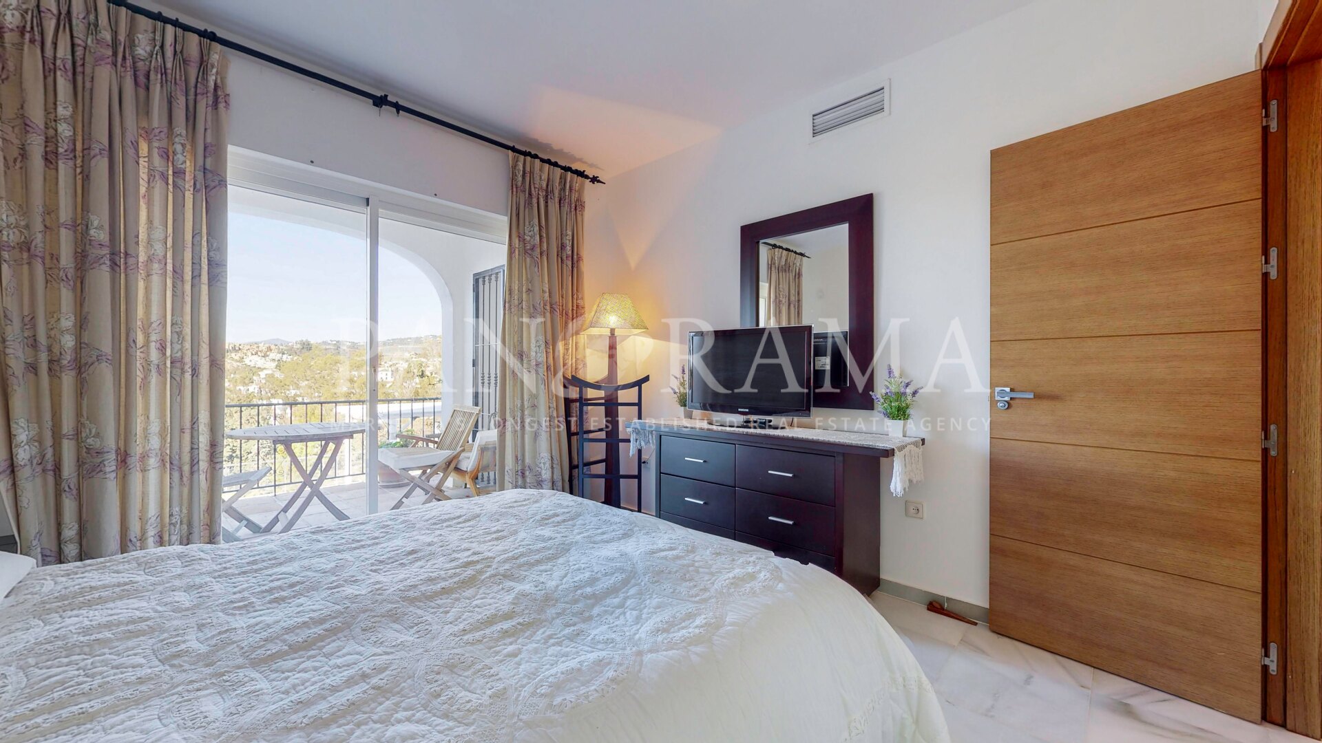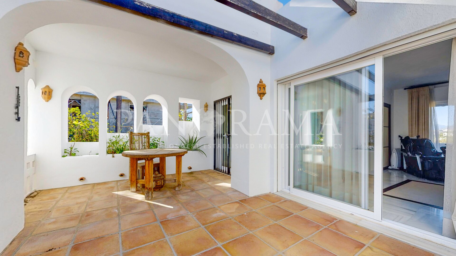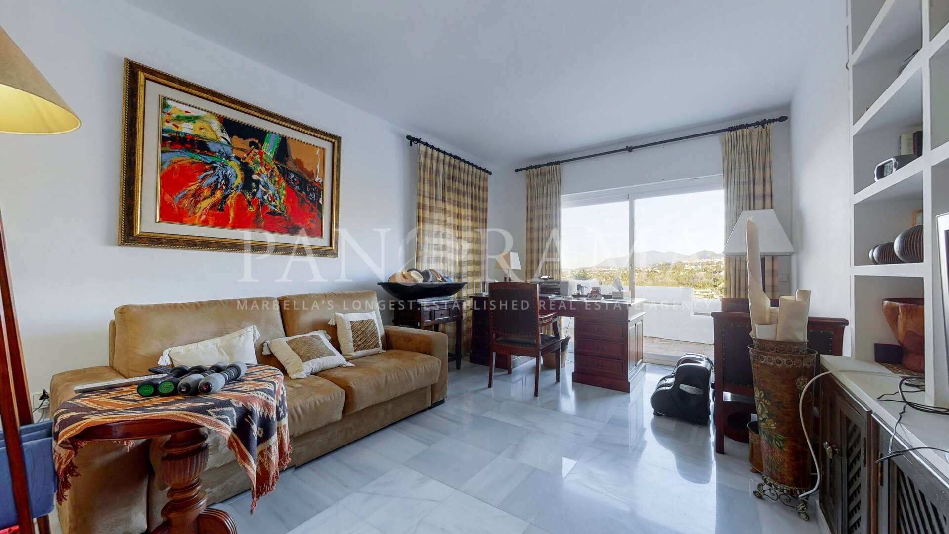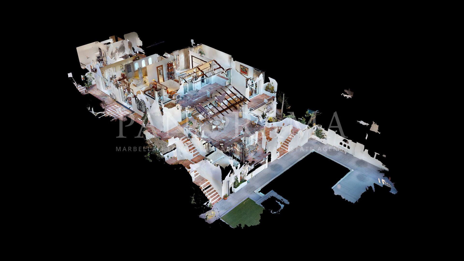 Impresionante villa de estilo mediterráneo rodeada de campos de golf y disfrutando de magníficas puestas de sol, y vistas al mar, la montaña y al campo de golf. La casa está ubicada en una hermosa zona residencial de Aloha, en el Valle del Golf de Nueva Andalucía. Con orientación suroeste, la casa principal se distribuye en 3 niveles y ofrece 7 dormitorios y 4 baños, amplias salas de estar y comedor independiente, cocina moderna con chimenea. La casa de invitados separada ofrece 1 dormitorio y 1 baño. Precioso jardín con piscina y tarima de madera, plaza de garaje. Cerca de todos los servicios ya 2 minutos en coche de Puerto Banús.