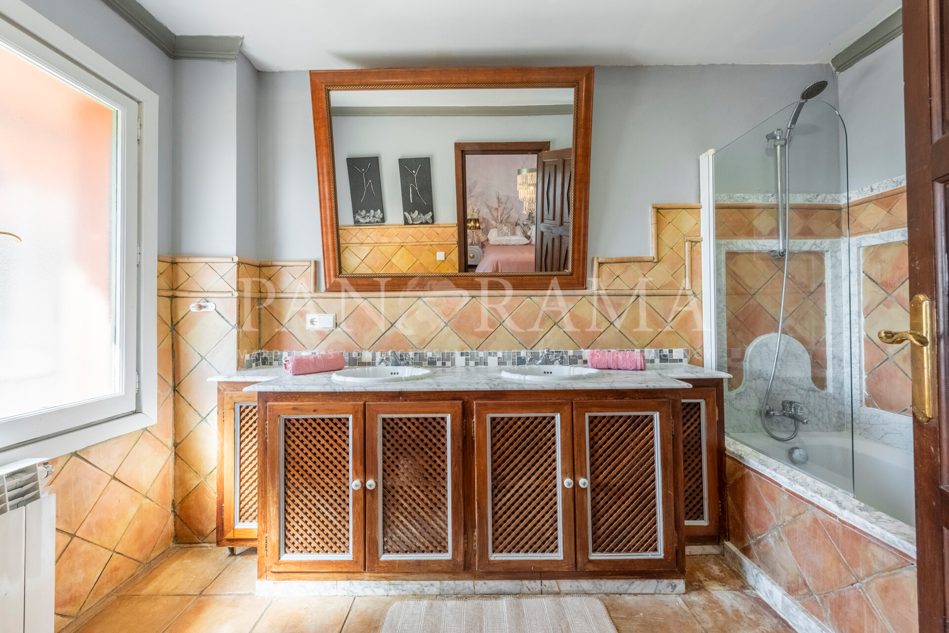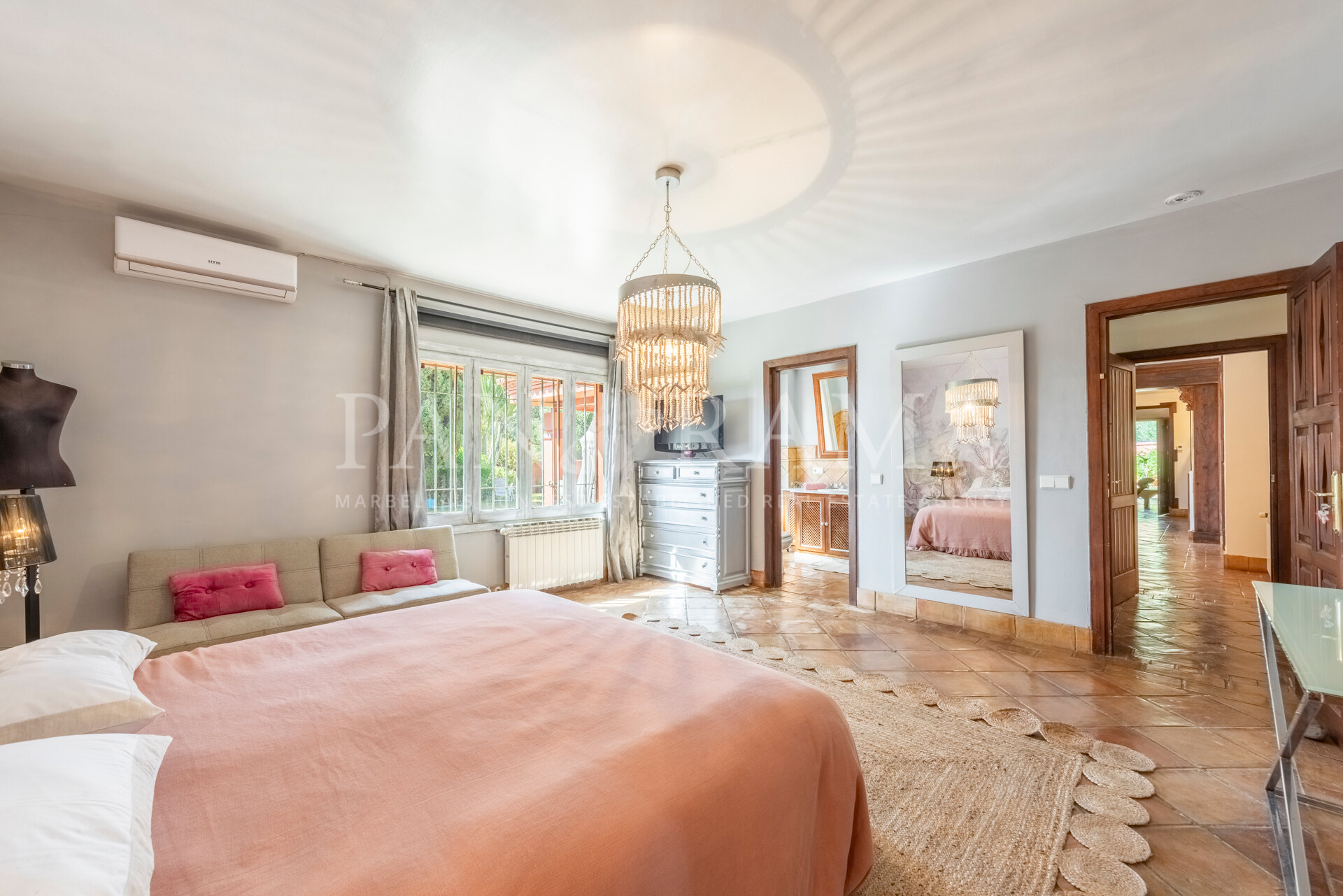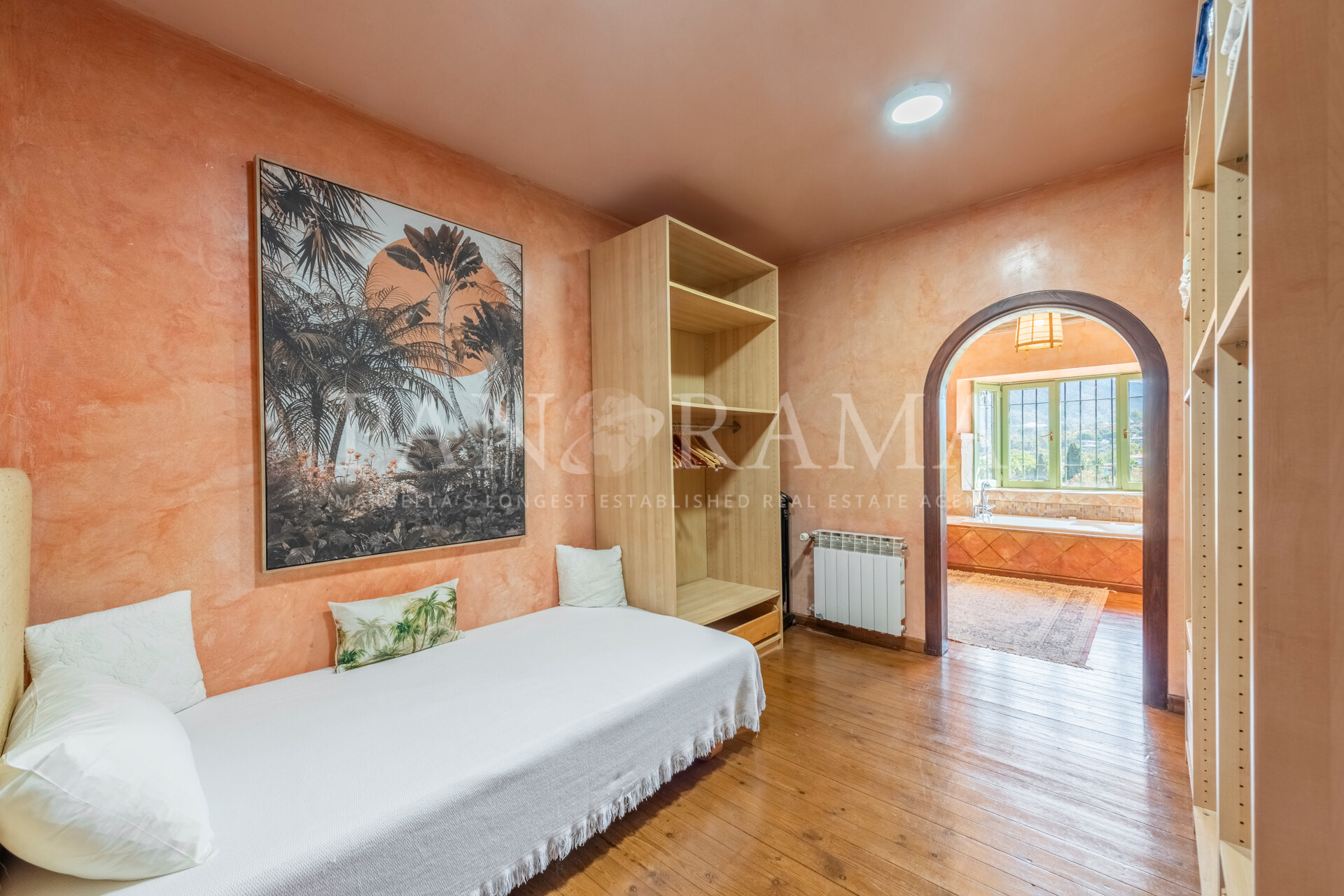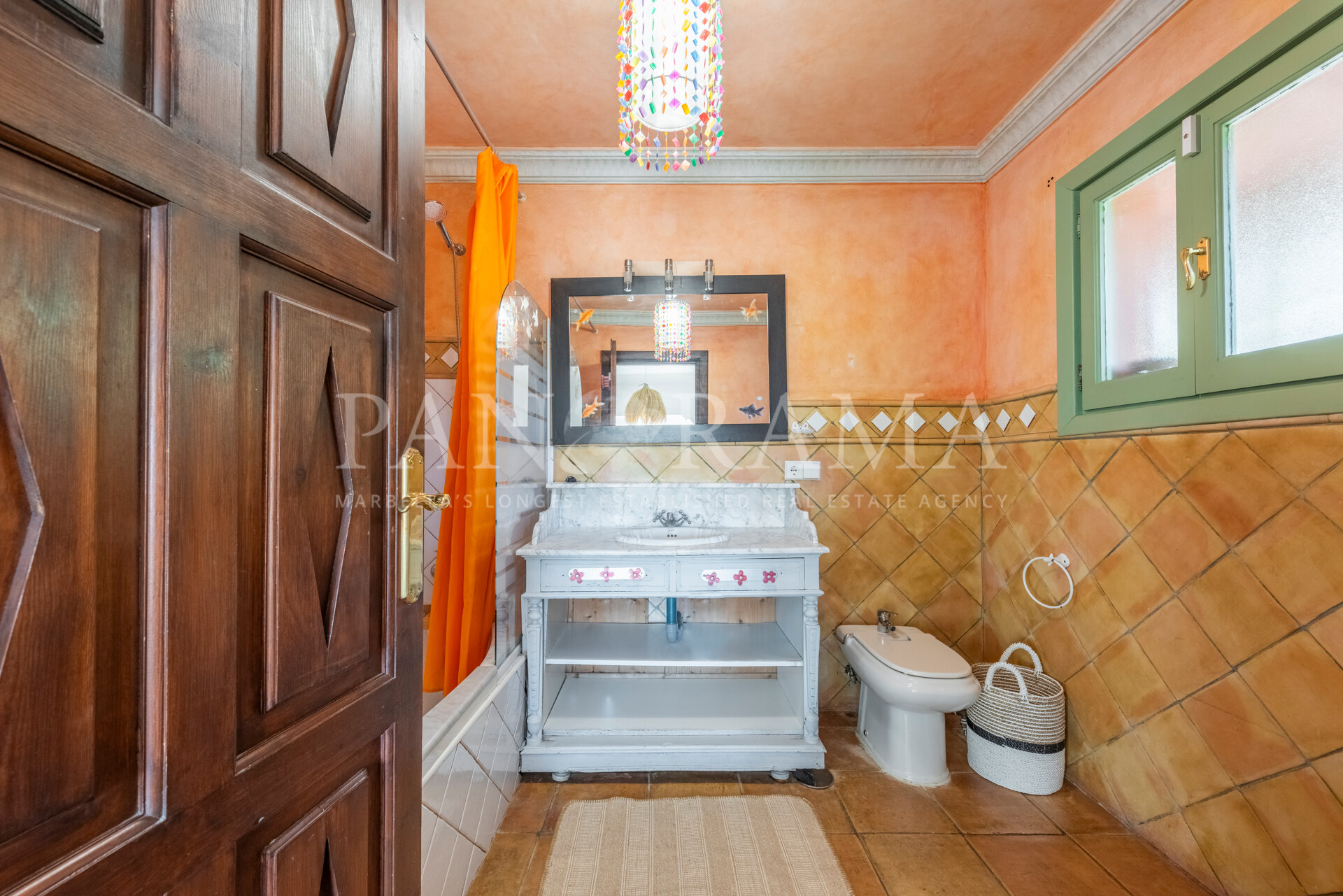 El aire acondicionado en toda la propiedad garantiza el confort durante los cálidos meses de verano, convirtiéndola en un refugio acogedor durante todo el año. La casa está rodeada de naturaleza, lo que proporciona tranquilidad. A pesar de su entorno pacífico, la propiedad se encuentra a corta distancia a pie de Puerto Banús, permitiendo un fácil acceso a las comodidades; supermercados, locales de ocio, famosos restaurantes, colegios internacionales y la playa.