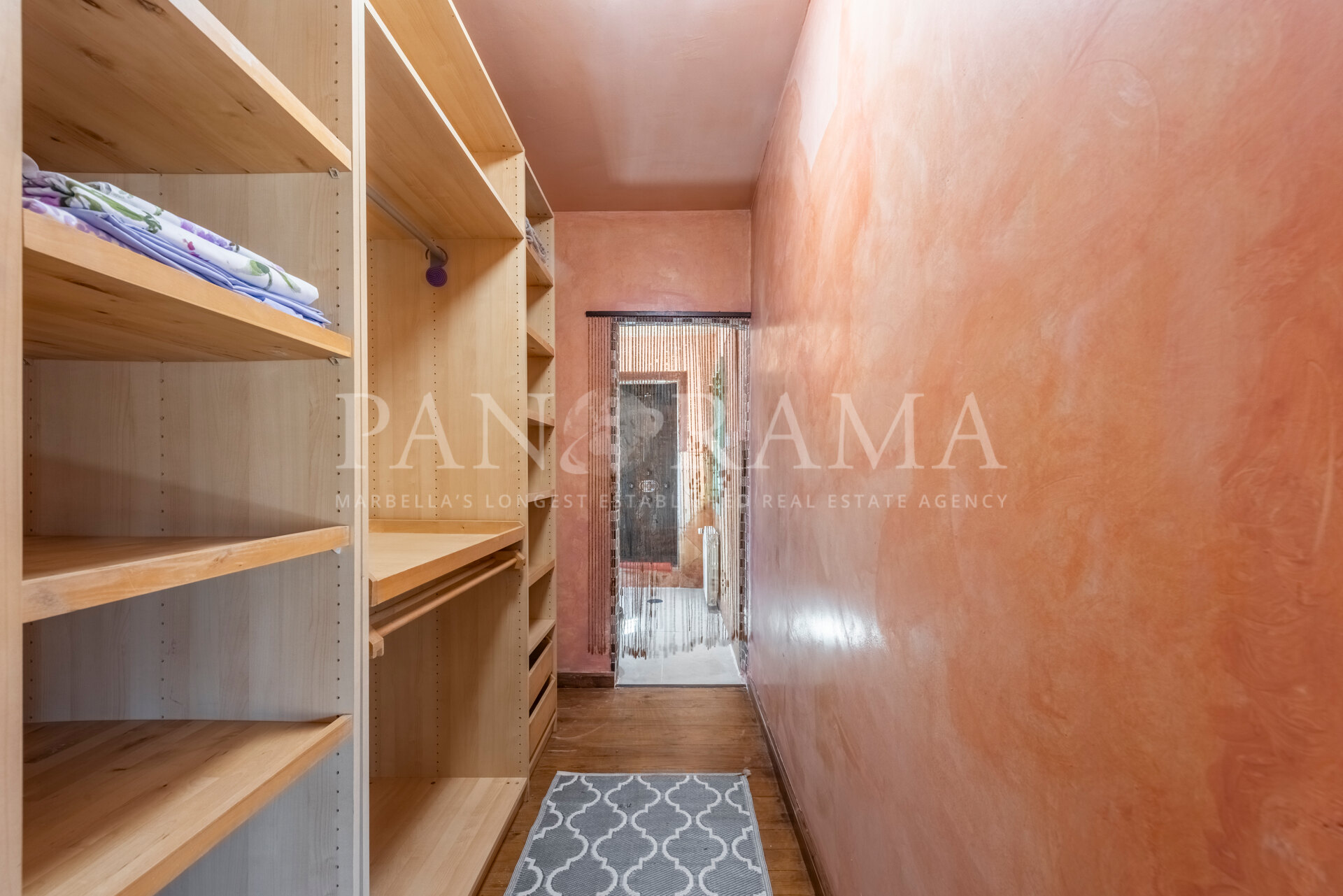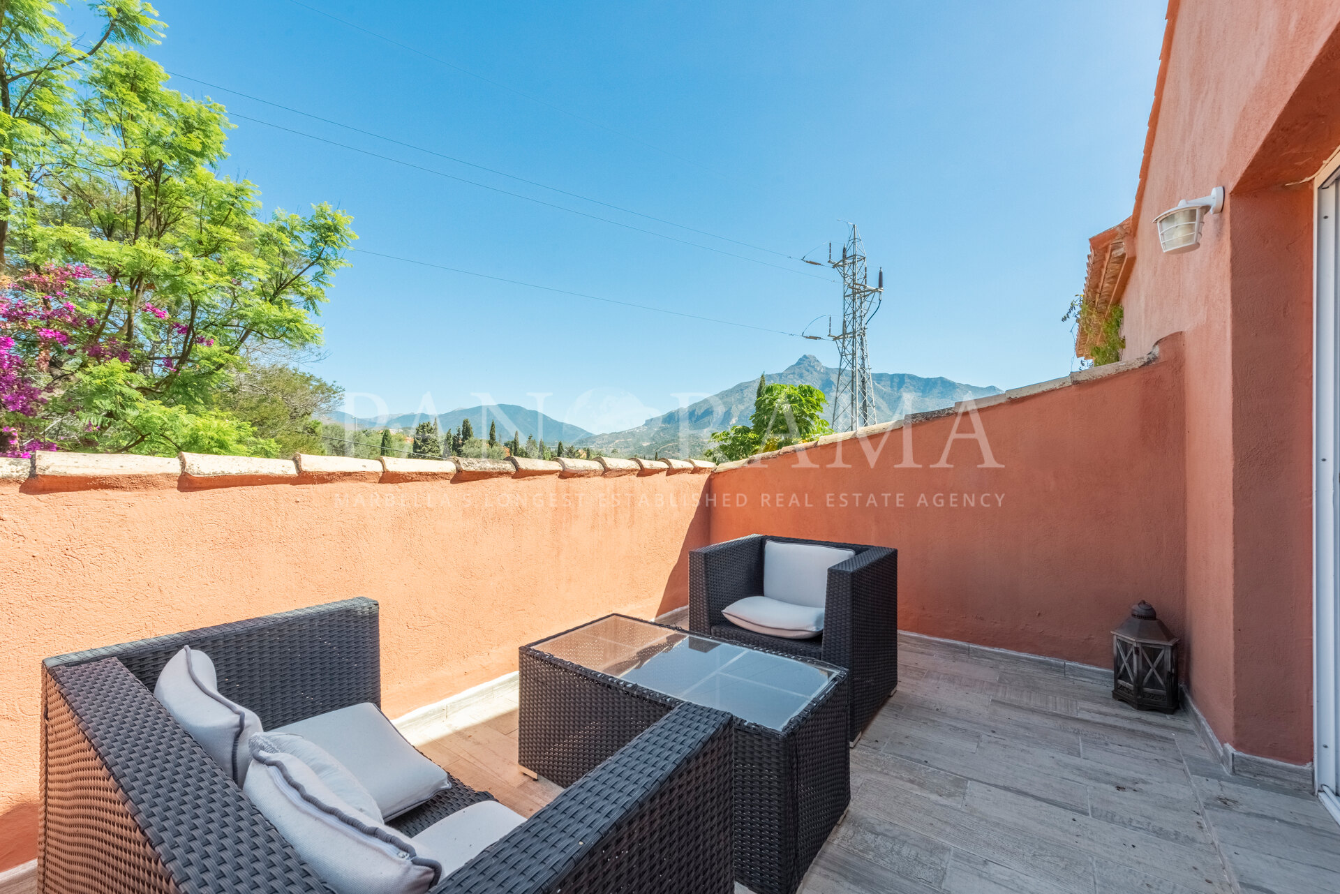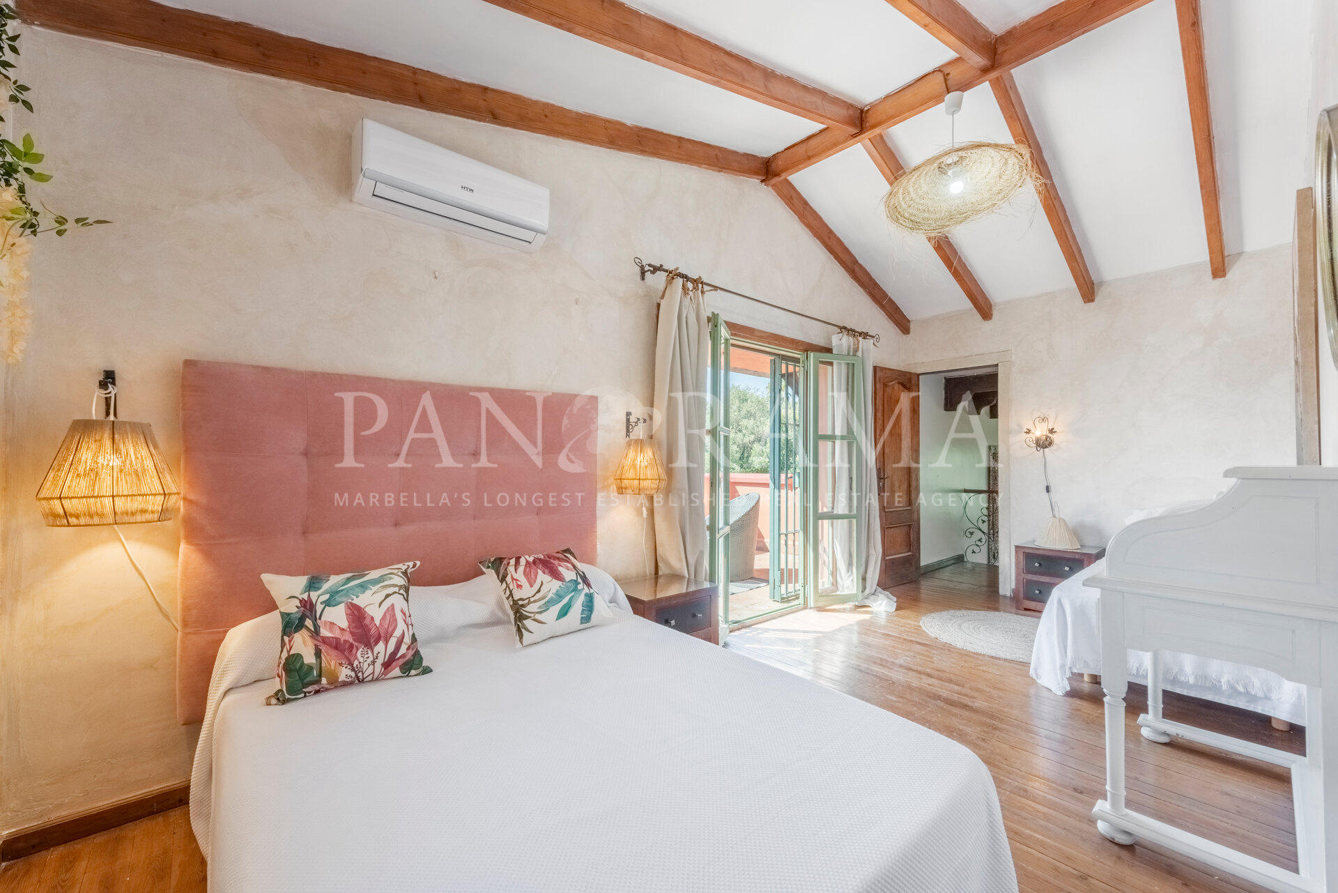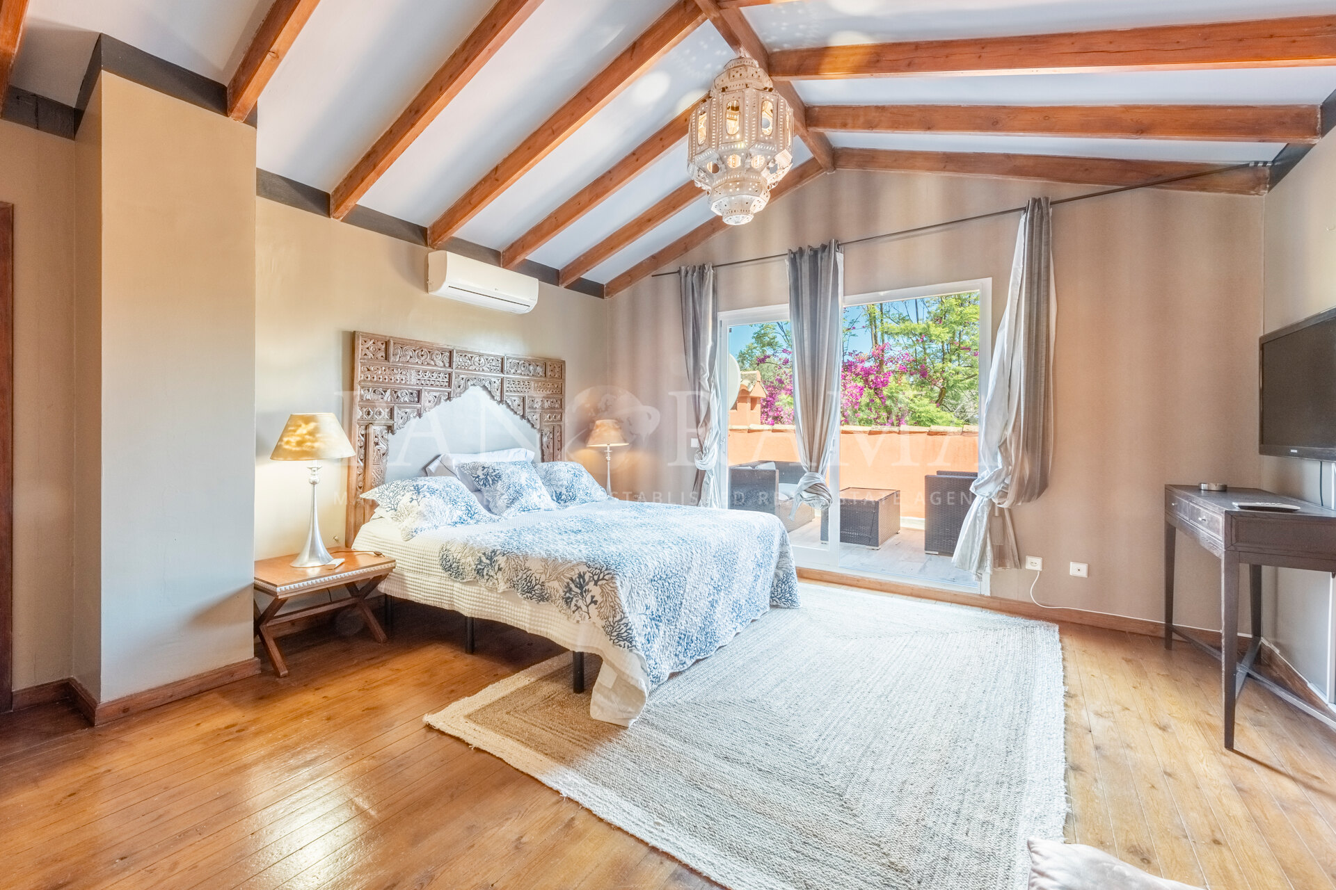 El aire acondicionado en toda la propiedad garantiza el confort durante los cálidos meses de verano, convirtiéndola en un refugio acogedor durante todo el año. La casa está rodeada de naturaleza, lo que proporciona tranquilidad. A pesar de su entorno pacífico, la propiedad se encuentra a corta distancia a pie de Puerto Banús, permitiendo un fácil acceso a las comodidades; supermercados, locales de ocio, famosos restaurantes, colegios internacionales y la playa.