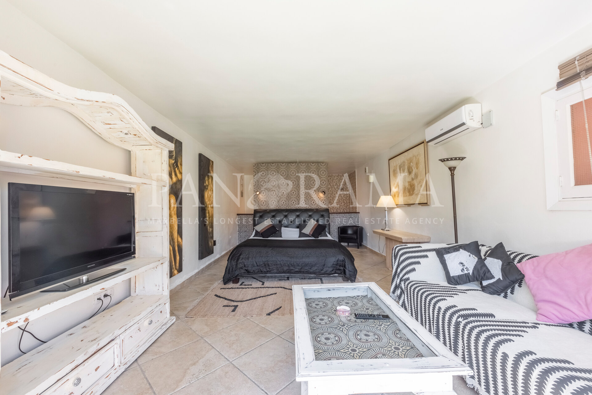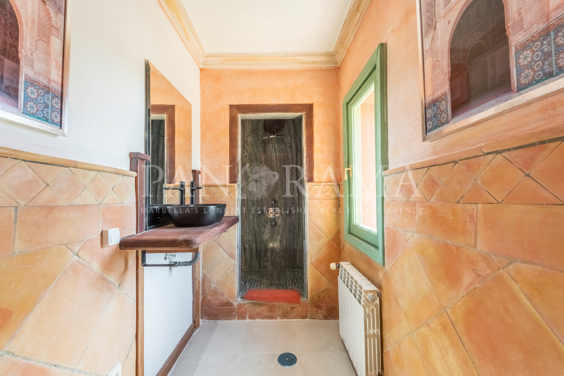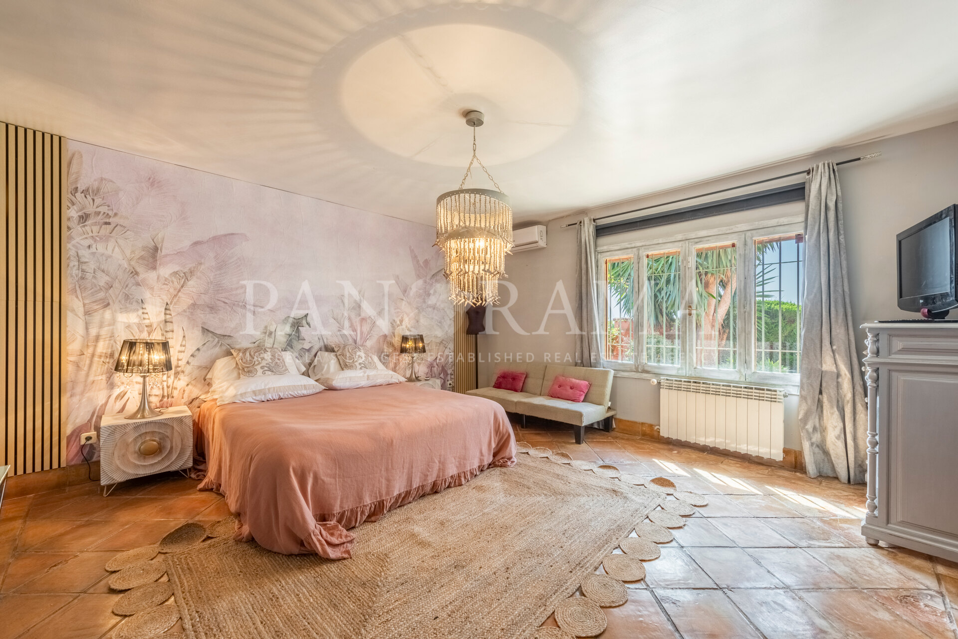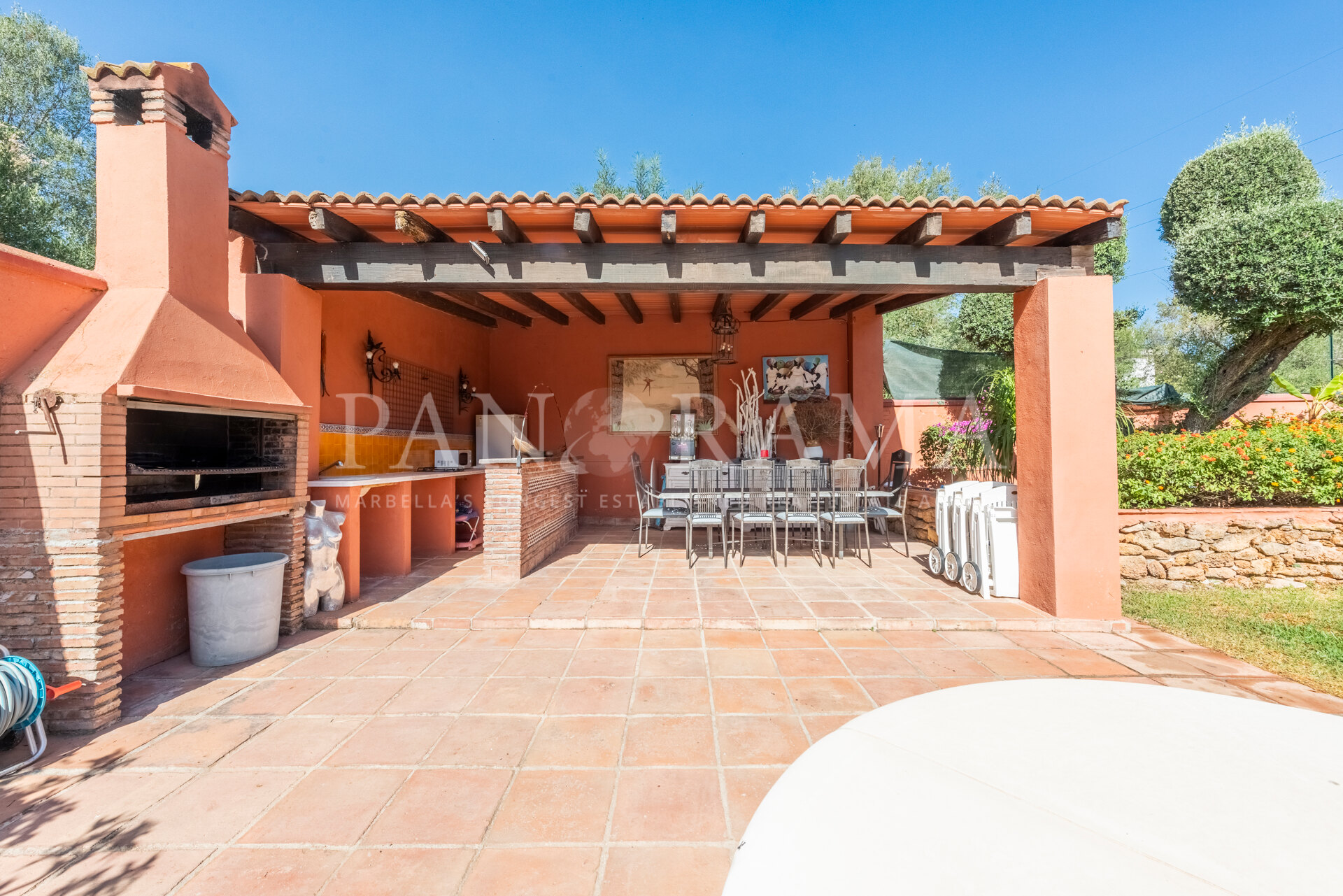 El aire acondicionado en toda la propiedad garantiza el confort durante los cálidos meses de verano, convirtiéndola en un refugio acogedor durante todo el año. La casa está rodeada de naturaleza, lo que proporciona tranquilidad. A pesar de su entorno pacífico, la propiedad se encuentra a corta distancia a pie de Puerto Banús, permitiendo un fácil acceso a las comodidades; supermercados, locales de ocio, famosos restaurantes, colegios internacionales y la playa.