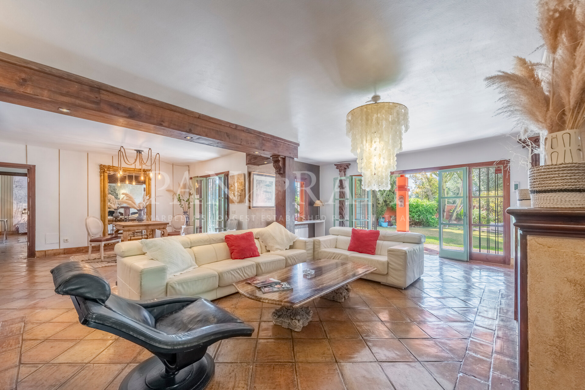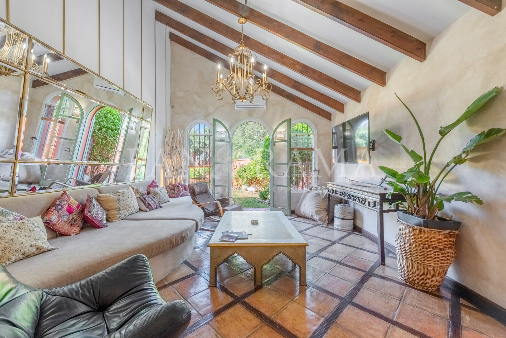 La propiedad cuenta con un extenso jardín, un verdadero oasis de paz y belleza natural. Los espacios exteriores, llenos de personalidad, ofrecen múltiples áreas para disfrutar del clima mediterráneo. Hay un porche cubierto, ideal para tardes de ocio, y varias zonas de comedor al aire libre perfectas para cenas al fresco. El jardín también dispone de una cocina al aire libre, convirtiéndolo en un excelente lugar para entretener a invitados y disfrutar de comidas bajo el cielo abierto.