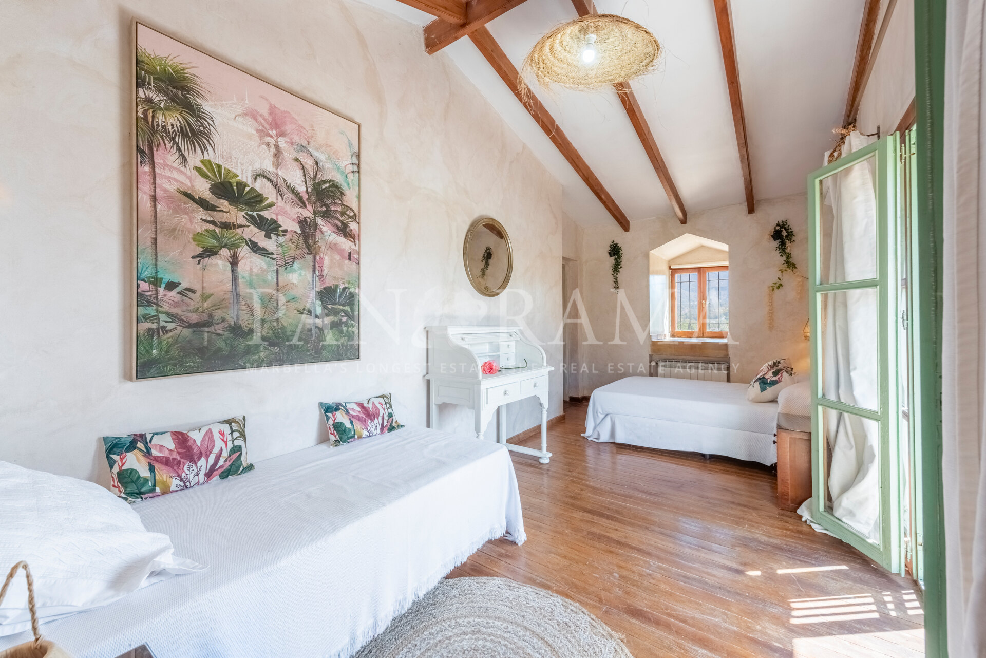 La cocina es un espacio encantador y perfecto para los amantes de la gastronomía. Cuenta con una pintoresca área de desayuno donde disfrutar del café matutino mientras se respira la serenidad del entorno. Bien equipada y cuidadosamente diseñada, la cocina combina funcionalidad con un atractivo encanto rústico. La villa cuenta con tres grandes dormitorios, dos para niños y una suite adicional con cama doble y con acceso separado desde el jardín.