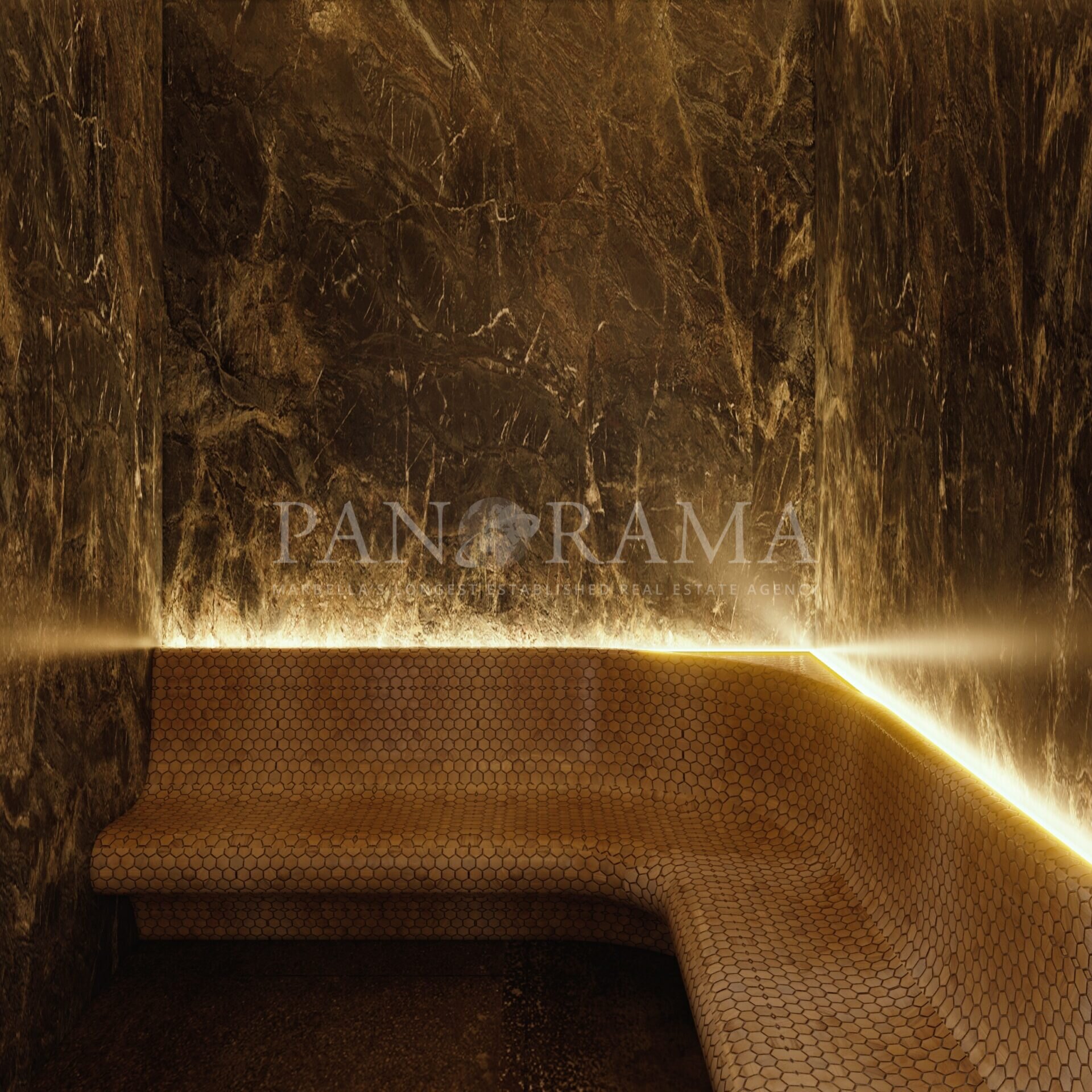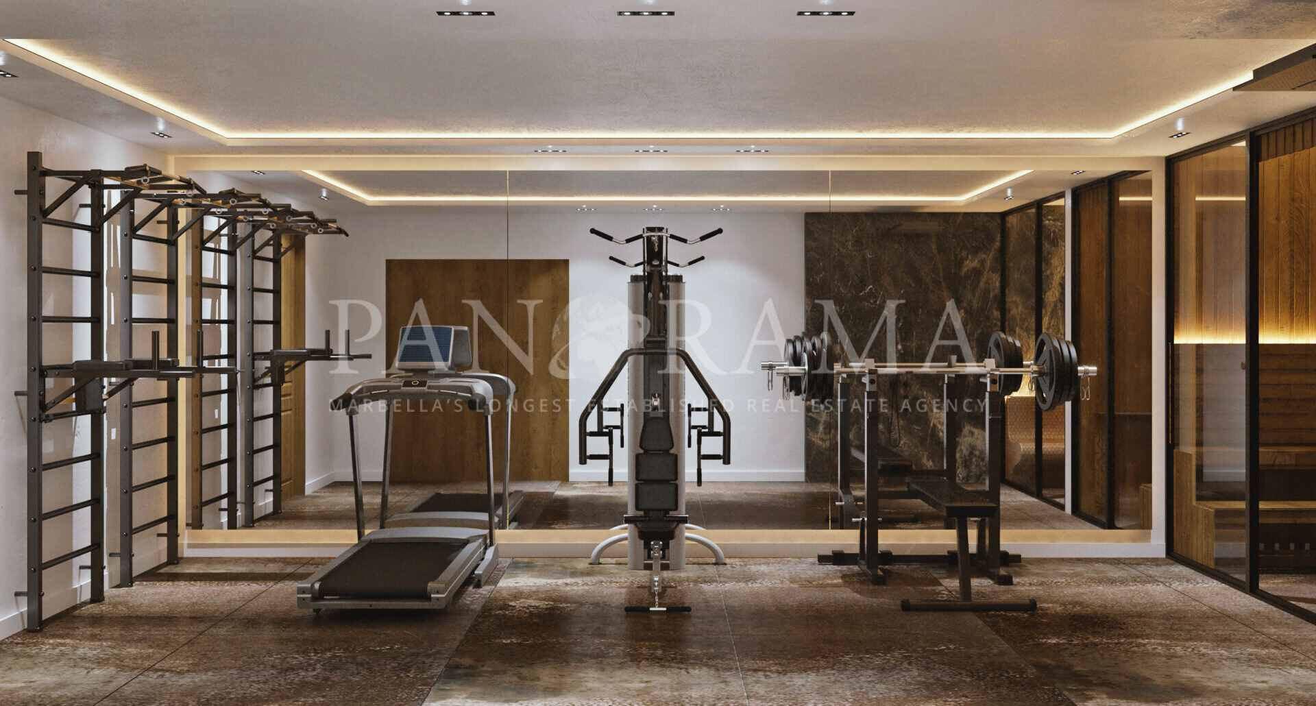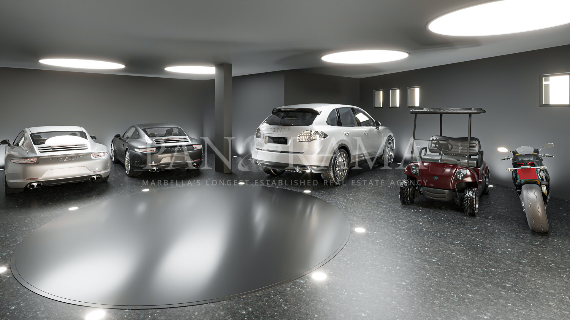 Amplio sótano de más de 300 metros cuadrados, con techos altos de 3 metros, diseñado para el entretenimiento y el disfrute. Aquí, encontrará un amplio garaje para varios vehículos, una entrada con una plataforma giratoria para los coches, un lujoso spa equipado con sauna y baño de vapor, un moderno gimnasio cubierto y un cine en casa, todos con acceso directo al exquisito jardín.