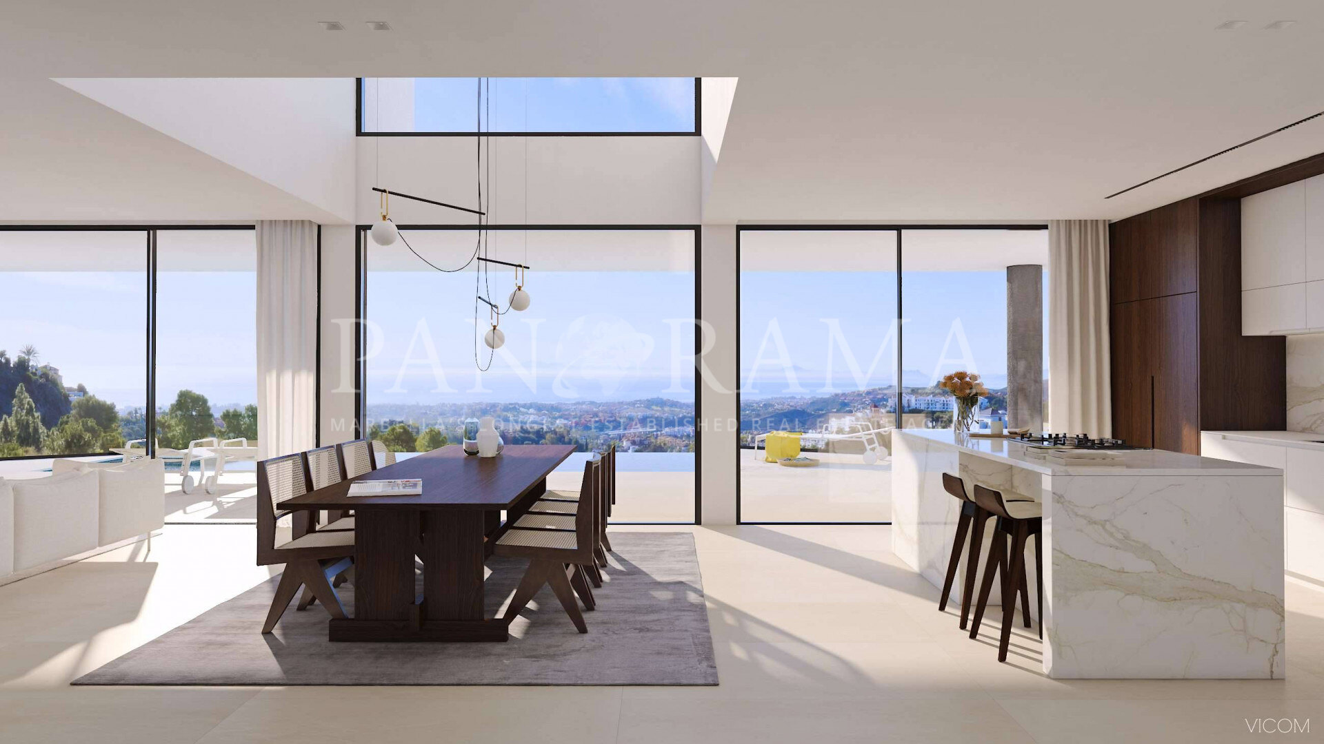 Nouvelle promotion de 6 villas modernes avec vues sur la mer depuis le rez-de-chaussée situées à Benahavís, à côté de la route de Ronda, à 15 minutes du centre de Marbella et de la plage. Il y a deux types de distribution: une sur 2 niveaux et l“autre sur 3 niveaux, avec un petit sous-sol avec garage pour deux voitures. Elles ont toutes 4 chambres à coucher et 3 salles de bain, toilettes et magnifiques terrasses. Les superficies des parcelles varient de 406 m2 à 1.327 m2 et les villas ont toutes une superficie d“environ 278 m2 construits plus 70 m2 de garage et des terrasses d“entre 114 m2 et 163 m2. Une excellente opportunité d“acquérir une villa moderne avec vues sur la mer à un prix très compétitif.