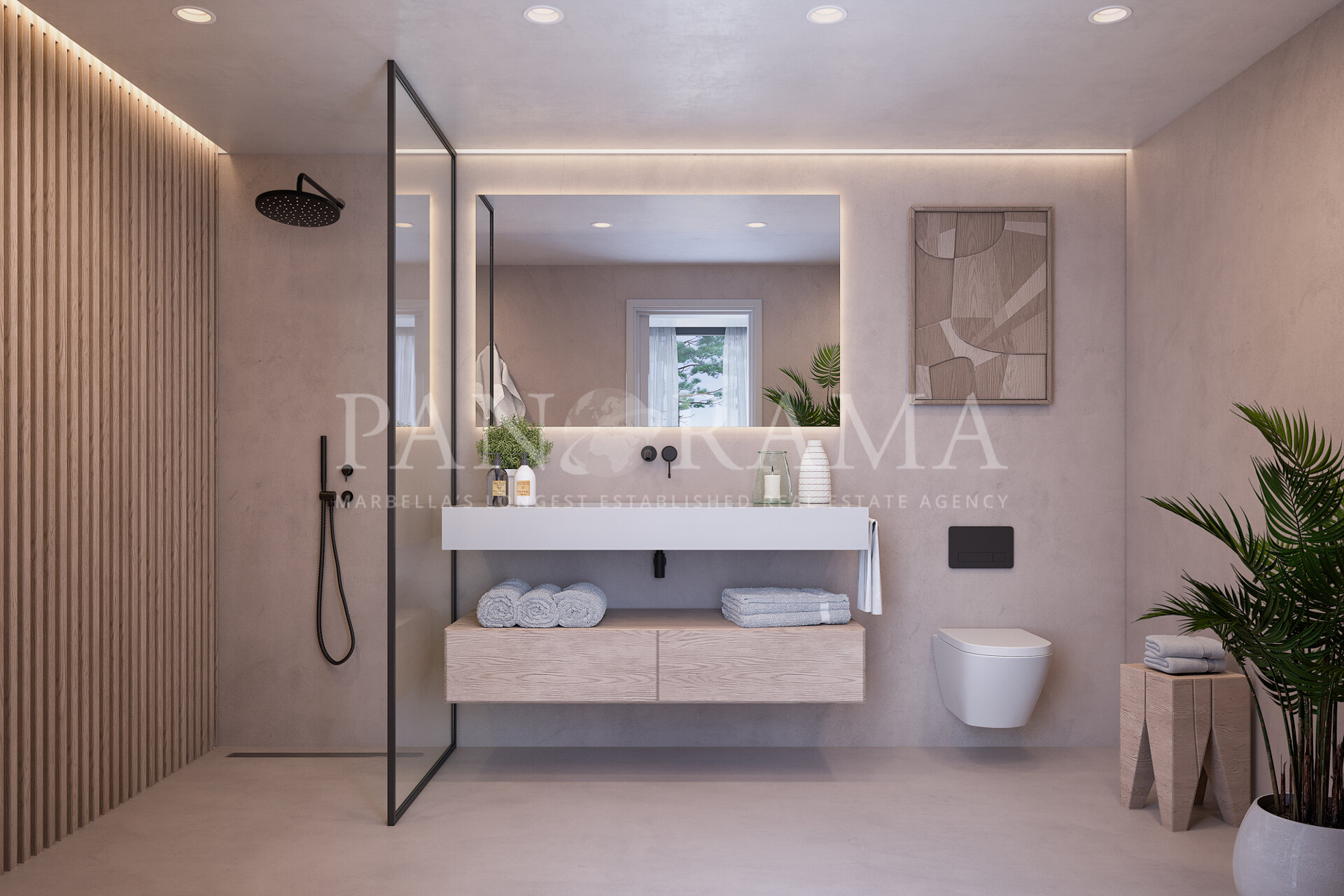 Tous les appartements et villas sont entièrement équipés et fonctionnels avec le même mobilier de design intérieur qui allie esthétique et praticité. Chaque unité est conçue pour offrir confort et style, en utilisant des matériaux de haute qualité et un design moderne. La disposition des espaces intérieurs est inspirée par le style de vie de Marbella, apportant de la lumière naturelle dans chaque recoin. Profitez de vastes espaces de vie, de cuisines entièrement équipées et de la liberté de vous sentir chez vous tout en bénéficiant des services hôteliers. Préparez et savourez vos repas à votre convenance, sans aucune restriction sur les horaires des repas, et détendez-vous en sachant que tout est pris en charge, du concierge et du service en chambre au ménage et à l’assistance personnalisée.