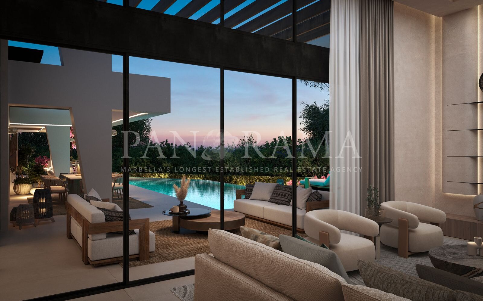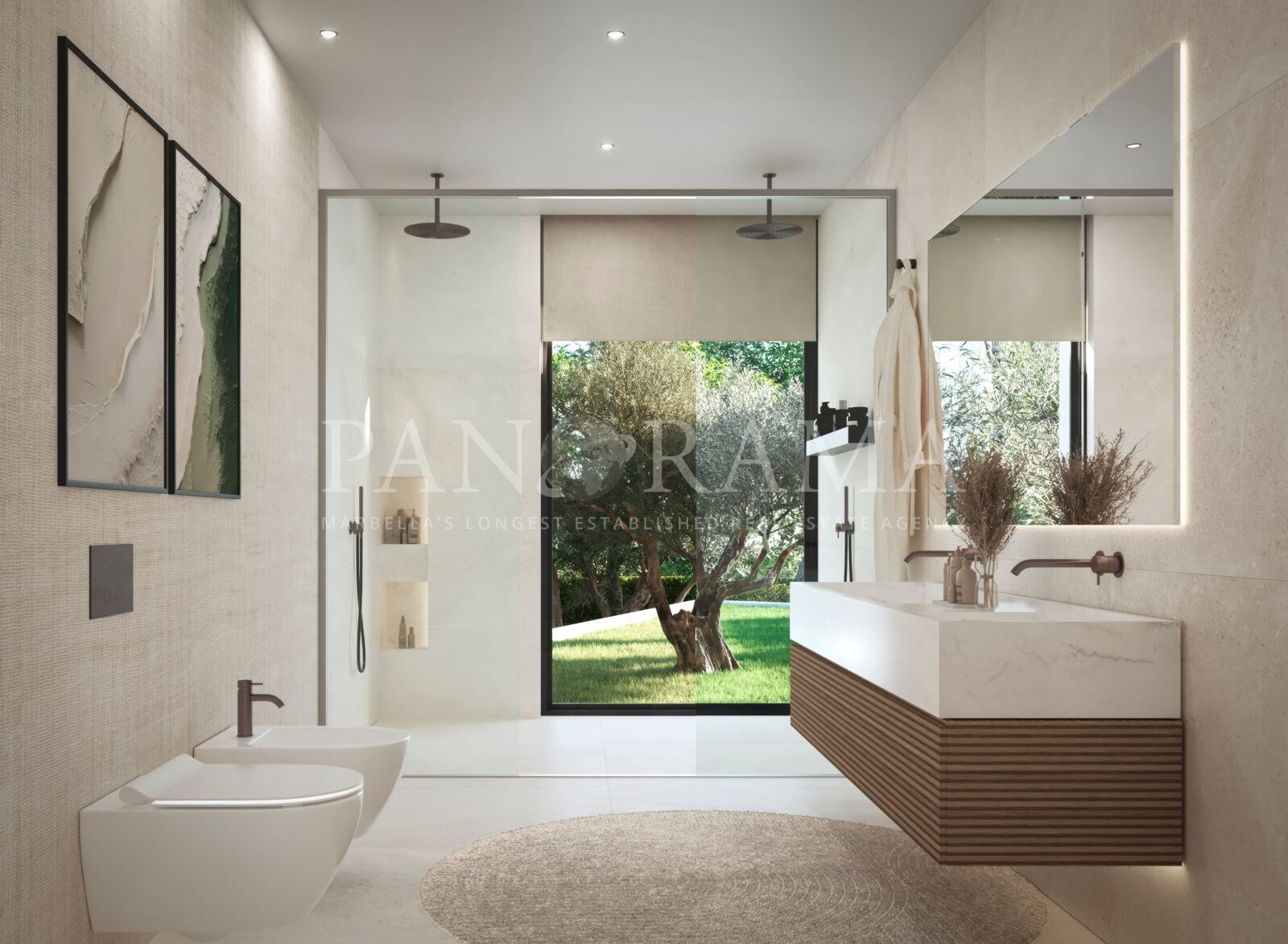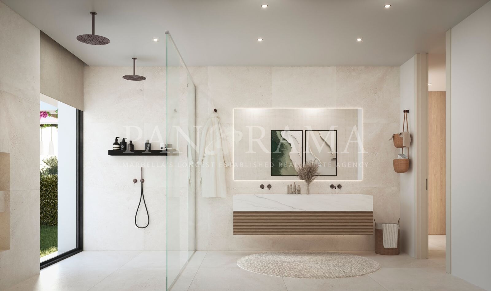 Située dans le prestigieux développement Marein Natura, au cœur de la très recherchée Vallée du Golf de Nueva Andalucía à Marbella, la villa bénéficie de la proximité de certains des meilleurs parcours de golf de la région, dont le Los Naranjos Golf Club, Las Brisas, Aloha Golf et La Quinta. Malgré son cadre paisible et verdoyant, toutes les commodités nécessaires — écoles internationales, commerces, restaurants gastronomiques et plages de sable — se trouvent à quelques minutes en voiture, y compris la célèbre marina de Puerto Banús.