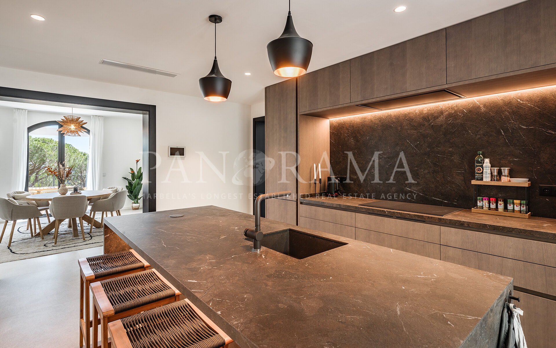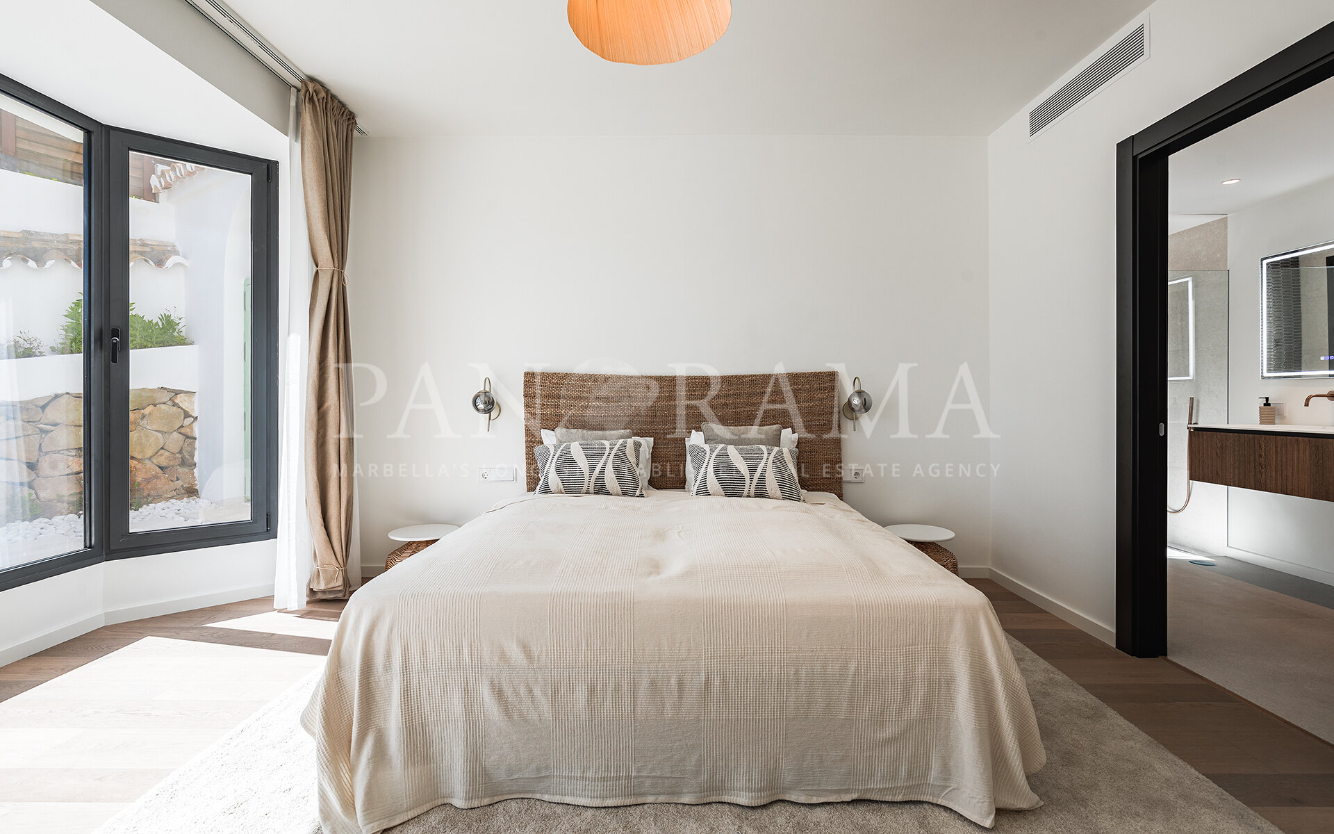 Située sur un terrain surélevé orienté sud à sud-est, la villa bénéficie d’une abondante lumière naturelle et de vues panoramiques spectaculaires sur la mer Méditerranée. Sa position privilégiée garantit intimité et connexion constante avec le paysage naturel environnant, tout en étant à seulement quelques minutes de Marbella, San Pedro de Alcántara et du littoral.