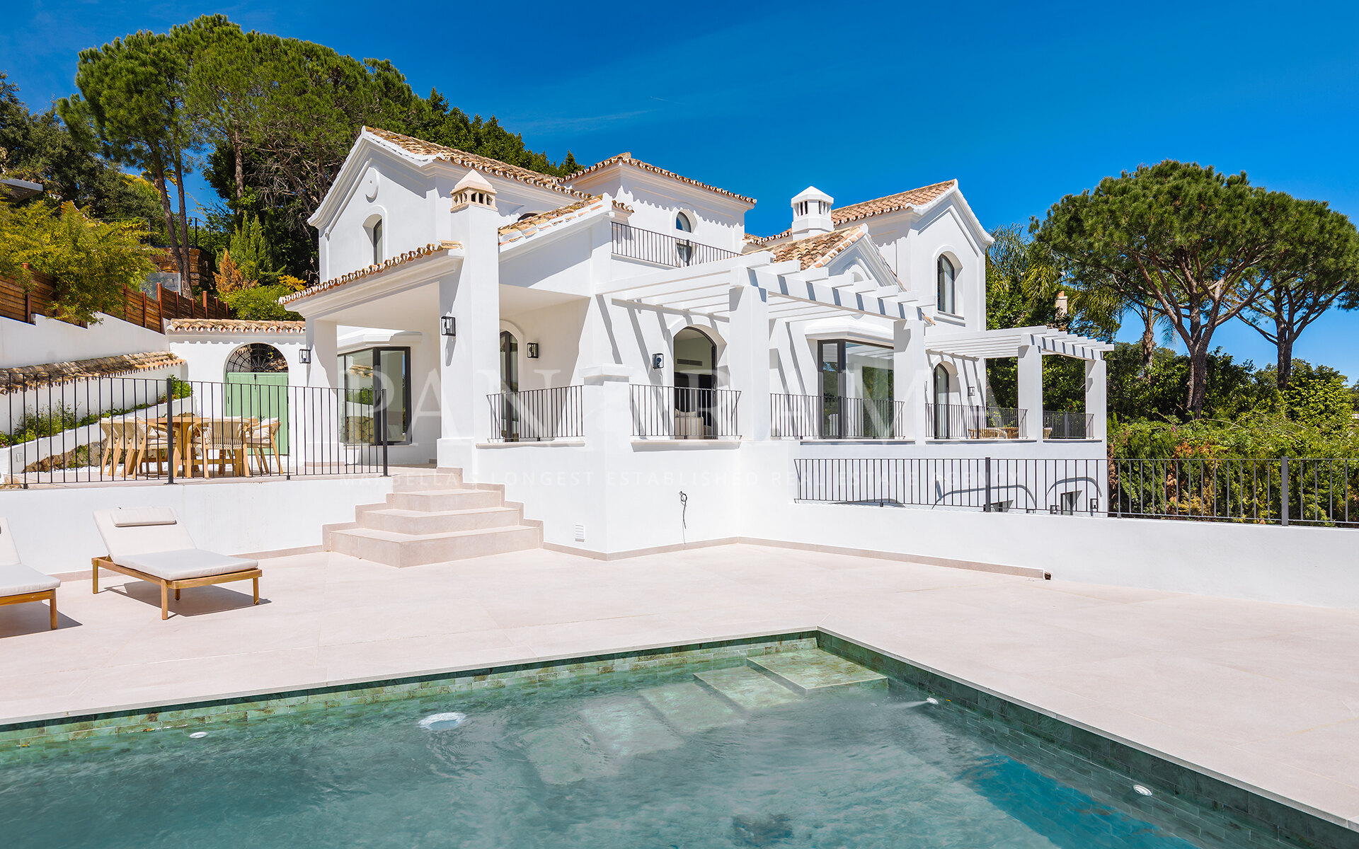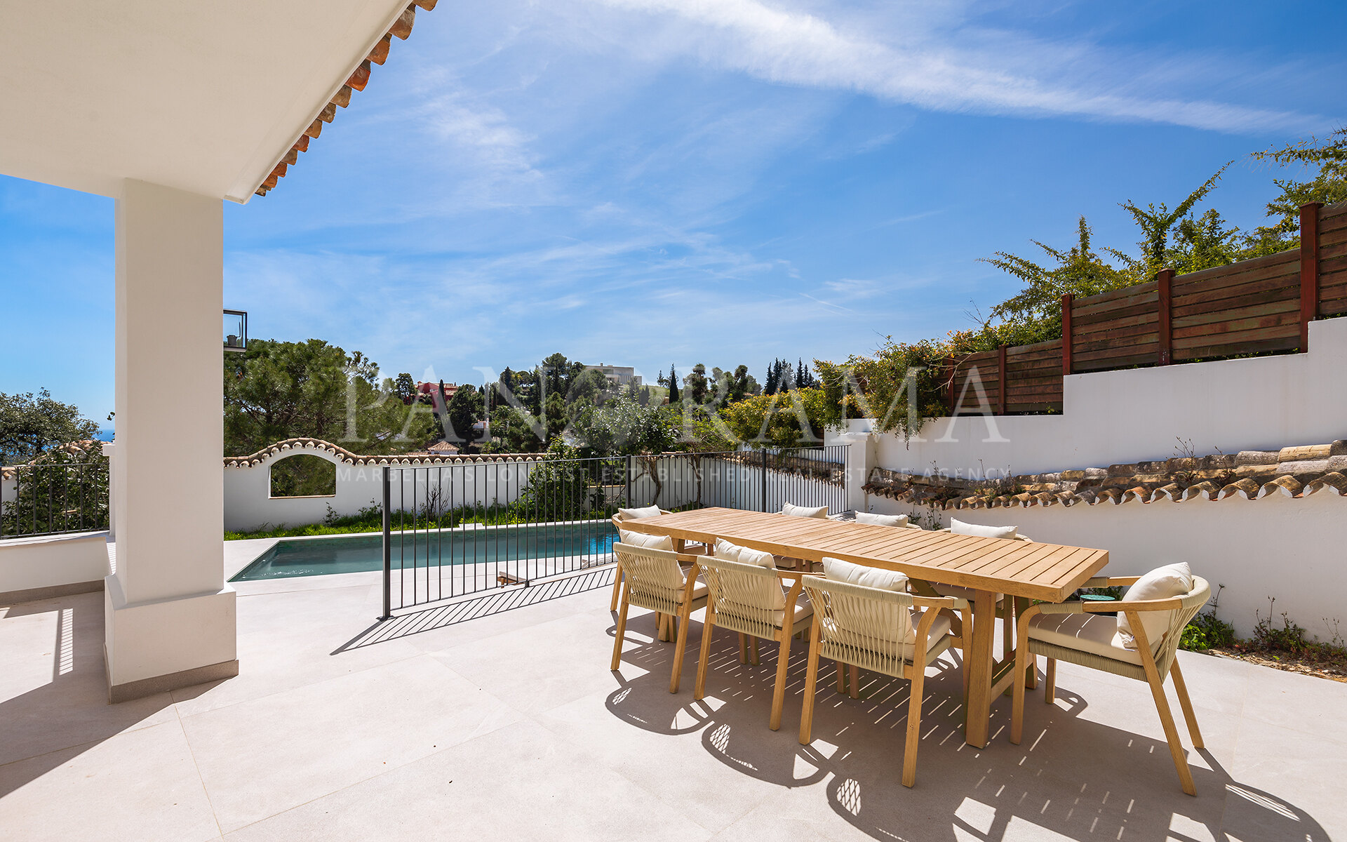 À l’extérieur, le charme se poursuit. Entourée de jardins matures et paysagers, la piscine privée et les terrasses offrent des espaces idéaux pour se détendre, recevoir ou simplement profiter de la sérénité du style de vie andalou. La villa bénéficie également d’une grande allée et d’un garage sécurisé pour deux voitures.