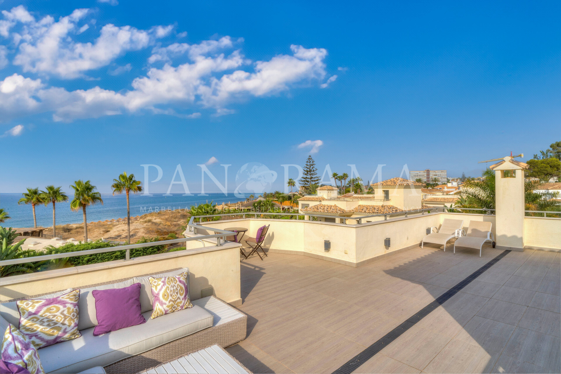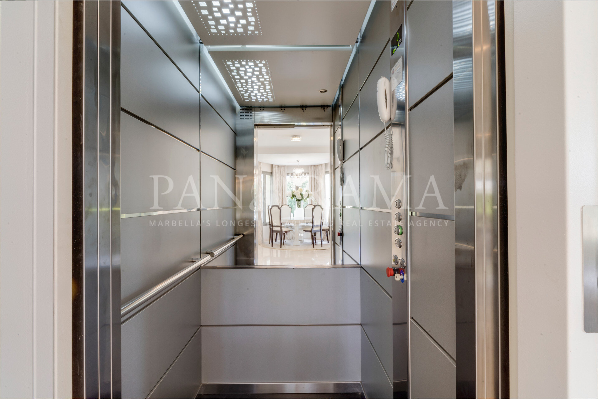 Les caractéristiques supplémentaires incluent un ascenseur reliant tous les niveaux, des armoires encastrées, un double garage, un chauffage au sol dans les salles de bain, une climatisation chaud et froid, des panneaux solaires, un système domotique, une alarme et des caméras de sécurité. Avec son emplacement privilégié en bord de mer, cette villa est une maison de rêve proche des écoles et des commodités, idéale pour y vivre toute l’année ou comme investissement locatif.