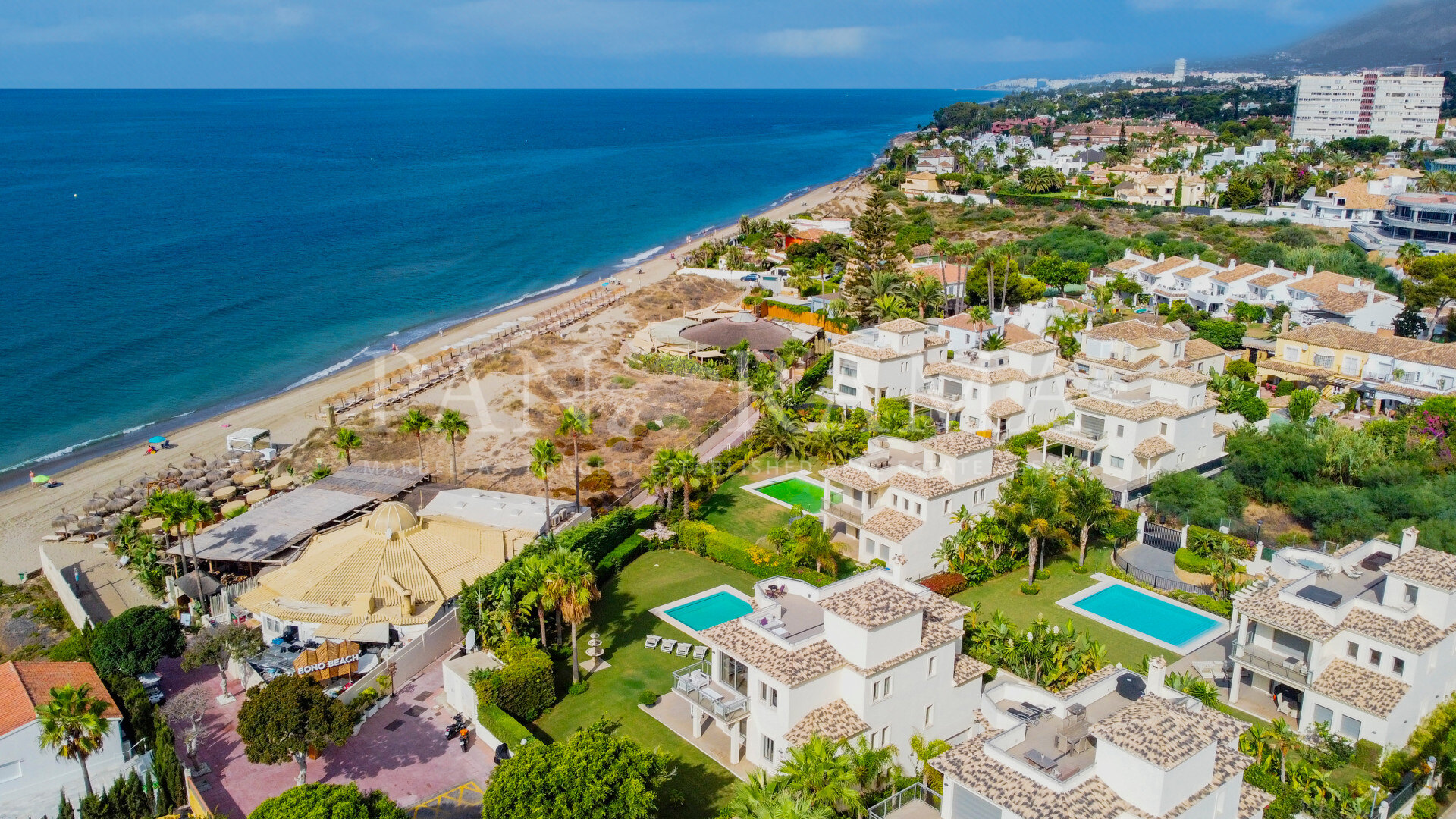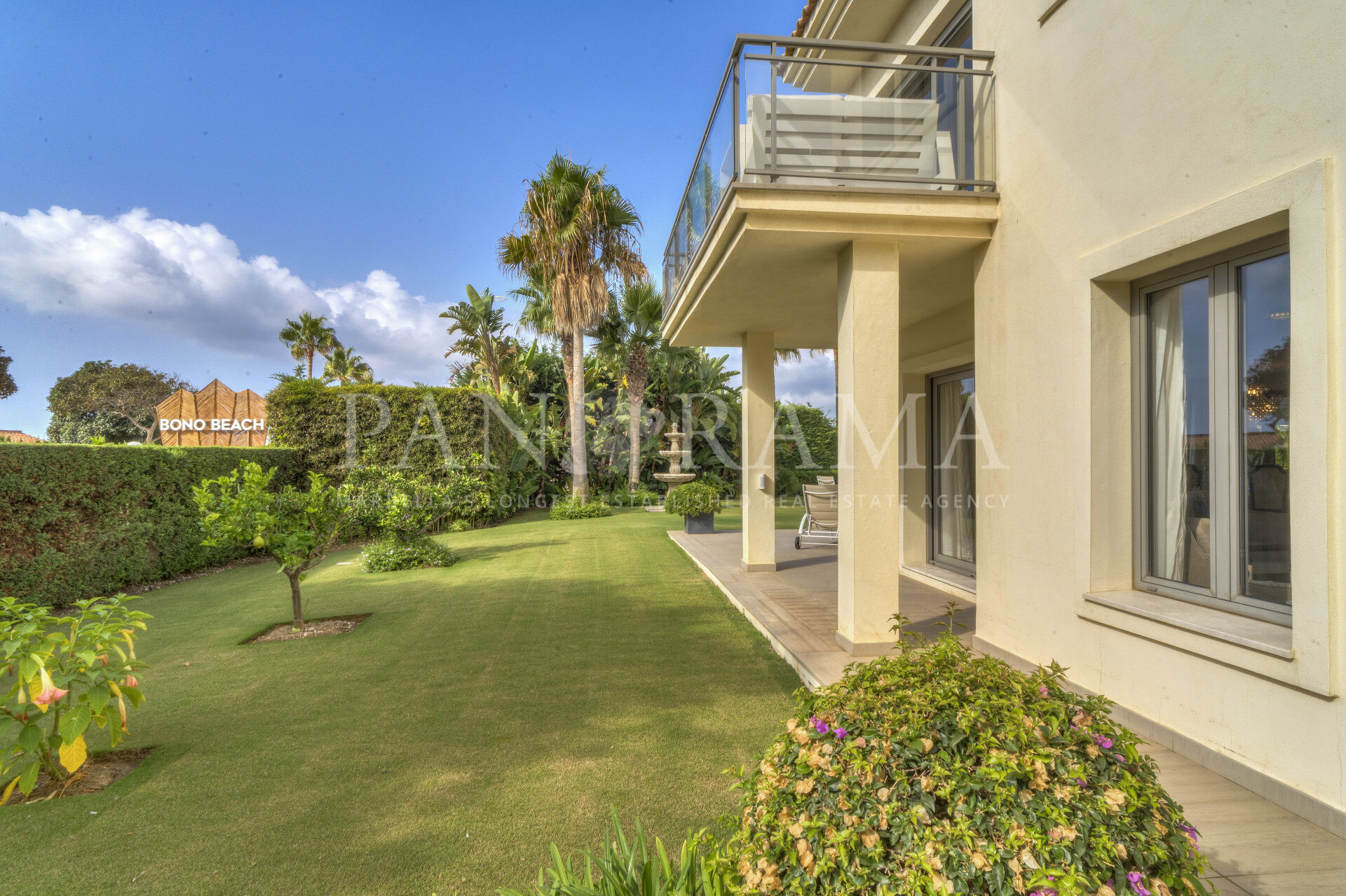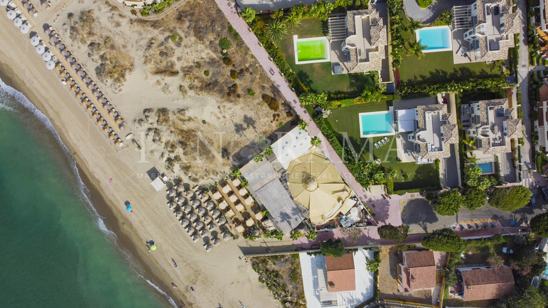 Cette propriété luxueuse offre un accès direct à la plage et est située sur un terrain spacieux et plat de 1 016,23 m², magnifiquement aménagé avec une piscine chauffée privée et une couverture automatique. La villa s’étend sur trois niveaux plus un solarium sur le toit.
