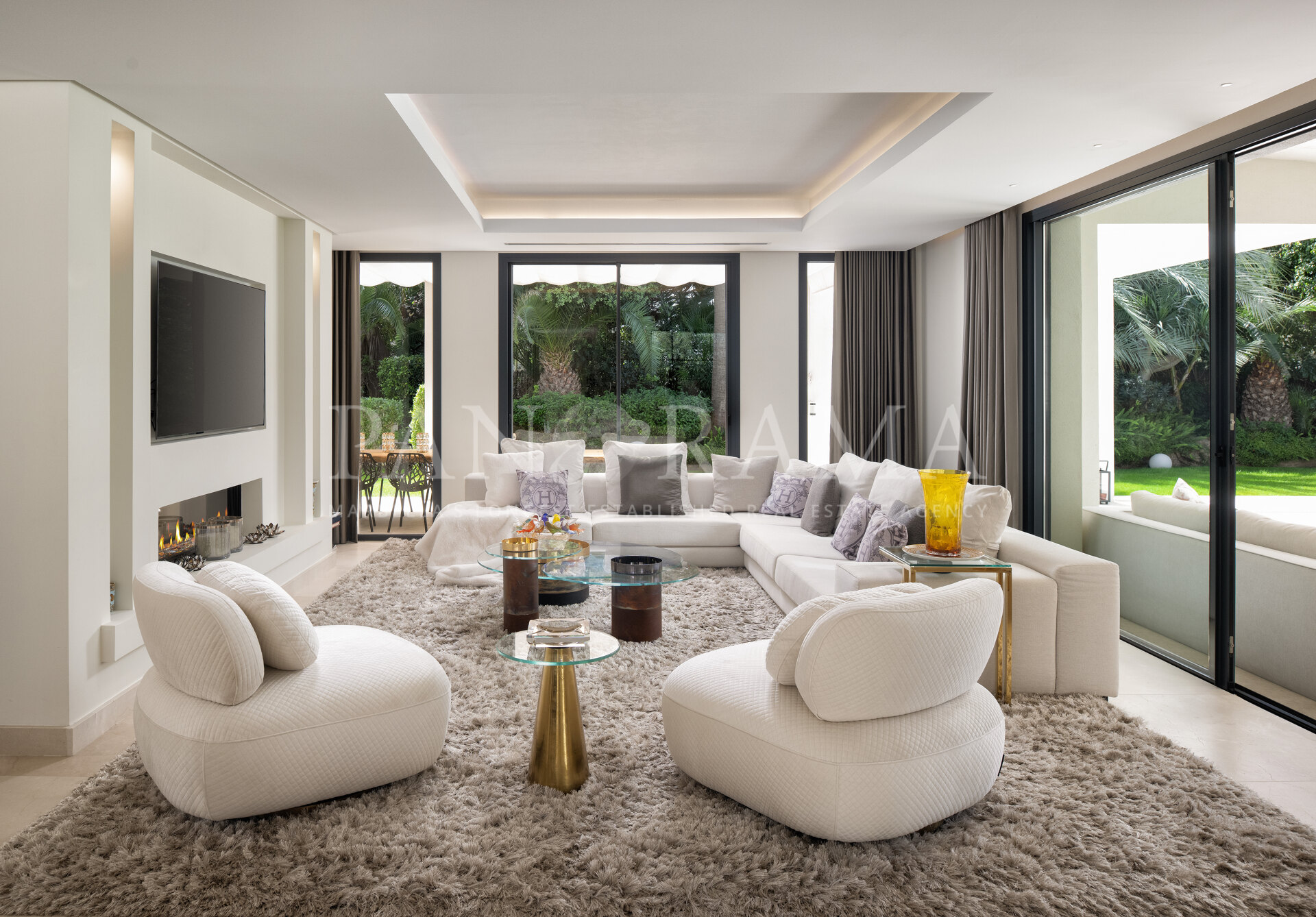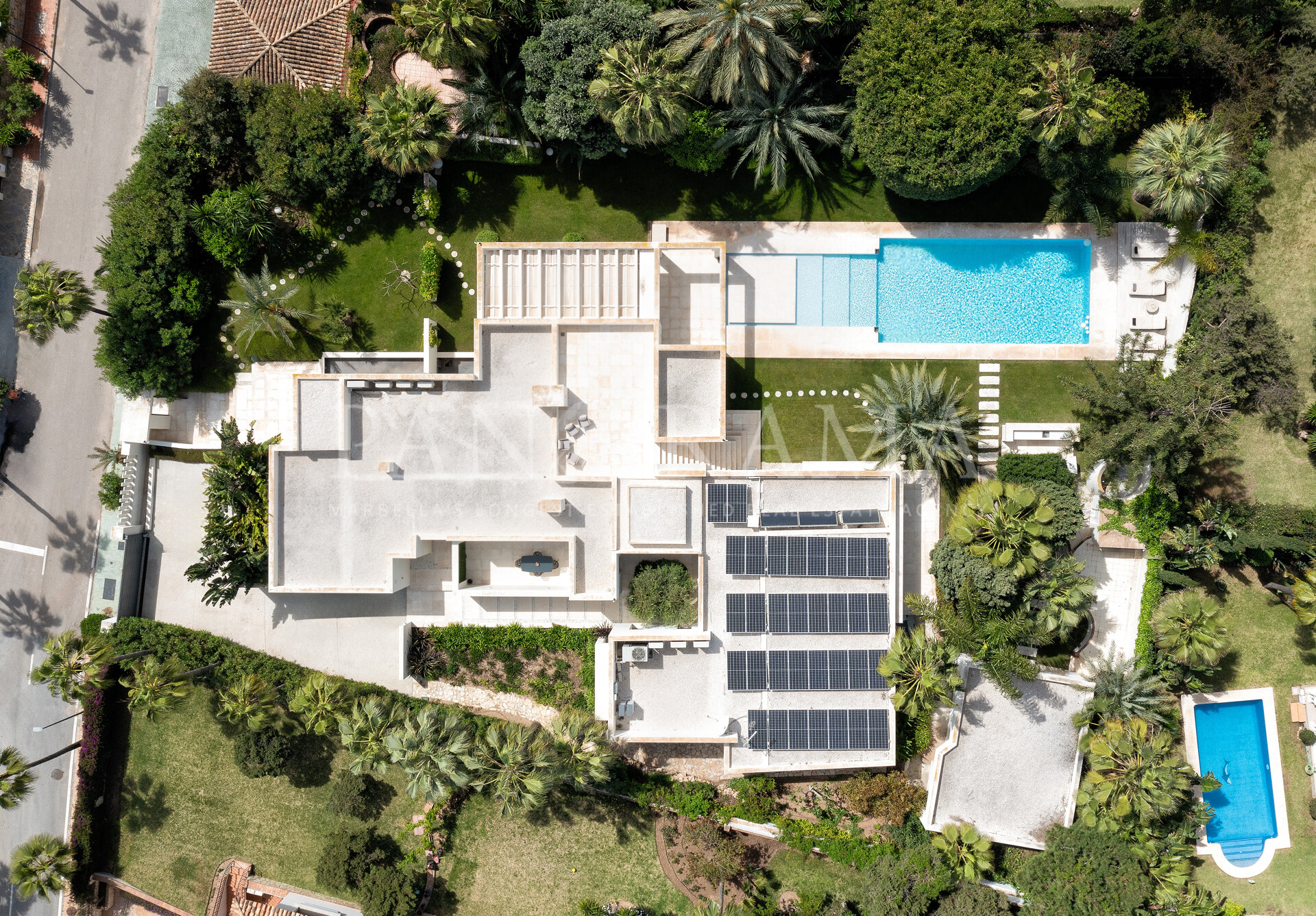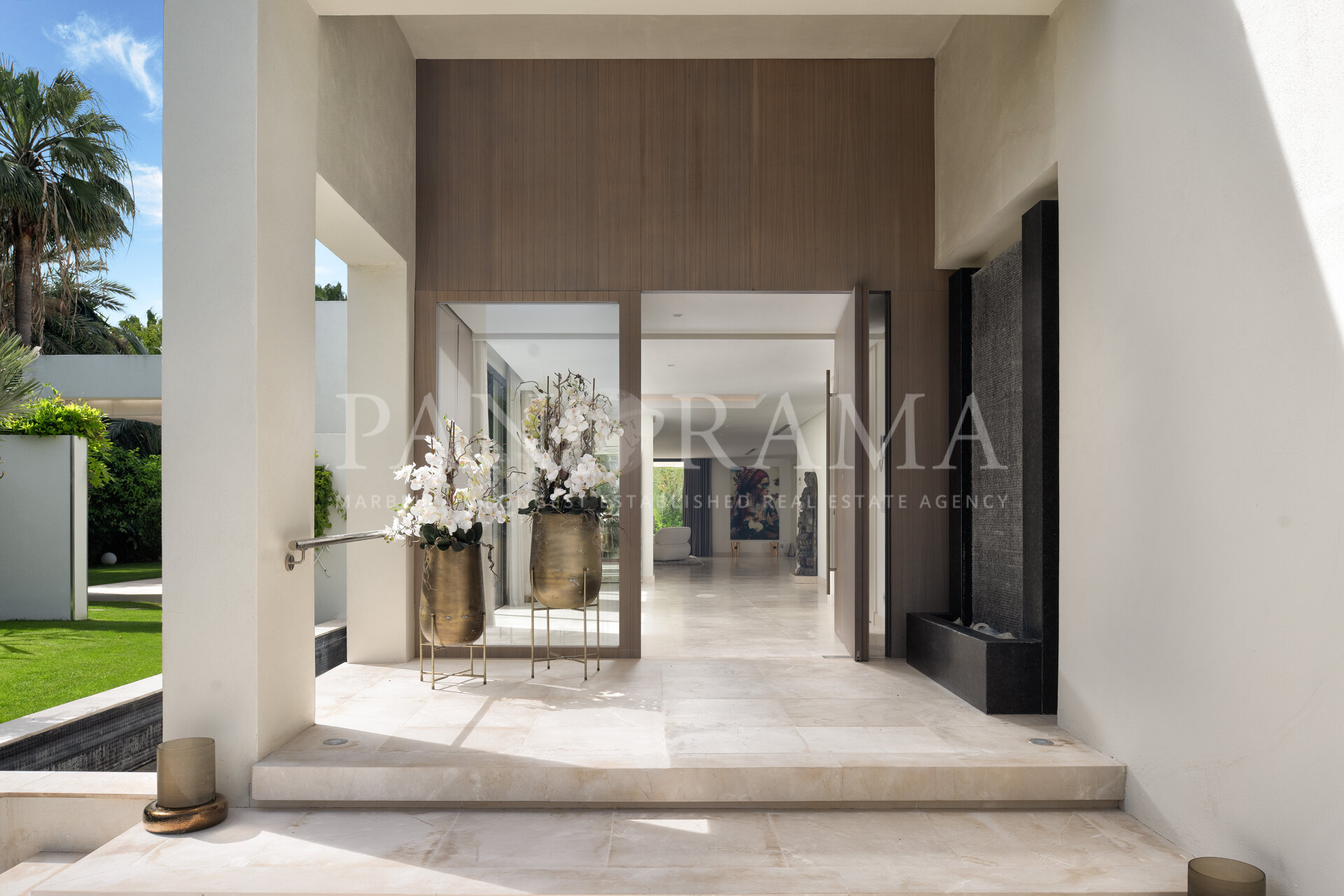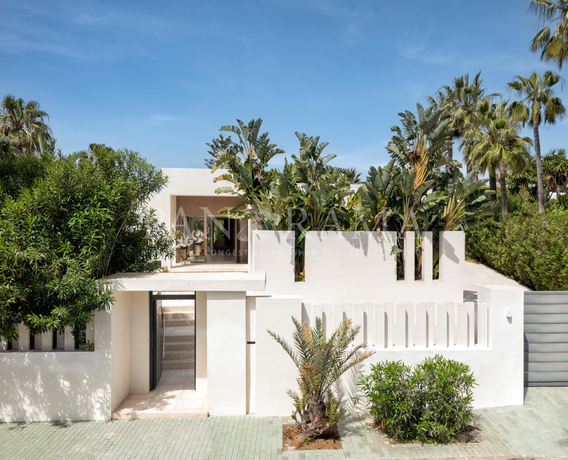 Cette villa exquise offre vraiment le meilleur des deux mondes : un refuge tranquille en bord de mer avec le luxe et la commodité de la vie moderne à Marbella Est.