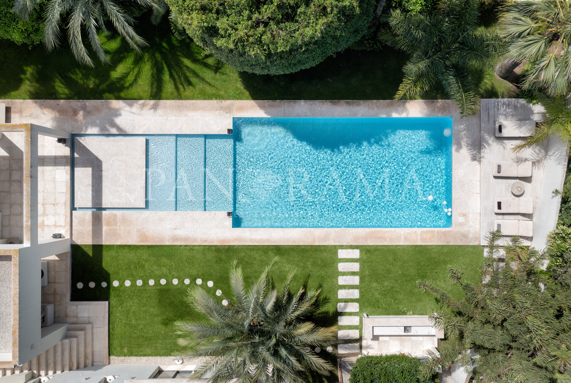 Au total, la villa offre cinq chambres magnifiquement conçues, chacune avec sa propre salle de bains attenante, assurant confort et intimité pour tous les résidents et invités. Le grand terrain, s’étendant sur 2 500 mètres carrés, permet un espace extérieur ample, y compris des jardins magnifiquement paysagés, une terrasse de piscine spacieuse et plusieurs espaces de détente. Avec une surface construite de 600 mètres carrés, la villa offre beaucoup d’espace pour la détente, le divertissement et la vie quotidienne.