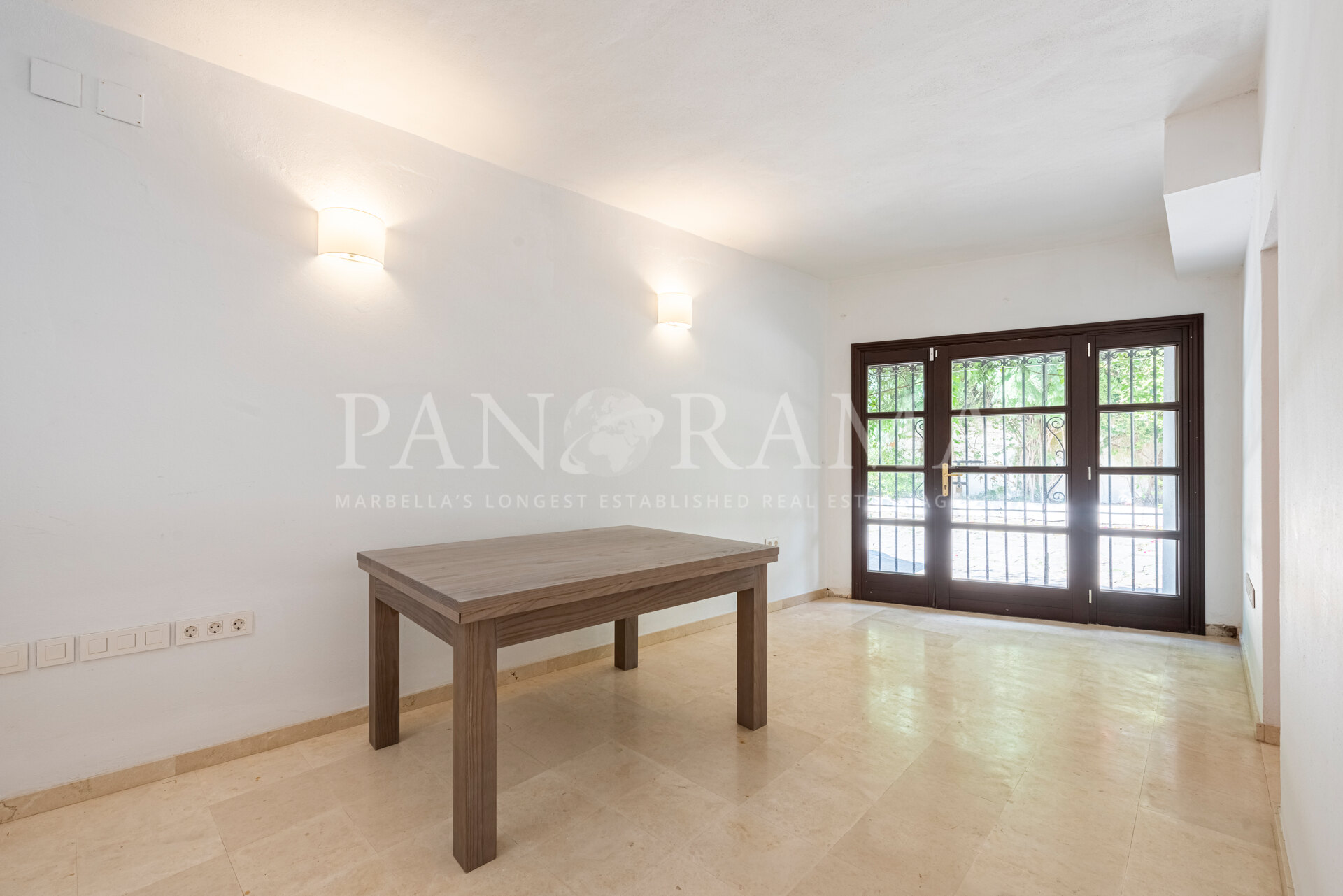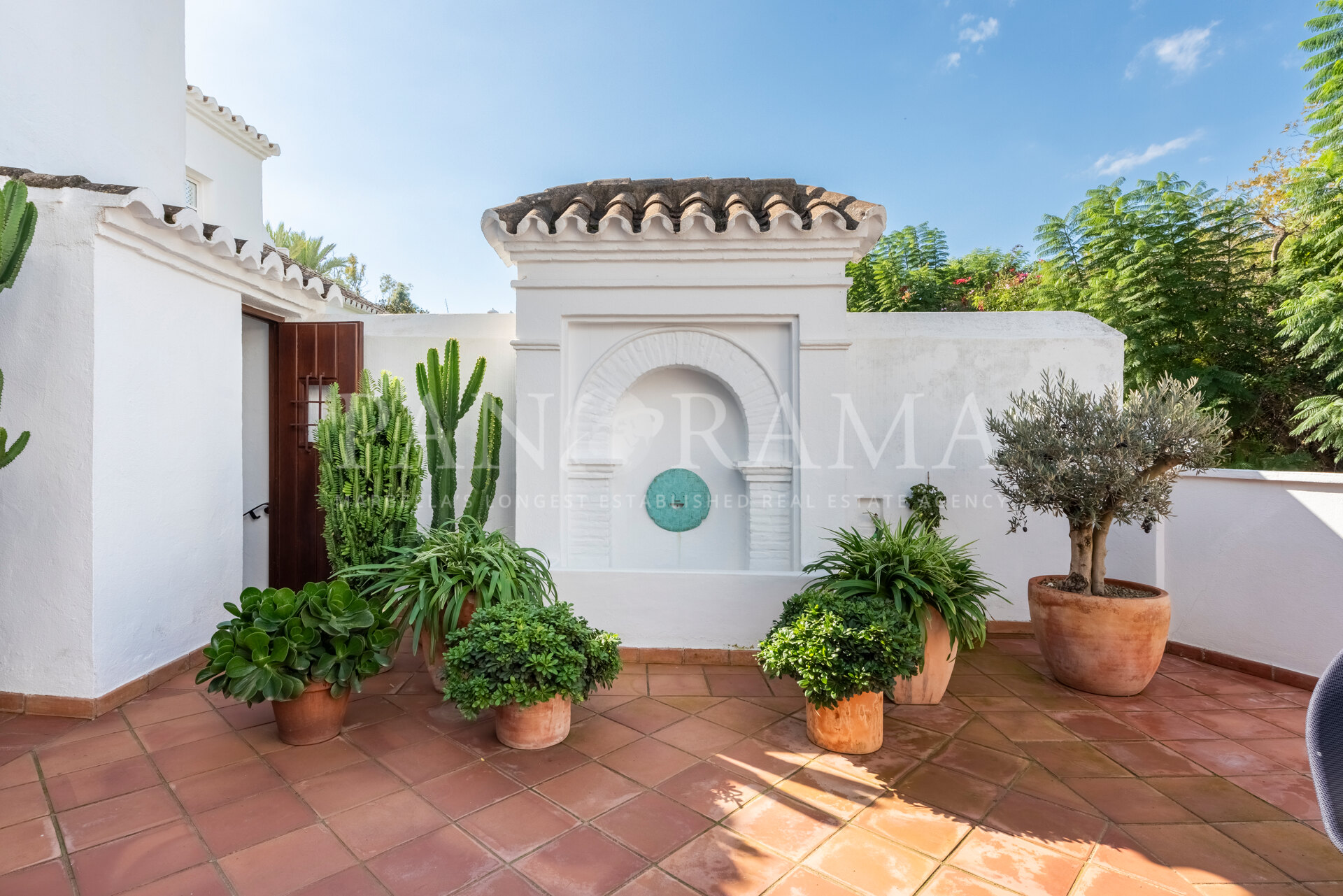 Cette magnifique maison de ville est nichée dans un complexe de style village andalou sur la prestigieuse Golden Mile, offrant un mélange unique de charme traditionnel et de commodités modernes. Orientée à l’ouest pour capturer le meilleur de la lumière naturelle, cette propriété s’étend sur deux niveaux plus un sous-sol polyvalent, en faisant une maison idéale pour les familles ou ceux qui recherchent un style de vie méditerranéen détendu.