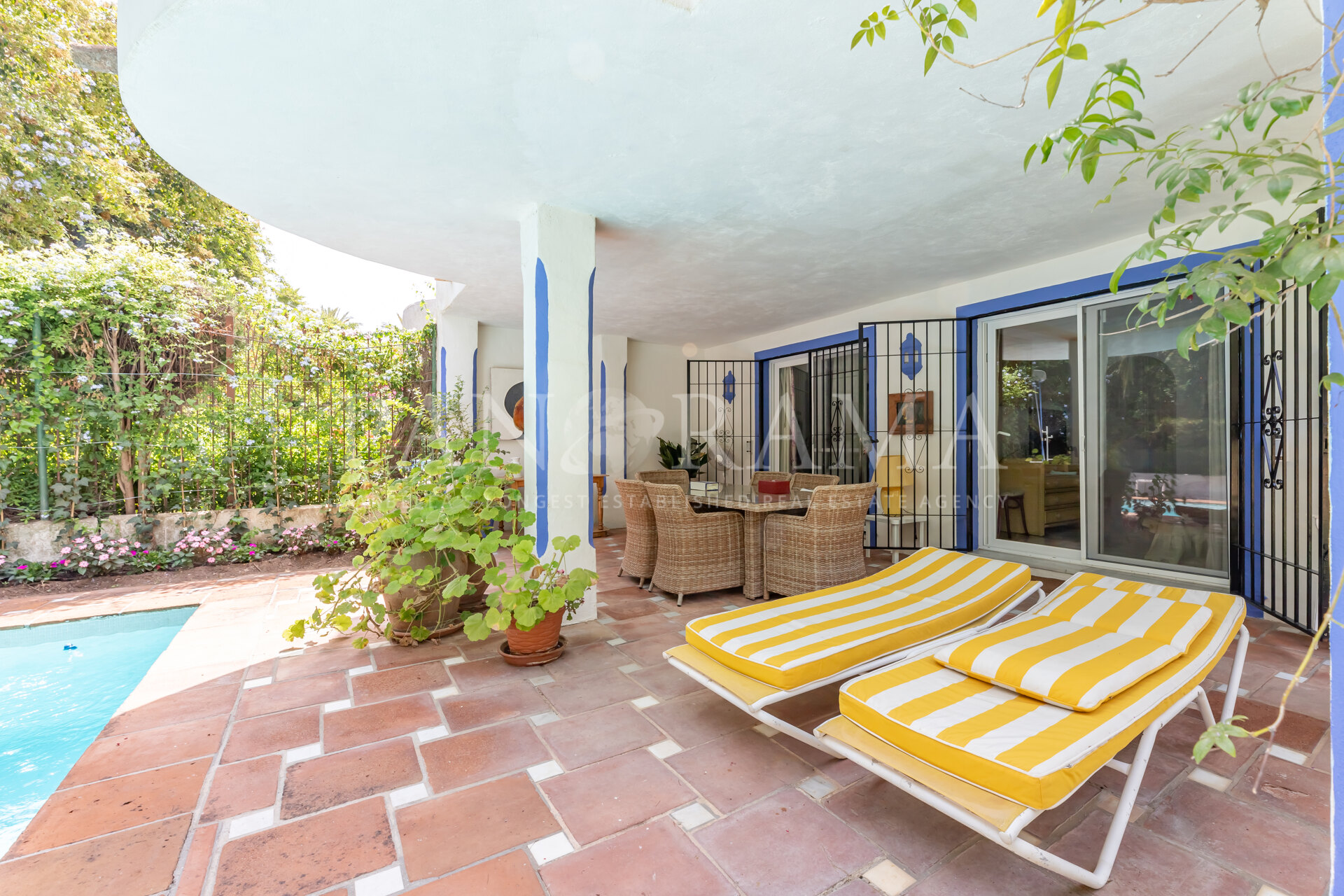 Au niveau du jardin, vous bénéficierez d’un accès direct au jardin privé et à la piscine. Ce niveau comprend deux chambres avec salles de bains privatives, offrant intimité et confort. Il y a également une troisième chambre qui peut être transformée en suite avec peu de travaux. Chacune de ces pièces donne sur le jardin et la piscine, qui disposent également d’un porche couvert et d’un espace barbecue—parfait pour profiter de l’extérieur en famille ou entre amis. La villa bénéficie également d’un accès à un espace vert supplémentaire d’environ 500 mètres carrés, réservé à un usage privé.