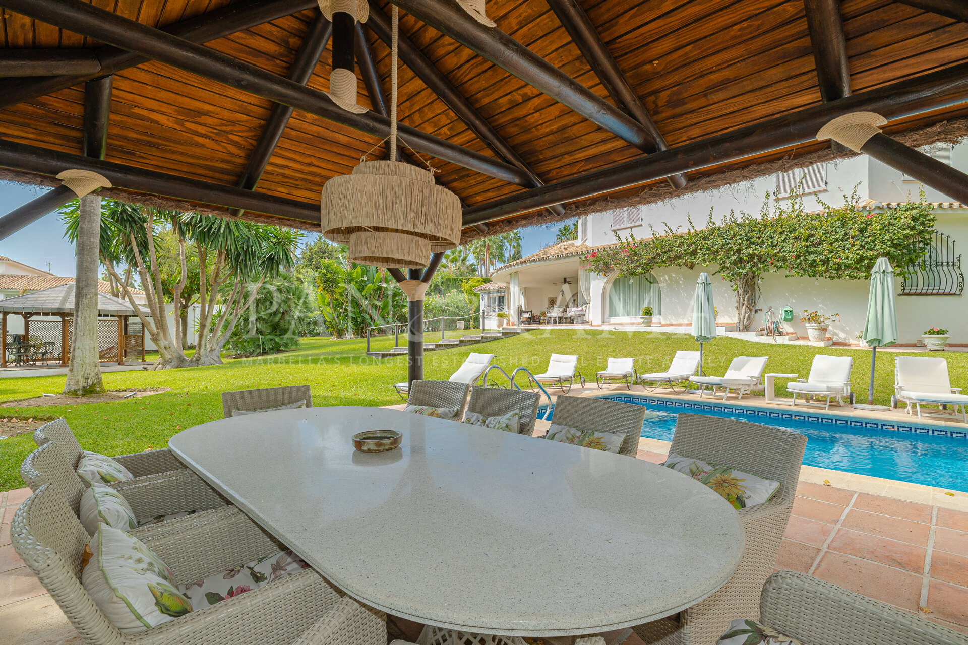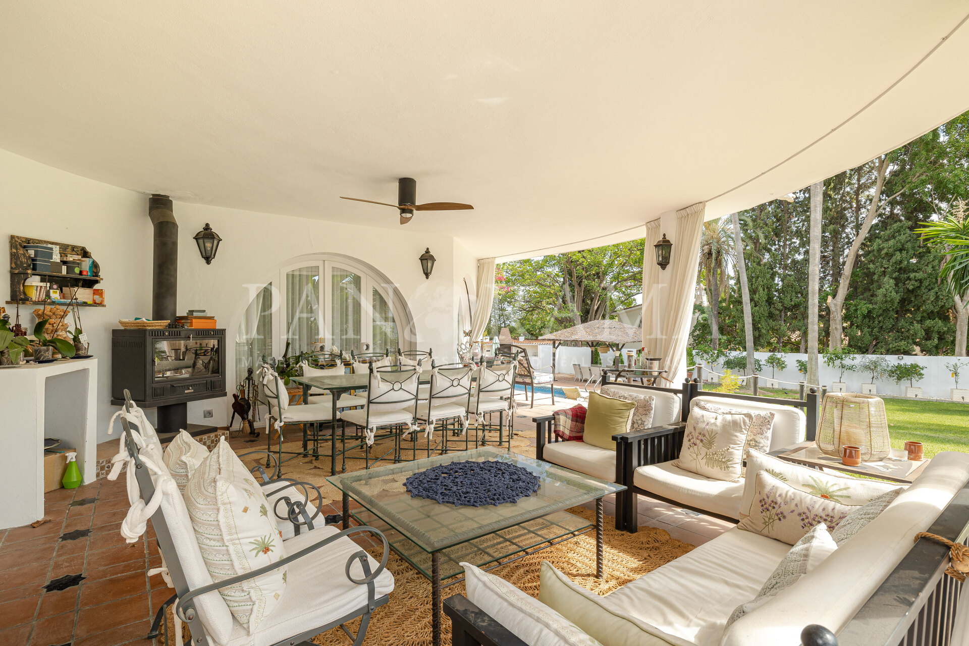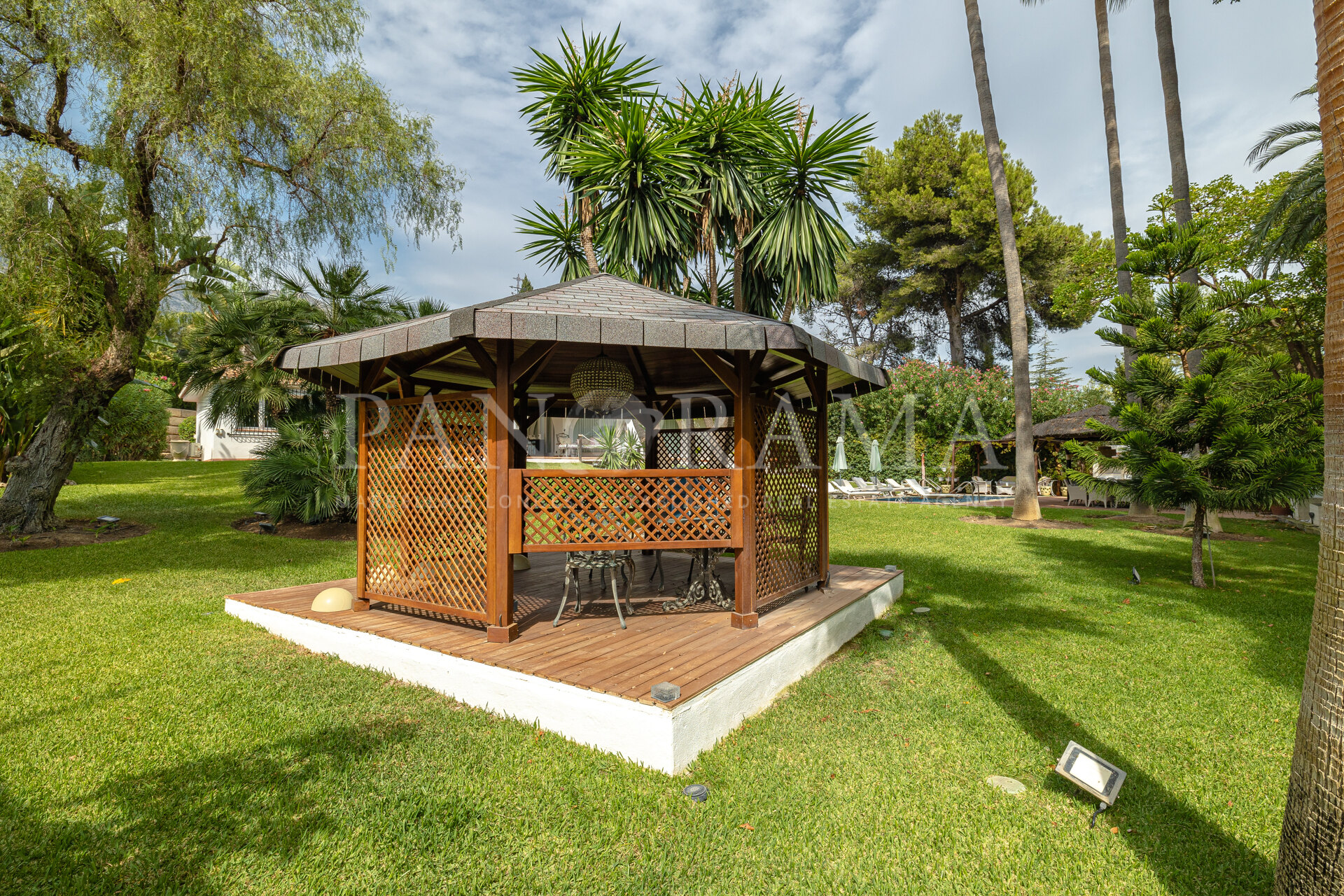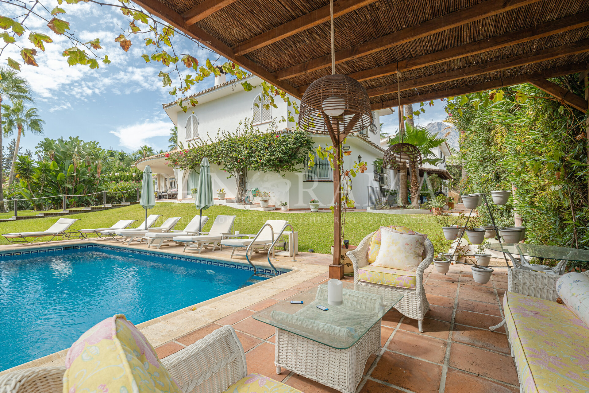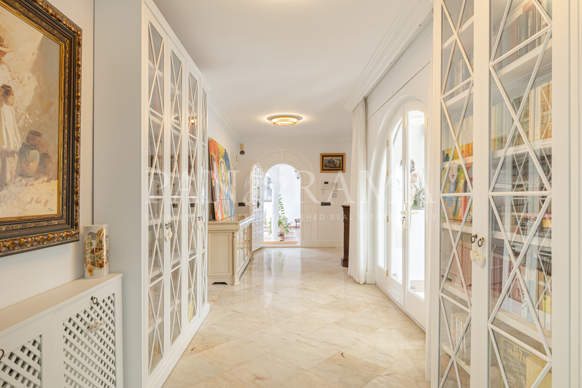 Située dans le prestigieux quartier de Rocio de Nagüeles, sur la Golden Mile de Marbella, cette élégante villa offre une combinaison parfaite de luxe et de confort. Avec un total de 470m² construits sur un généreux terrain de 1 781m², cette propriété est une véritable oasis de tranquillité à quelques minutes des meilleures plages et services de Marbella.