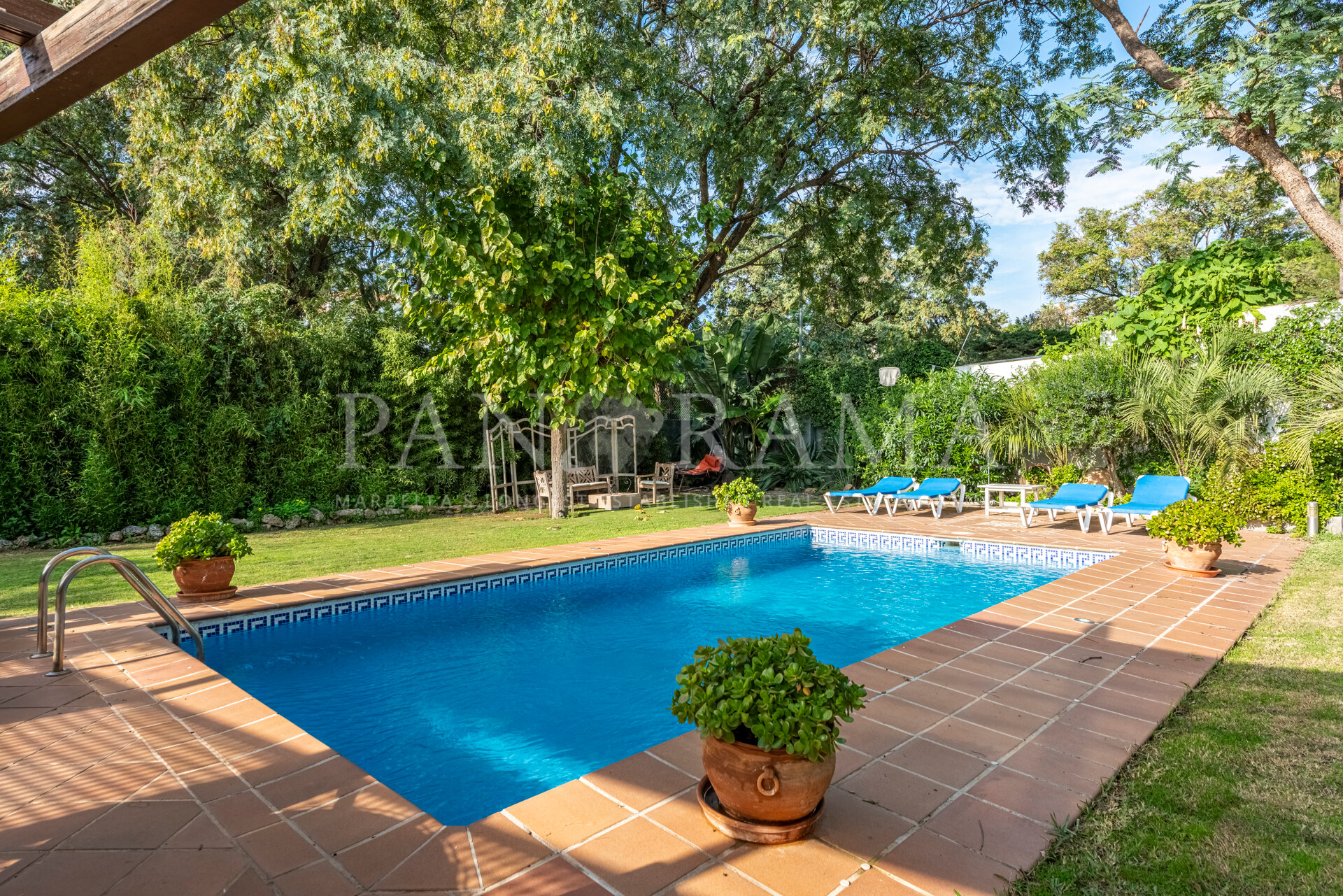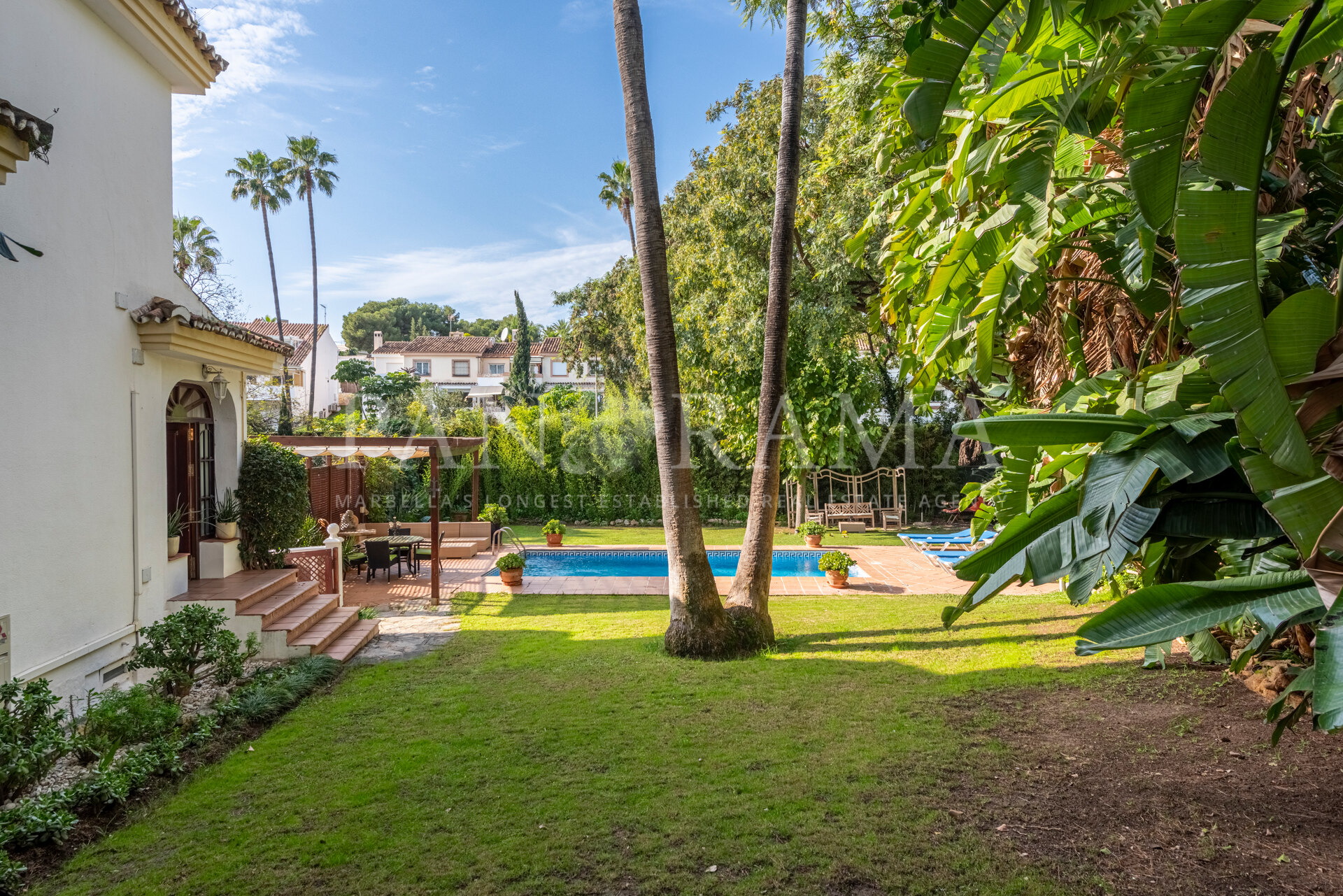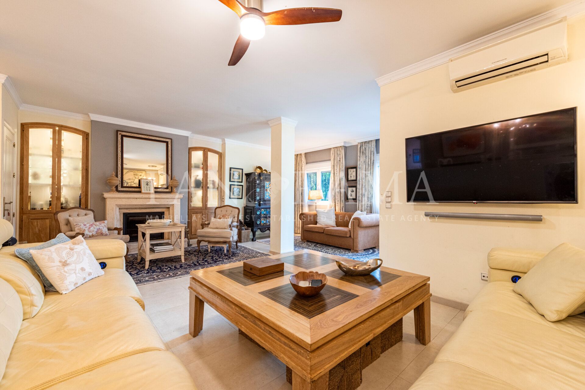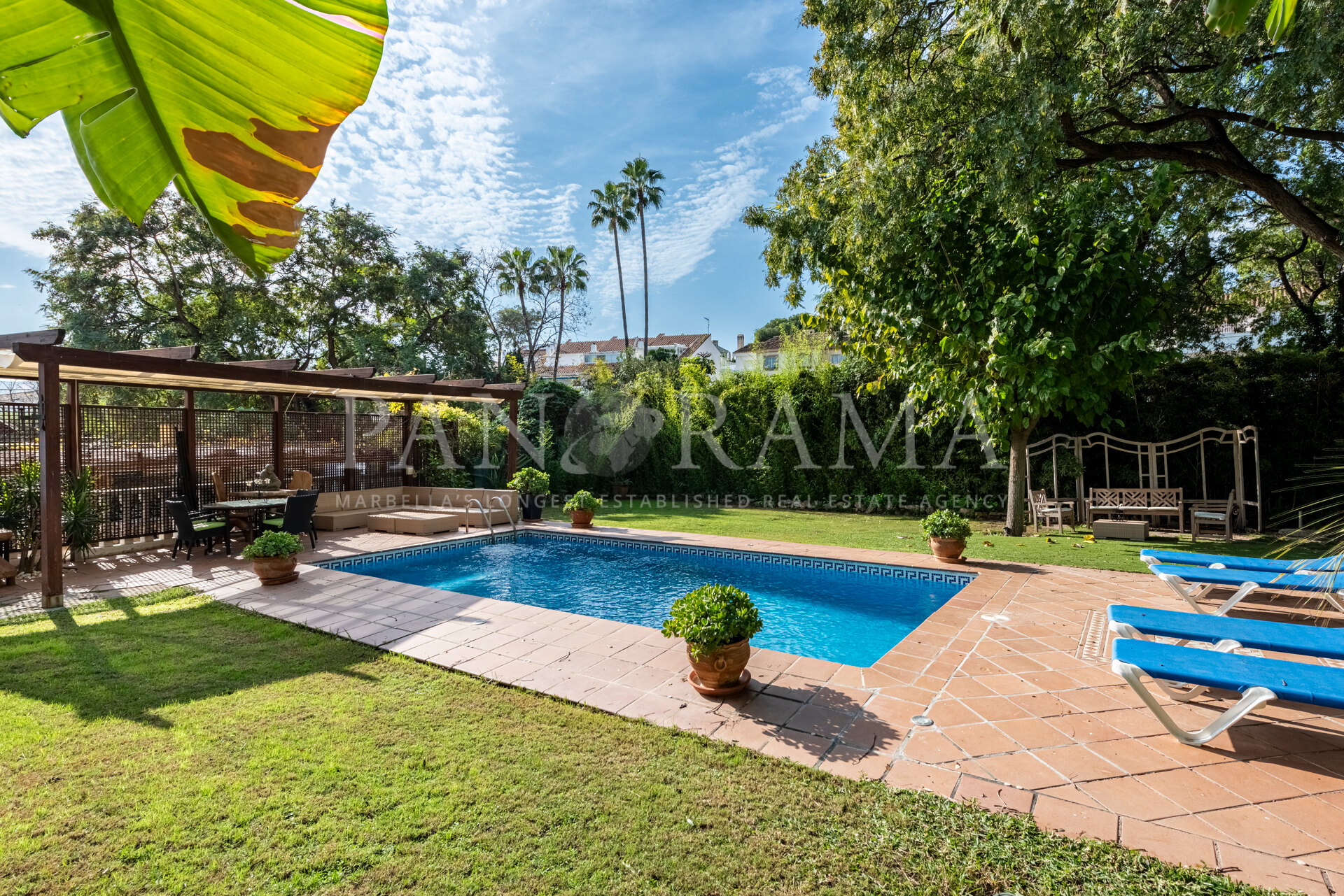 Cette maison jumelée orientée à l’ouest est située au cœur de Nueva Andalucía, offrant un emplacement enviable à distance de marche de Puerto Banús, de la plage et de toutes les commodités essentielles. Nichée au milieu d’un jardin luxuriant et mature, la propriété est soigneusement répartie sur trois niveaux, offrant un agencement spacieux et polyvalent qui répond à la fois au confort et à la fonctionnalité. Avec un total de cinq chambres en suite et des espaces de vie extérieurs et intérieurs généreux, cette maison offre un immense potentiel pour être modernisée en un havre familial contemporain.