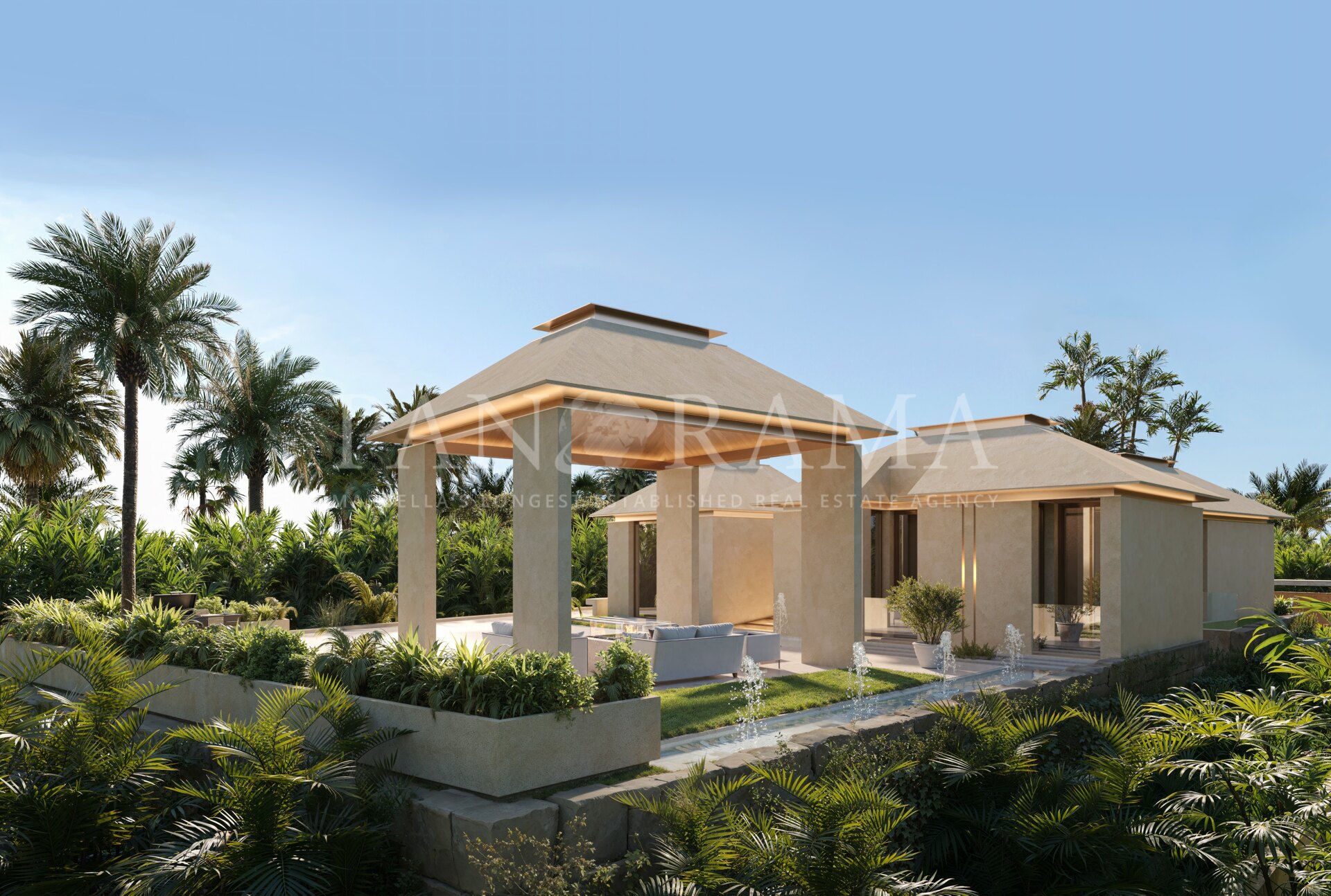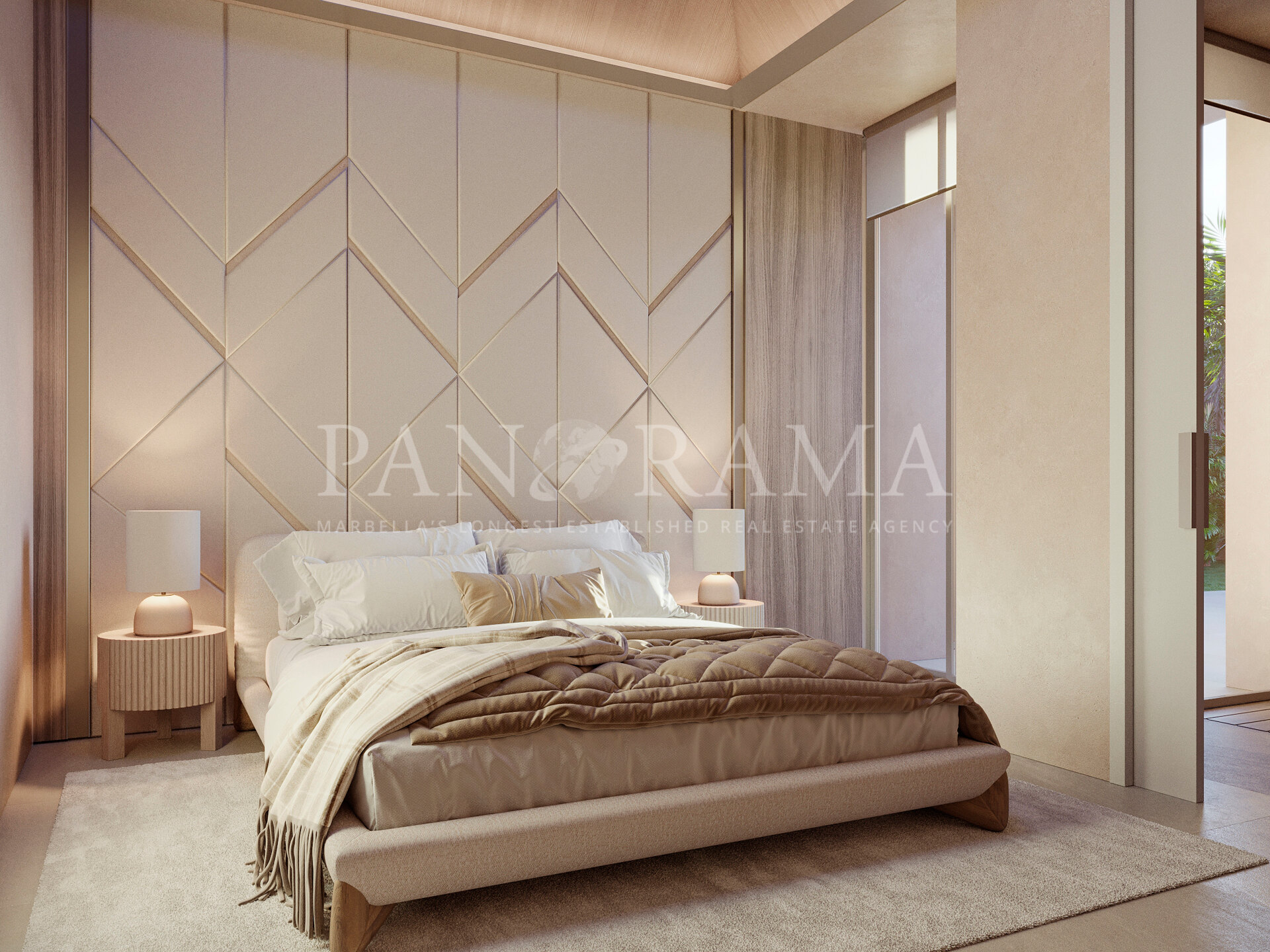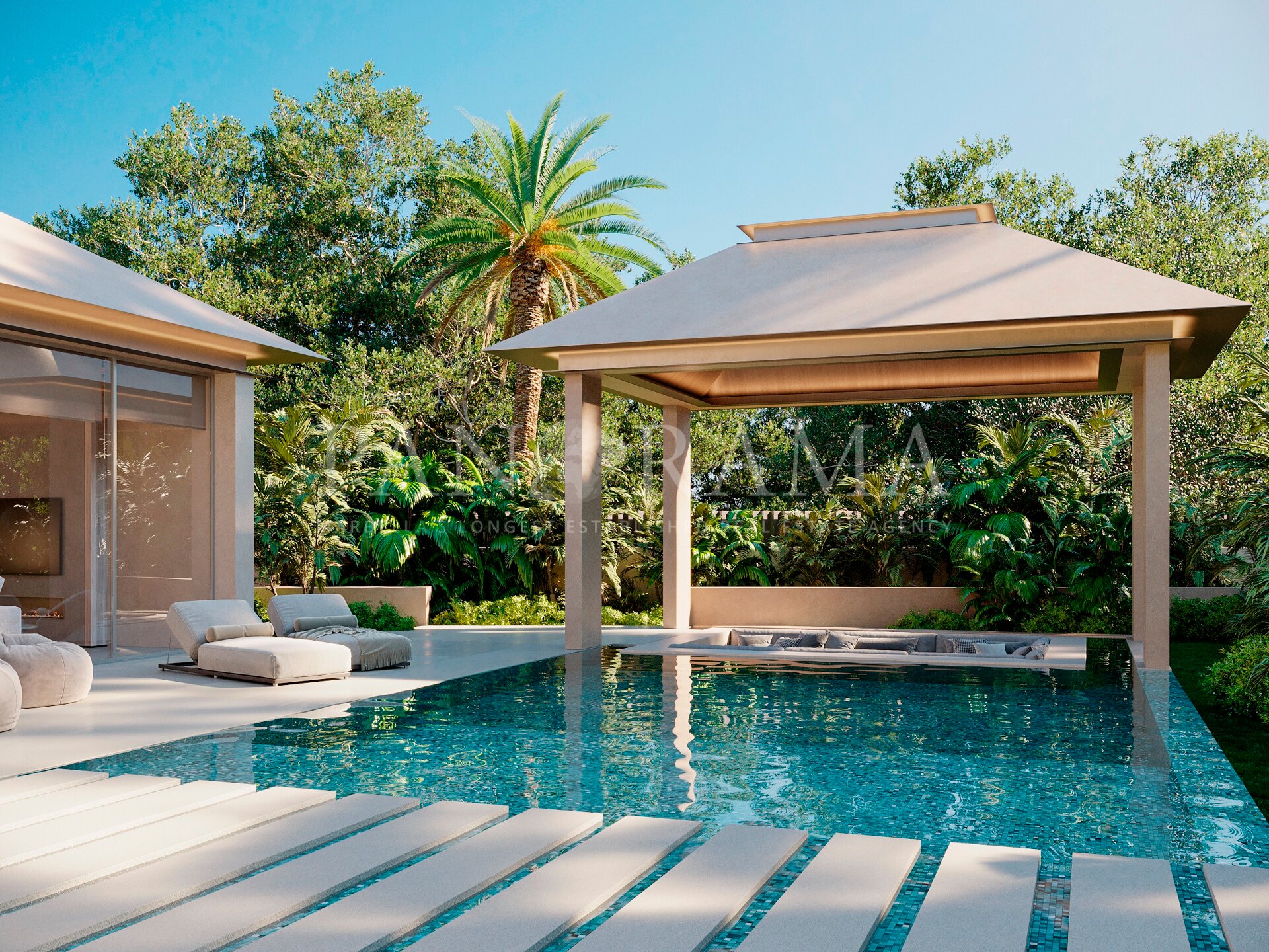 Le design intérieur et le mobilier sur mesure ont été exclusivement réalisés par GC Studio, une maison de design internationalement reconnue pour sa vision artistique et son souci du détail. Chaque pièce incarne un savoir-faire unique, de l’utilisation de matériaux haut de gamme à l’intégration méticuleuse de l’éclairage, des textures et des formes. L’architecture a été dirigée par ER Arquitectos, un cabinet renommé pour son expertise dans les projets résidentiels de luxe et l’urbanisme moderne. Leur vision se reflète dans chaque détail — une fusion parfaite entre structure et nature, lumière et espace.