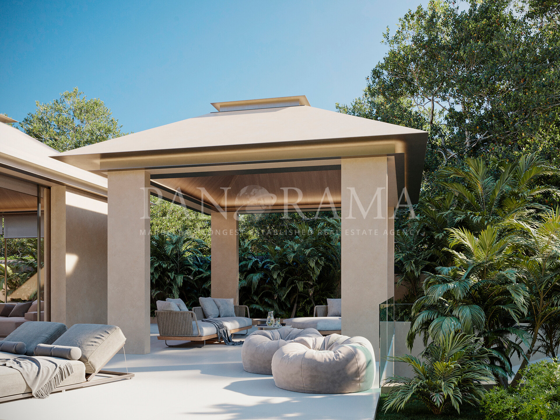 Le design sophistiqué assure une circulation fluide entre les espaces, tandis que l’attention portée aux détails dans toute la maison met en valeur à la fois le confort et l’élégance. La vie en plein air a été soigneusement pensée, avec de vastes terrasses, une cuisine d’été entièrement équipée et une piscine à débordement entourée de jardins paysagers luxuriants. Ces espaces offrent un cadre idéal pour des repas en plein air, recevoir des invités ou savourer des moments de détente en toute intimité.