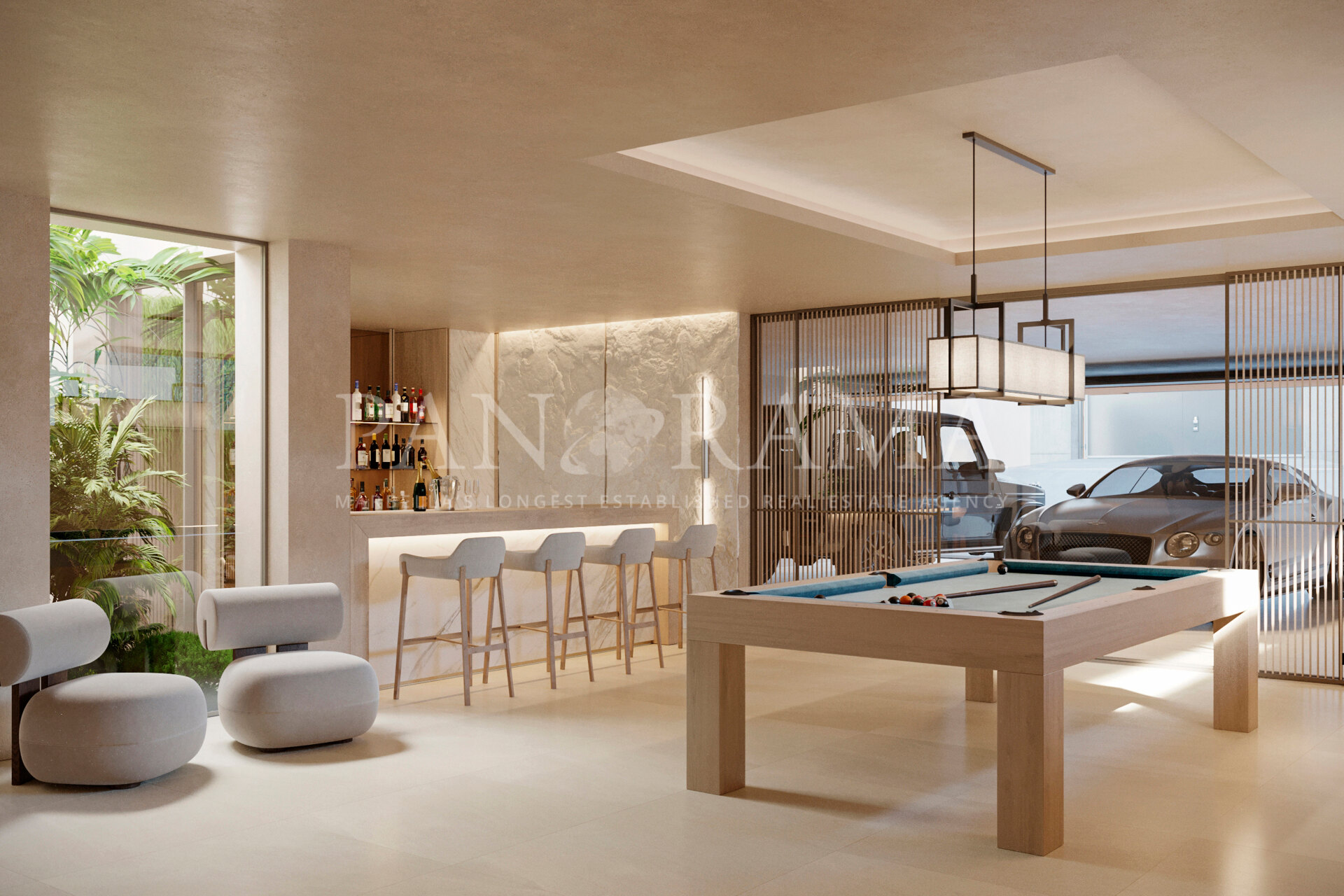 La décoration intérieure et le mobilier sur mesure ont été réalisés par GC Studio, un nom de renommée internationale dans l’architecture et le design d’intérieur. Chaque détail témoigne d’un engagement envers l’artisanat, depuis la sélection de matériaux haut de gamme jusqu’à l’intégration subtile de l’éclairage et des textures, créant ainsi des espaces à la fois visuellement saisissants et d’un confort absolu. La direction architecturale a été assurée par ER Arquitectos, un cabinet réputé pour son expérience dans les projets résidentiels de luxe et la gestion complète de projets. Leur expertise se reflète dans l’intégration parfaite de la forme et de la fonction, avec un design qui harmonise l’esthétique moderne et la beauté naturelle de l’environnement.