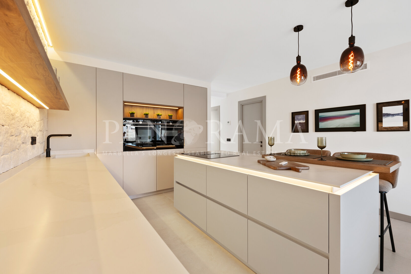 Ce penthouse entièrement rénové au cœur de San Pedro offre une combinaison idéale de luxe et d’emplacement. Situé sur la rue piétonne principale de la ville, il offre un accès facile aux commodités locales tout en étant à quelques minutes en voiture de Puerto Banús et Marbella. La terrasse orientée sud-ouest offre une vue imprenable sur la mer, idéale pour ceux qui apprécient à la fois la vie urbaine et le charme côtier.