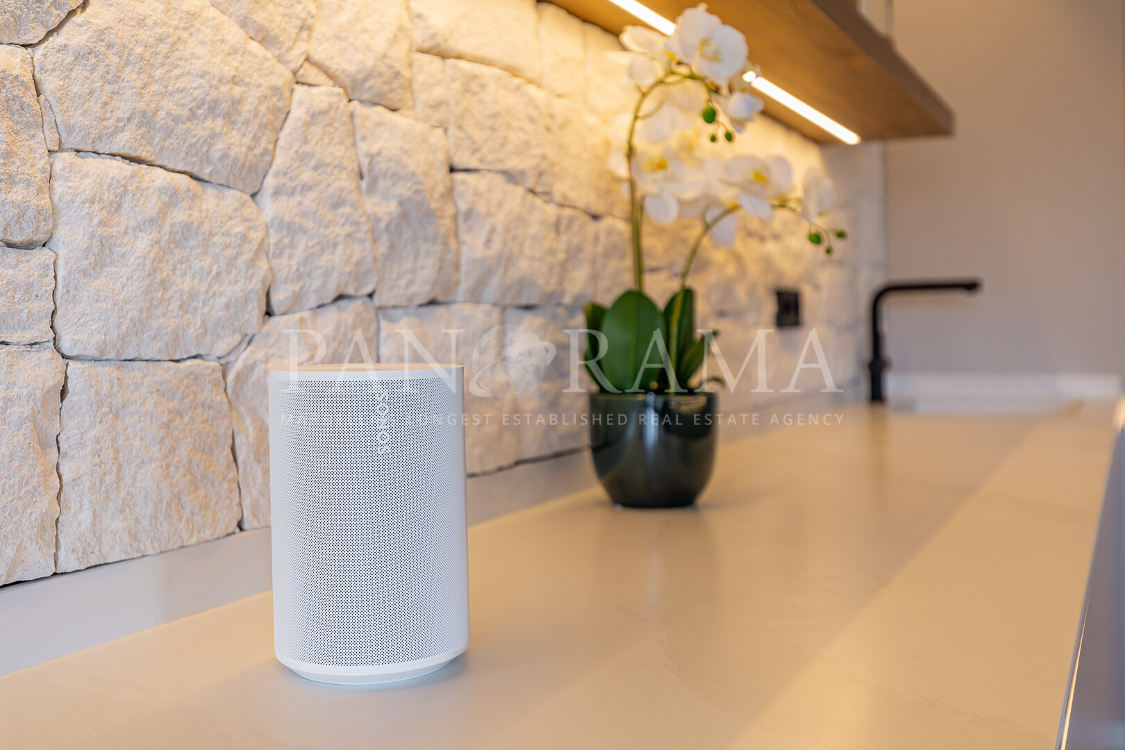 Les deux chambres sont spacieuses, chacune avec une salle de bains attenante dotée d’équipements haut de gamme HansGrohe et Duravit. Le penthouse est équipé de fonctionnalités avancées telles qu’un système sonore Sonos, une climatisation et un chauffage Daikin, et un système d’alarme AJAX, offrant le summum du confort et de la sécurité.