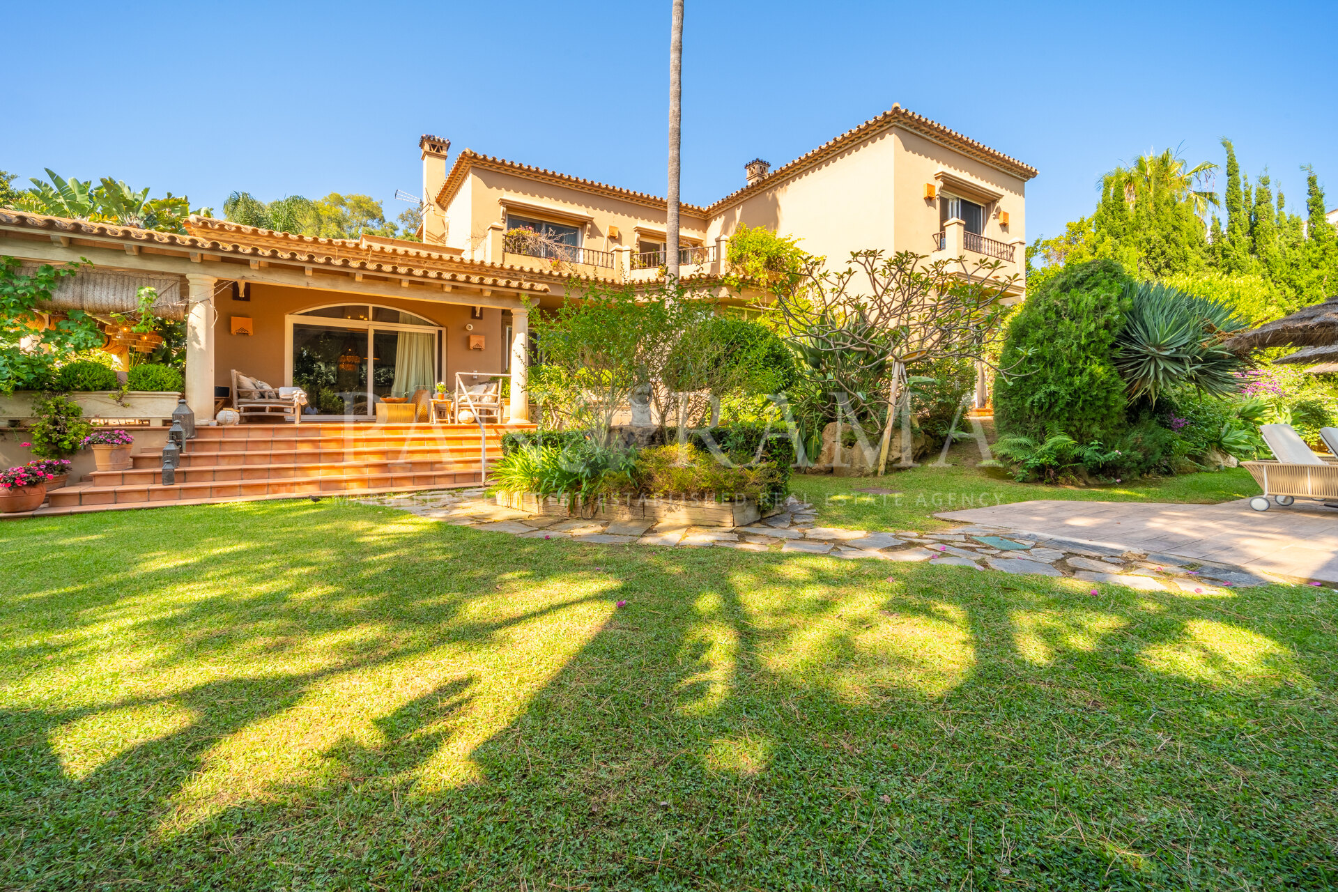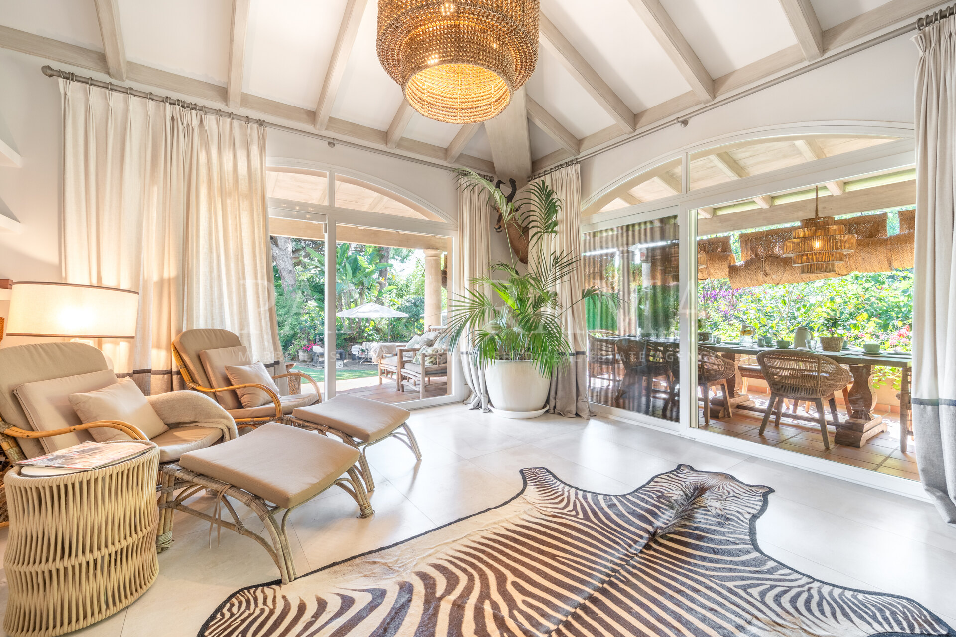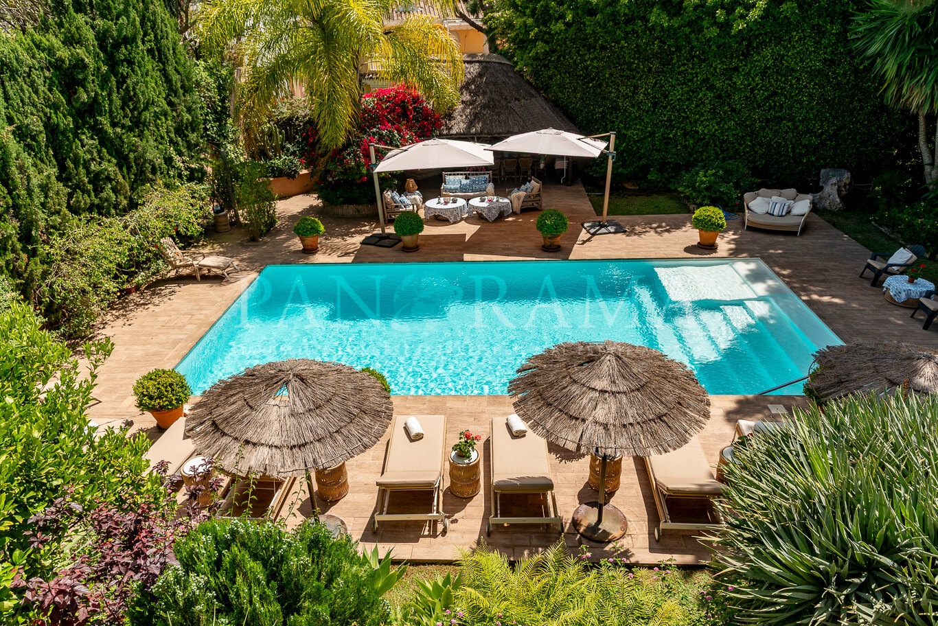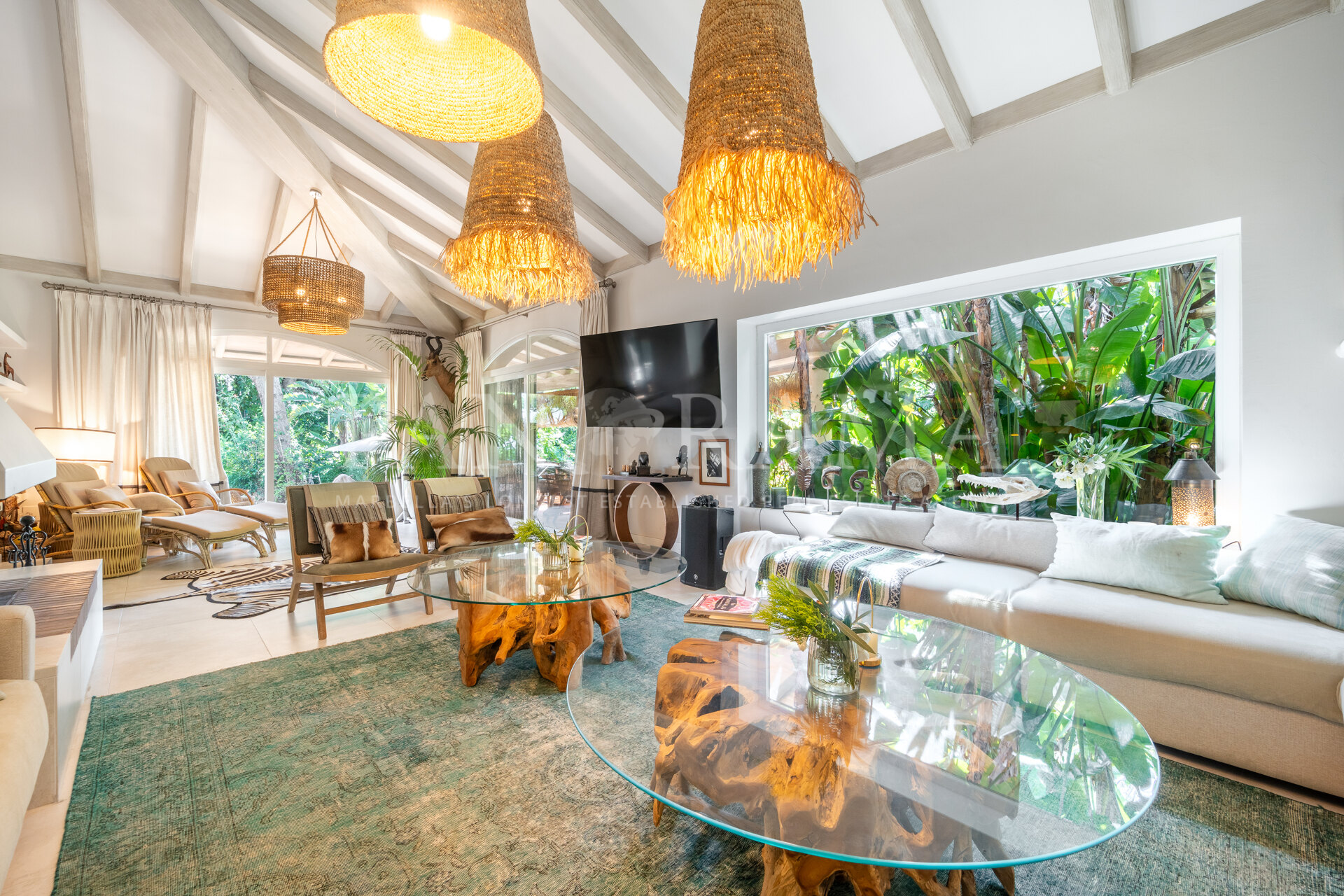 This spacious and comfortable renovated villa, surrounded by trees and lush vegetation, offers the perfect combination of feeling at home and enjoying the luxury of a villa just a few meters from the beach in Elviria.