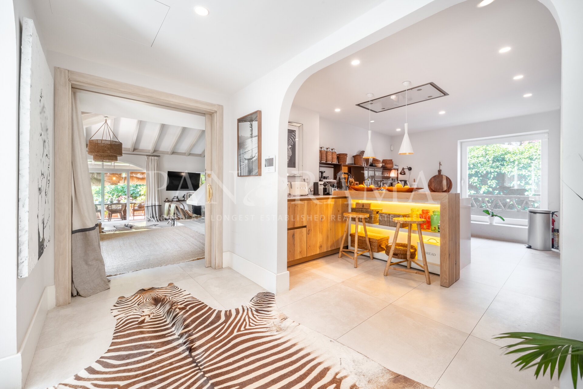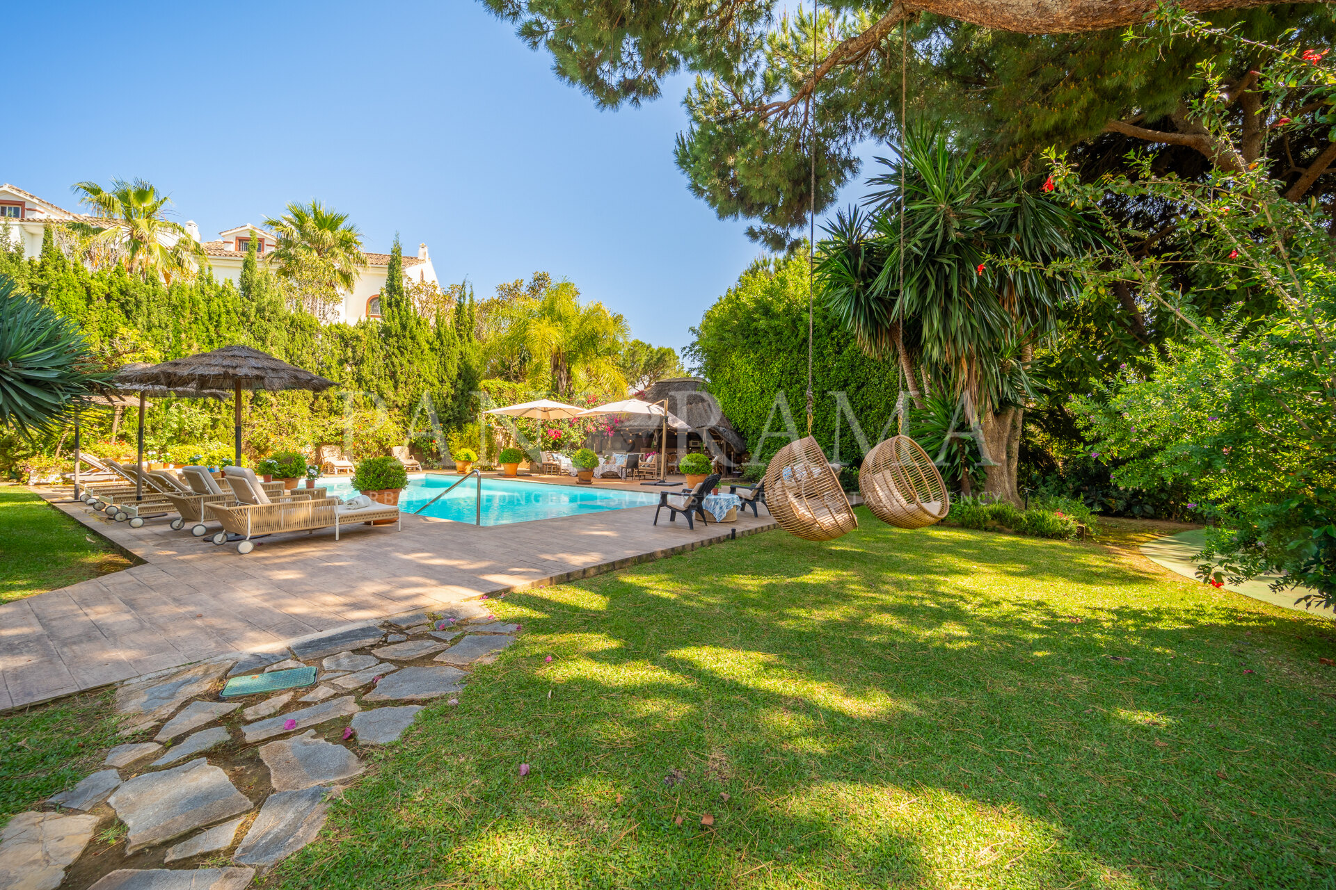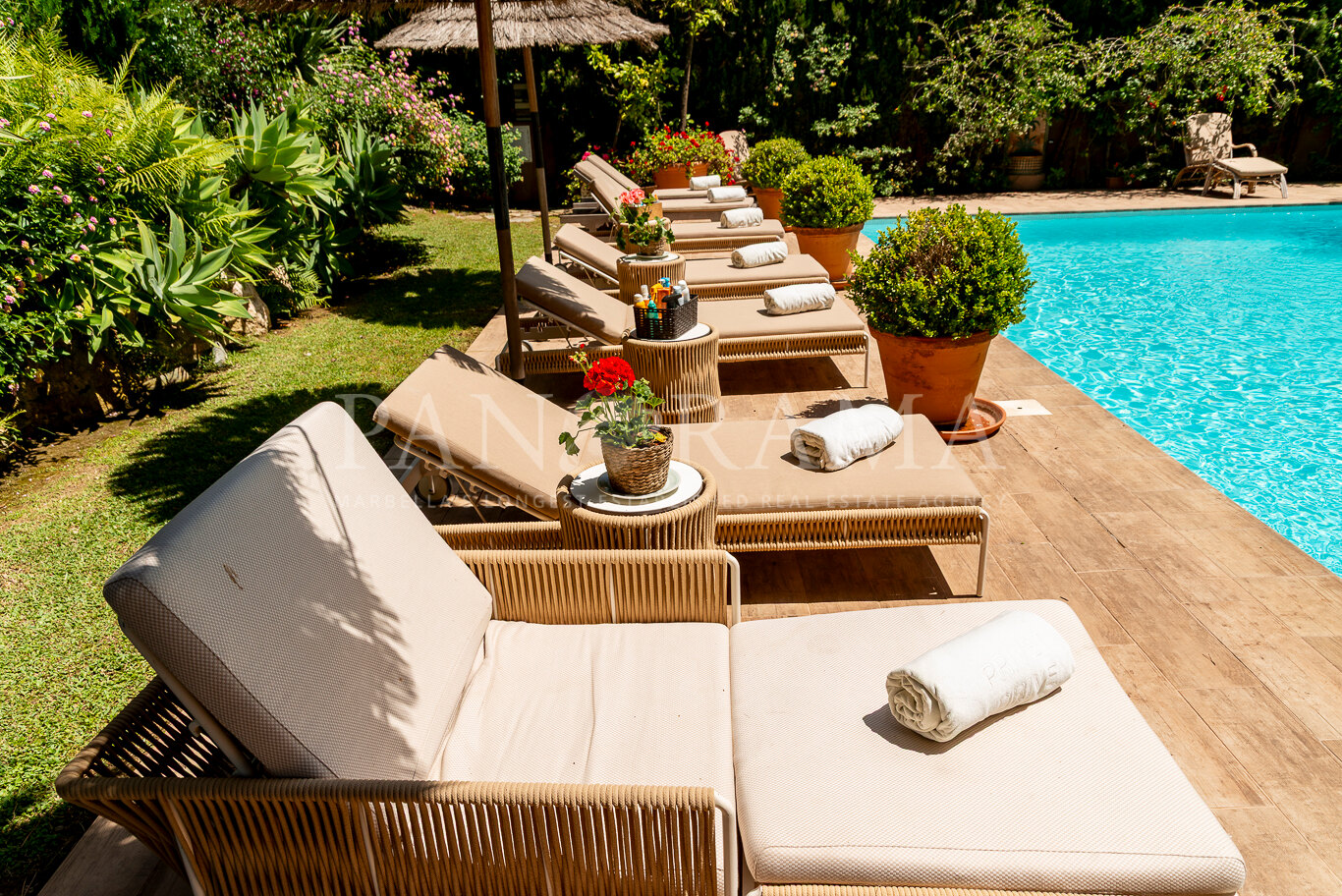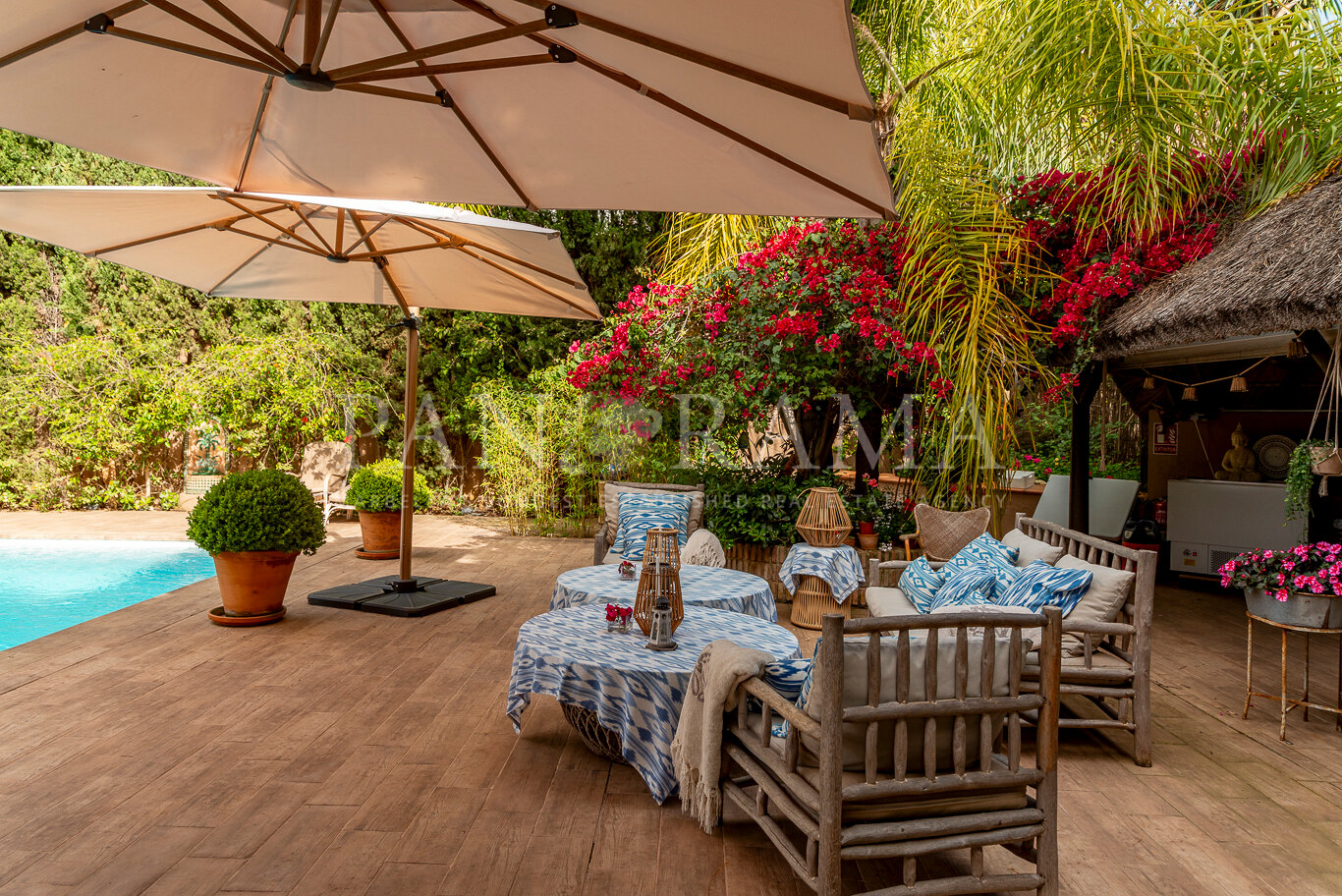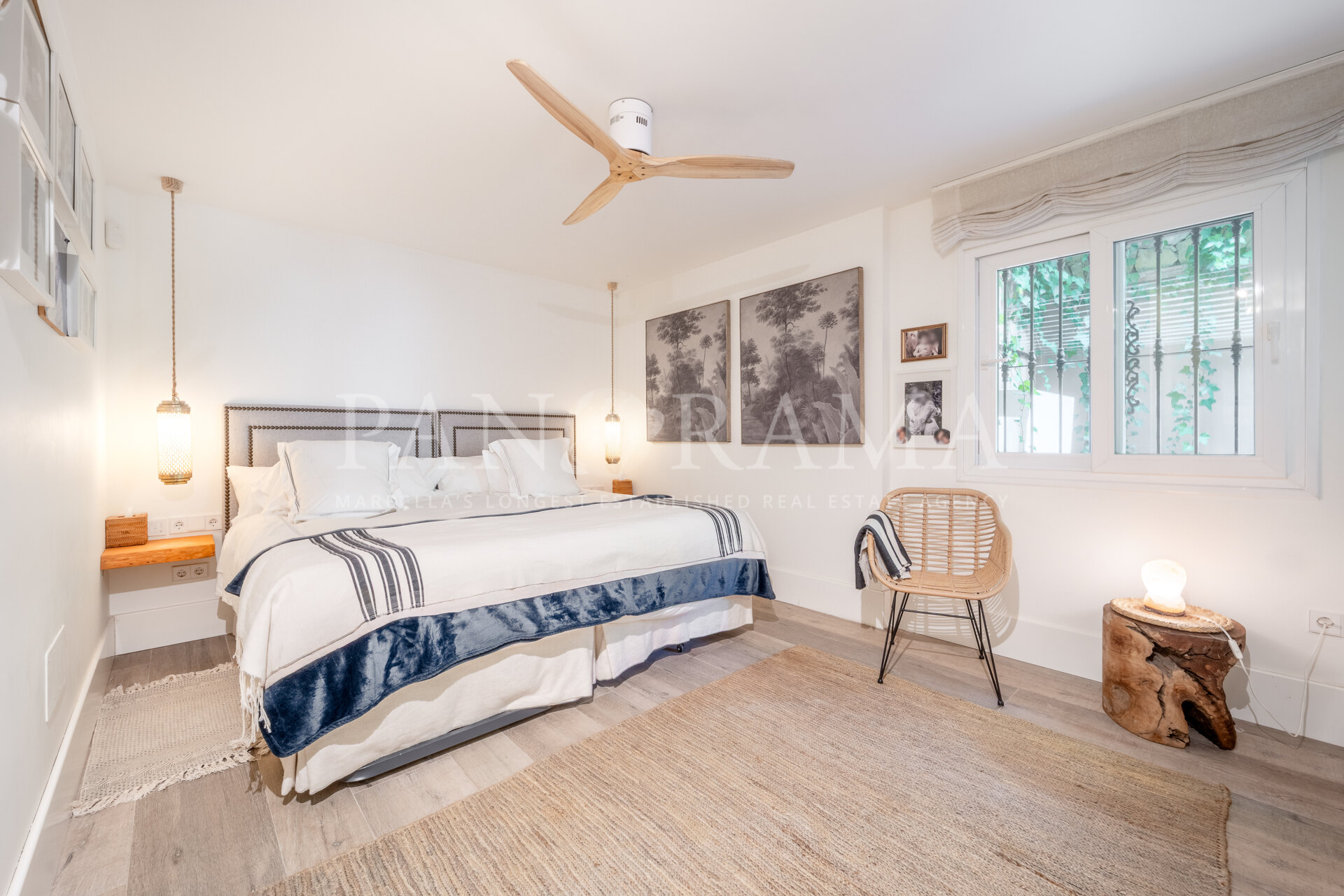 This spacious and comfortable renovated villa, surrounded by trees and lush vegetation, offers the perfect combination of feeling at home and enjoying the luxury of a villa just a few meters from the beach in Elviria.