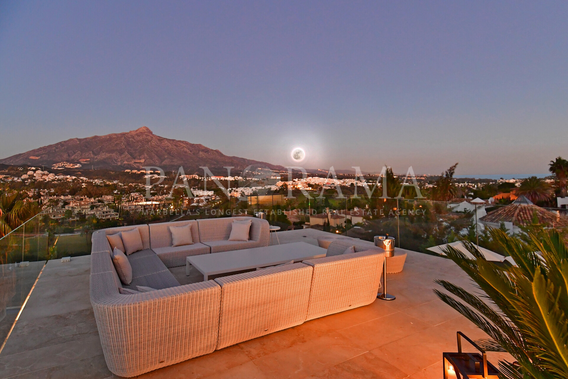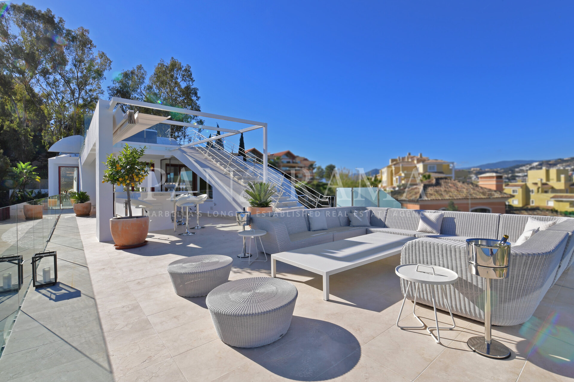 A contemporary-style, recently renovated villa, enjoying panoramic views and located in Las Brisas Golf, Nueva Andalucía.