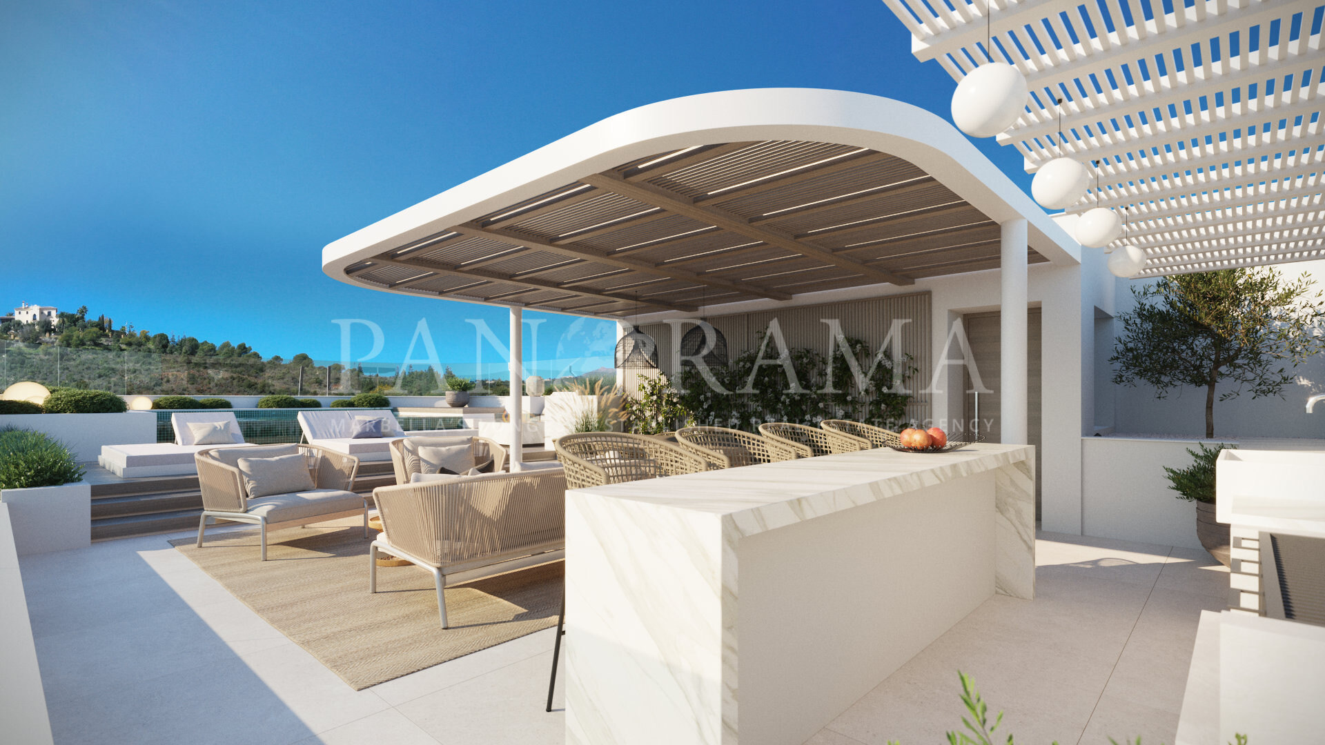 Gloednieuw luxe residentieel complex tussen Marbella en Benahavís. Deze eigentijdse ontwikkeling zal 49 ruime woningen herbergen in zeven iconische gebouwen, gelegen in prachtige tuinen en geïntegreerd in de natuurlijke omgeving. Het biedt 2-, 3- en 4-slaapkamer woningen gebouwd met materialen en fittingen van de hoogste kwaliteit, evenals de nieuwste technologieën om volledig comfort en maximale privacy te garanderen. De gemeenschap beschikt over eigentijdse architectuur, state-of-the-art interieurs en grote terrassen van waaruit men kan genieten van het adembenemende panoramische uitzicht over de Middellandse Zee, Gibraltar en de omliggende bergen. Dit boetiekcomplex biedt een volledig scala aan lifestyle-voorzieningen, waaronder 24-uurs beveiliging, een toegewijde conciërgeservice om te helpen bij het organiseren van reserveringen, koelkastvulling bij aankomst, stomerij, transport, privéchef tot vastgoedonderhoud, enz. Er is ook een gezondheidsclub met een volledige spa, fitnessruimte, fitnessfaciliteiten en binnen- en buitenzwembaden.