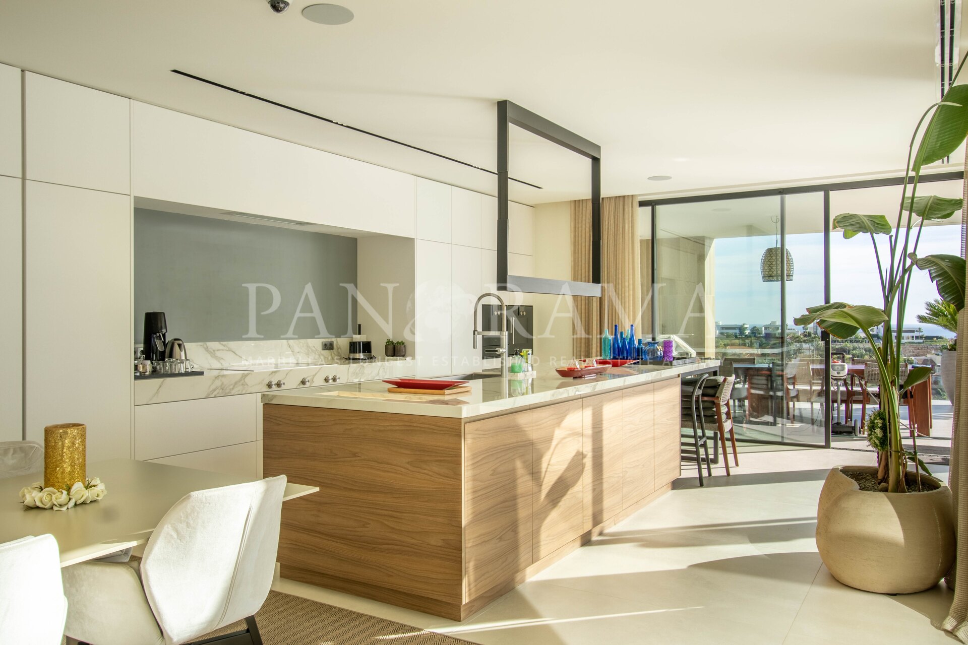 Het hart van het huis is de open woonruimte, waar stijl en functionaliteit samenkomen. Buiten zijn er brede terrassen—zowel overdekt als open—die meerdere plekken bieden om te loungen, dineren en gasten te ontvangen. Het infinity zwembad, de jacuzzi, de buitenkeuken en de barbecue maken het tot een droom voor buitenleven. Het hoofdterras is voorzien van stijlvolle nieuwe tegels en LED-verlichting met kleurverandering voor de perfecte sfeer, dag en nacht.