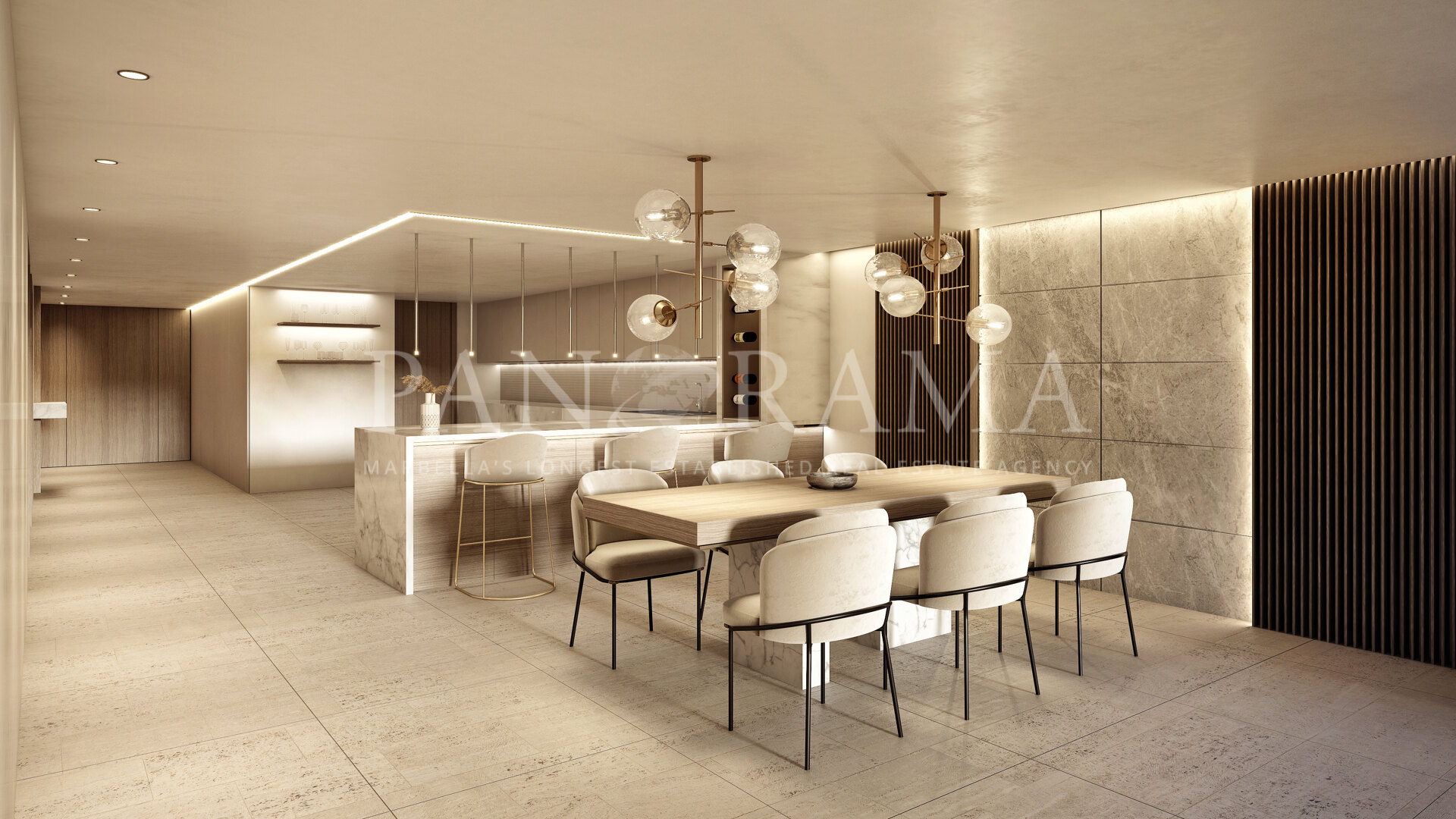 Elke woning heeft ruime terrassen, tuinen en een oneindig zwembad. Van zonsopgang tot zonsondergang kunt u genieten van veel natuurlijk zonlicht dat elke kamer vult met energie en inspiratie. De appartementen hebben een open indeling, met de keuken, woon- en eetruimtes die een ruime open ruimte bieden, perfect voor gezinsinteractie en adembenemend uitzicht over de Middellandse Zee.