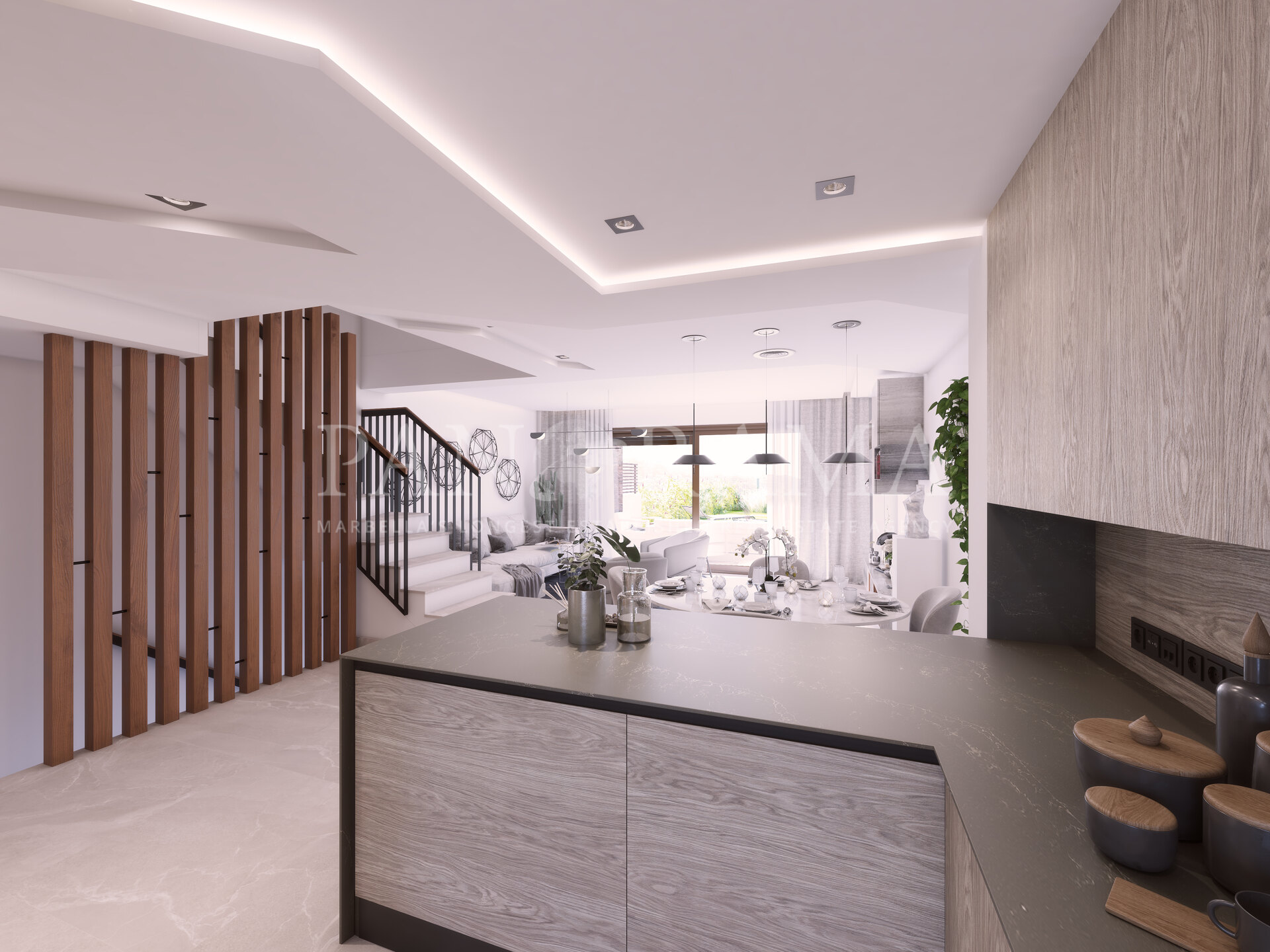 Dit prachtige project van 23 exclusieve herenhuizen met het beste panoramische uitzicht op het hoogste deel van de ontwikkeling biedt open uitzichten met een zuidoostelijke oriëntatie richting de baai van Marbella en Gibraltar. De woningen zijn verdeeld met een open keuken en bijkeuken, open woonkamer en terras naar de tuin op de begane grond en de 3 slaapkamers op de eerste verdieping. Alle herenhuizen hebben een solarium en een ondergrondse parkeergarage. Prachtig project omgeven door natuur en op 10 minuten rijden van de Golden Mile.